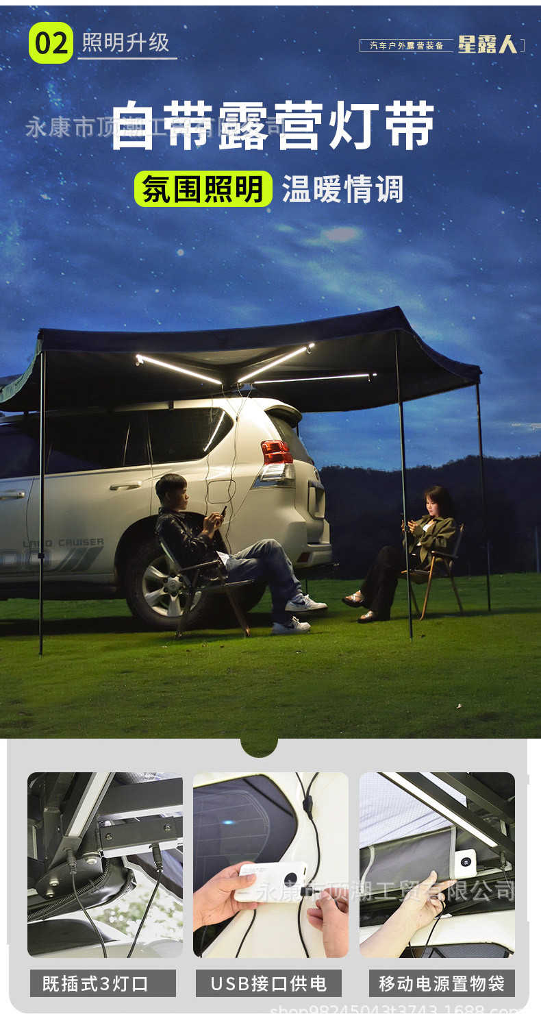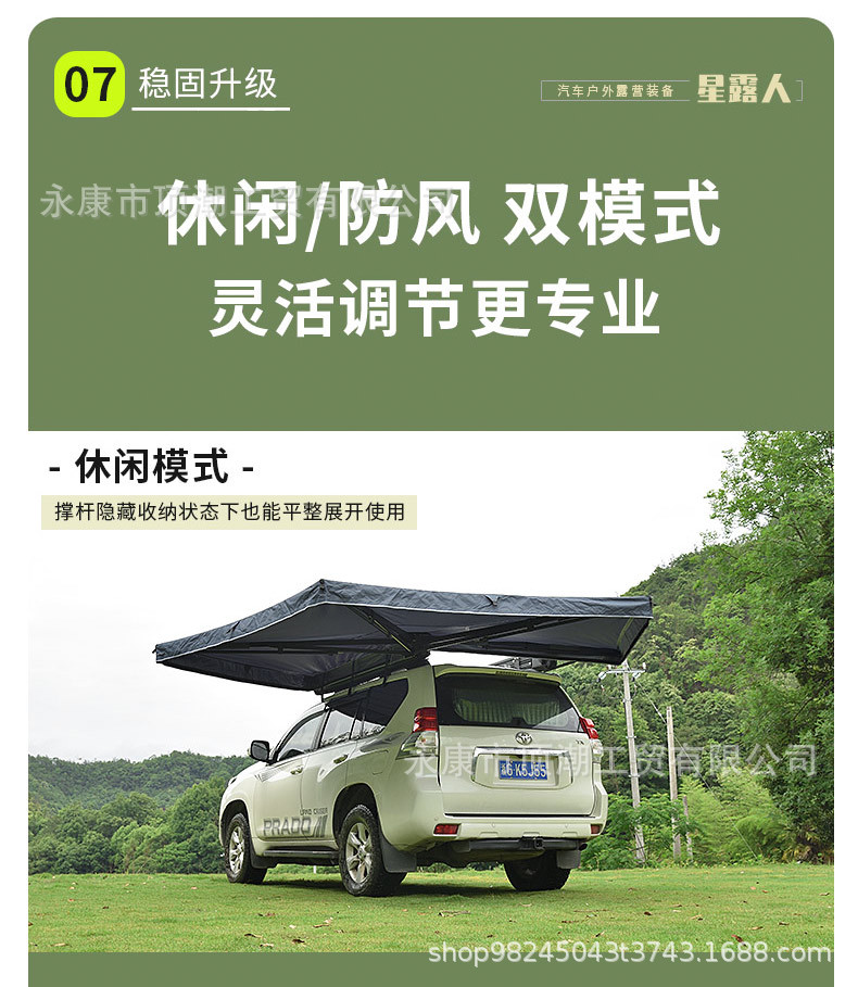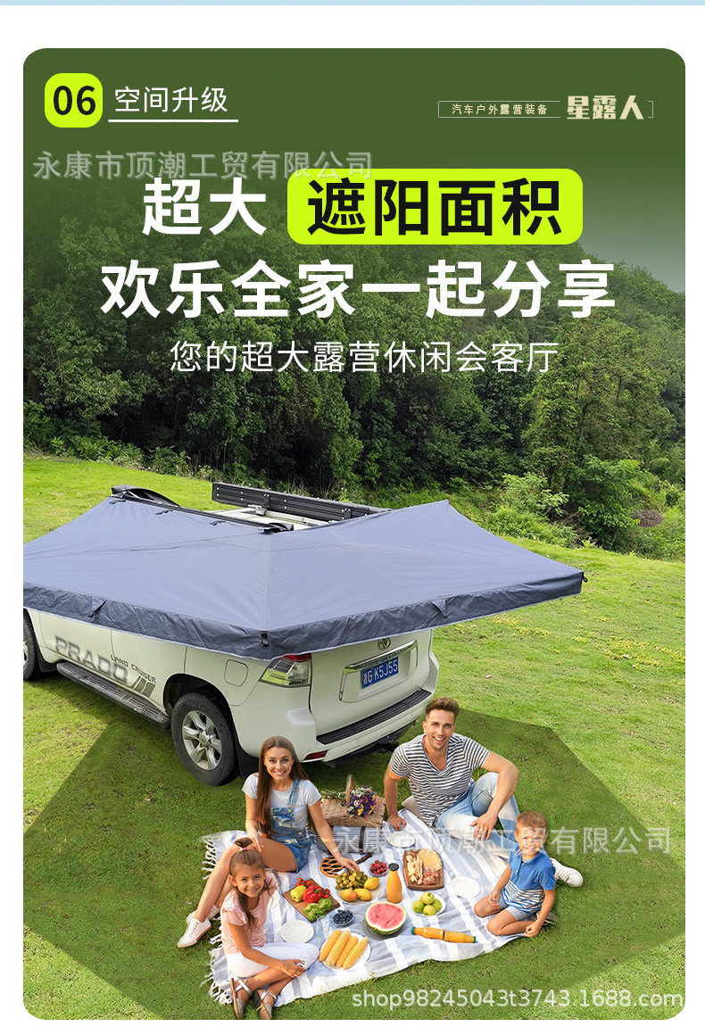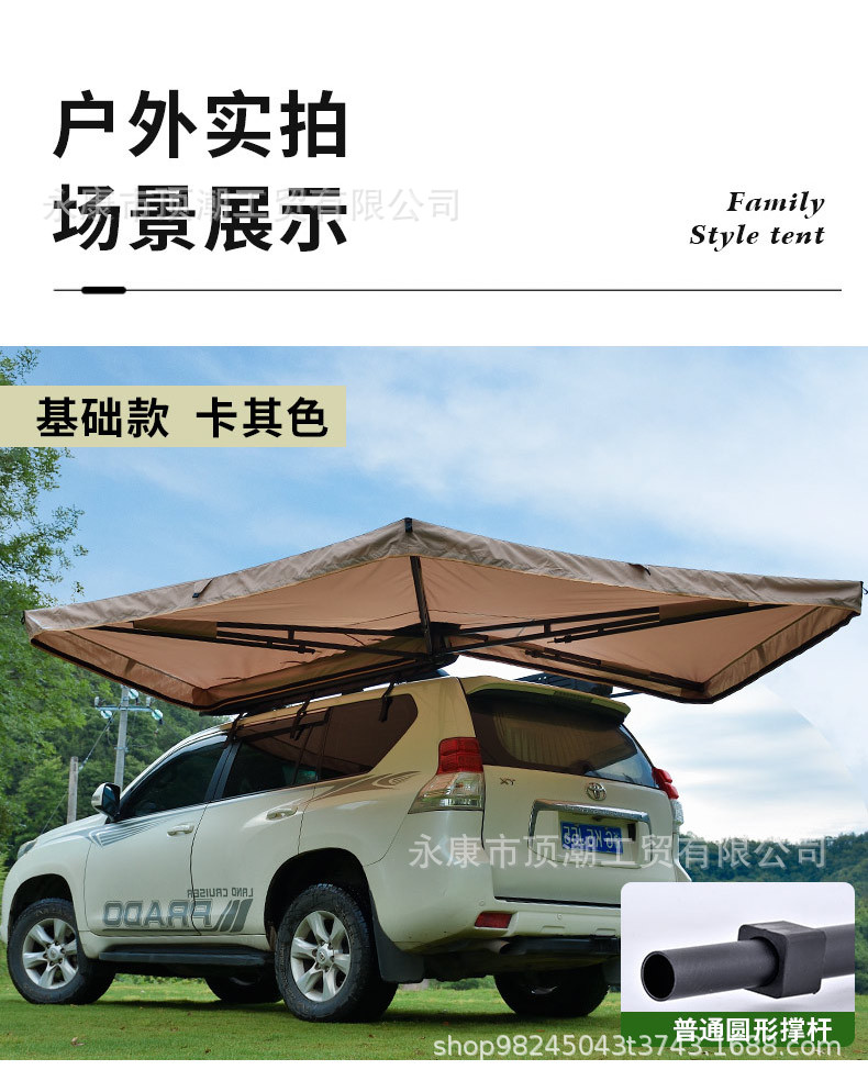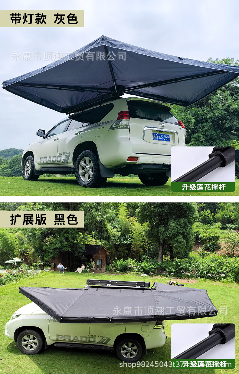 캐노피 자동차 차양 야외 SUV 자동차 측면 텐트 측면 계정 룸 지붕 270 도 다리없는 팬 모양의 측면 텐트