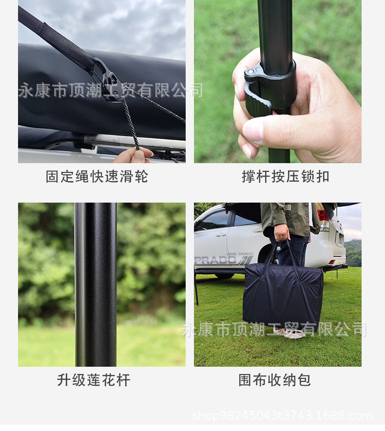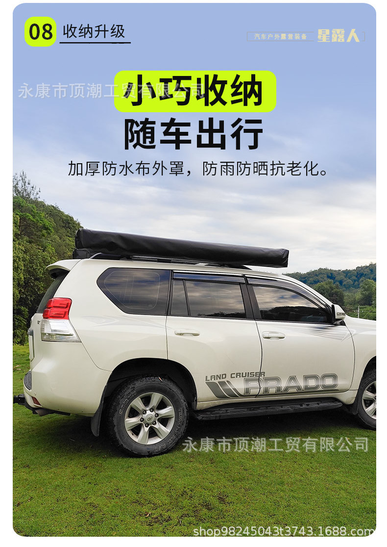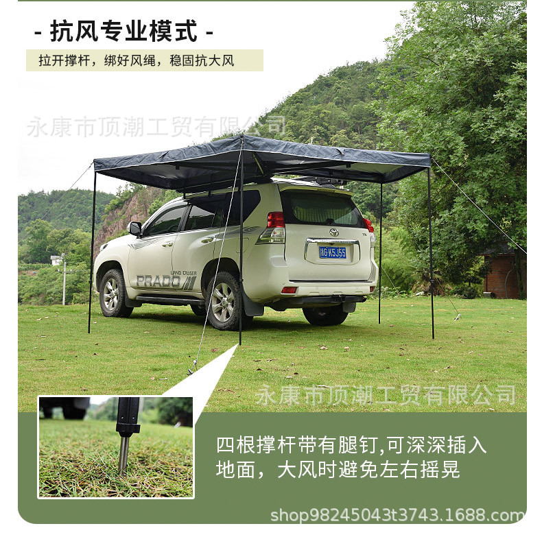 캐노피 자동차 차양 야외 SUV 자동차 측면 텐트 측면 계정 룸 지붕 270 도 다리없는 팬 모양의 측면 텐트스토어 가기
