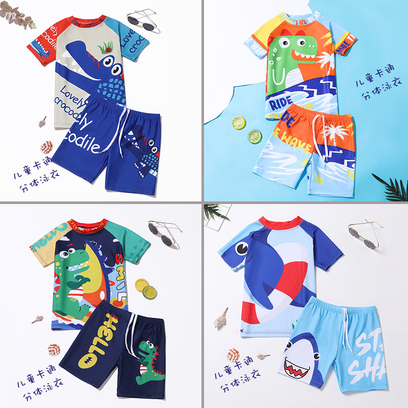 2024 새로운 어린이 수영복 소년 귀여운 만화 분할 빠른 건조 수영복 세트 중소 어린이 소년 수영복스토어 가기