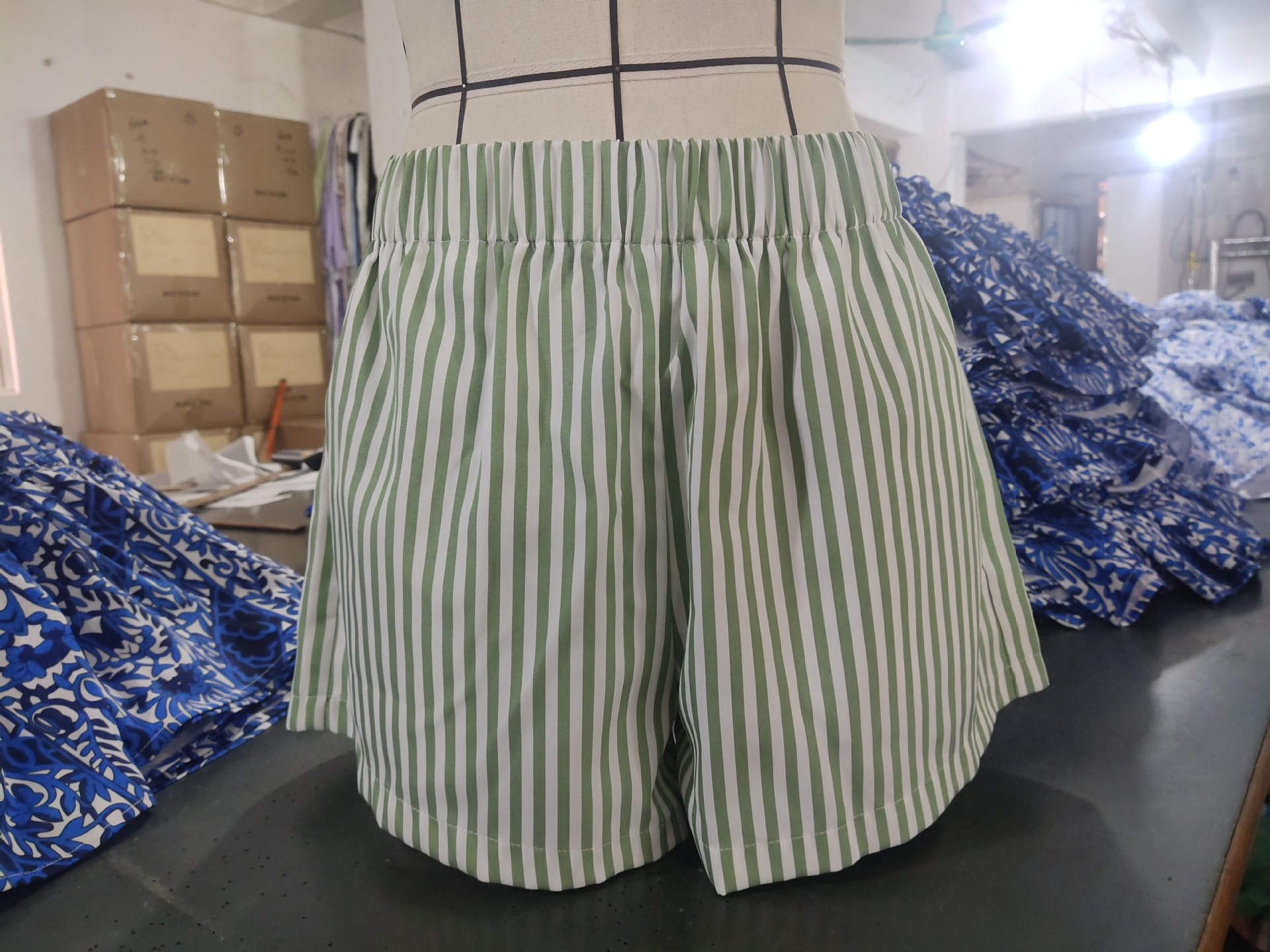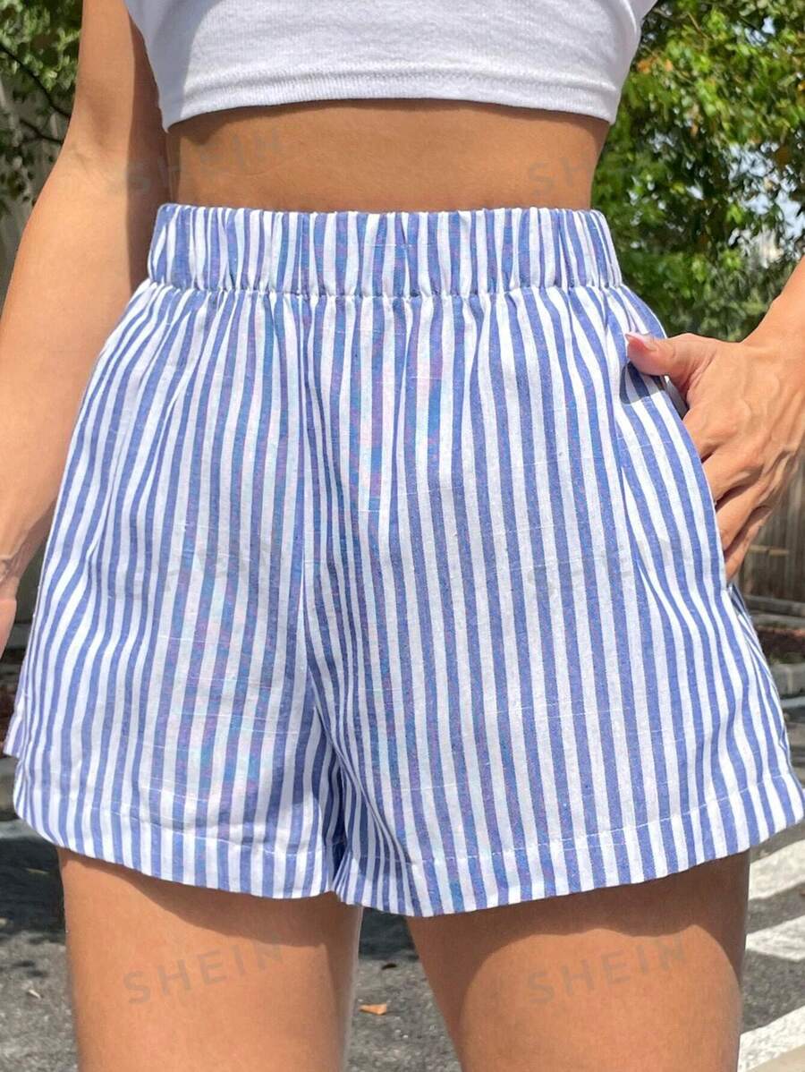 2025 년 유럽 및 미국 패션 전용 크로스 국경 세로 줄무늬 미드 웨이스트 와이드 다리 바지 비치 여름 여성 슈퍼 반바지 재고스토어 가기