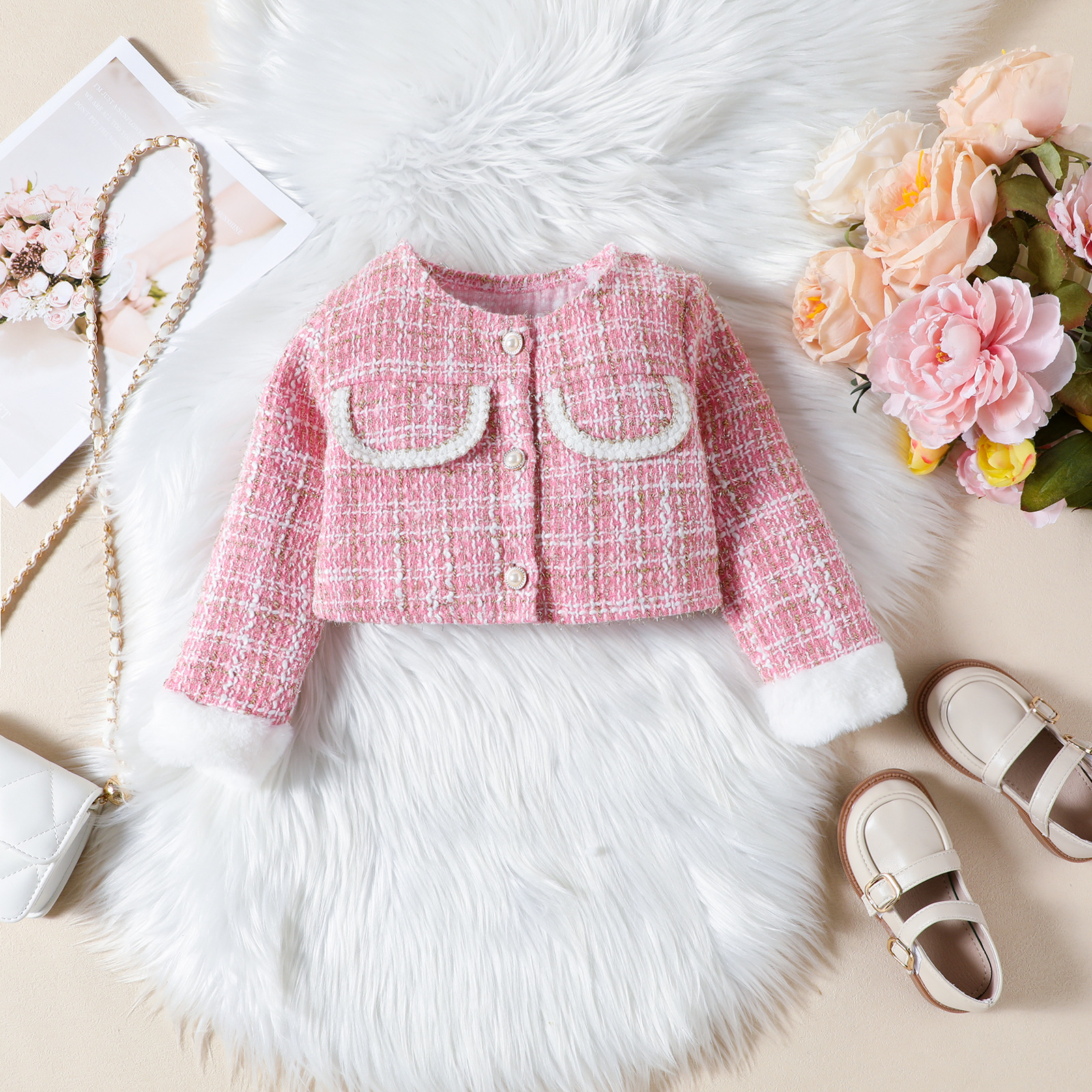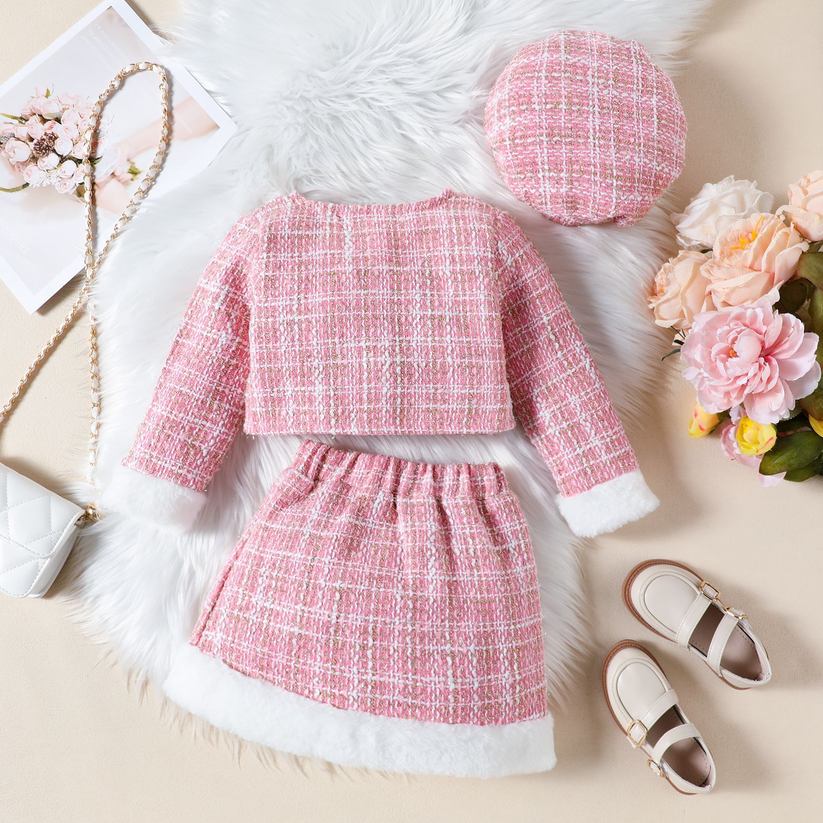 유럽과 미국의 소녀 작은 향기로운 스타일 세트 가을 새로운 마오 마오 스티칭 코트 스커트 베레모 3 피스 크로스 국경스토어 가기