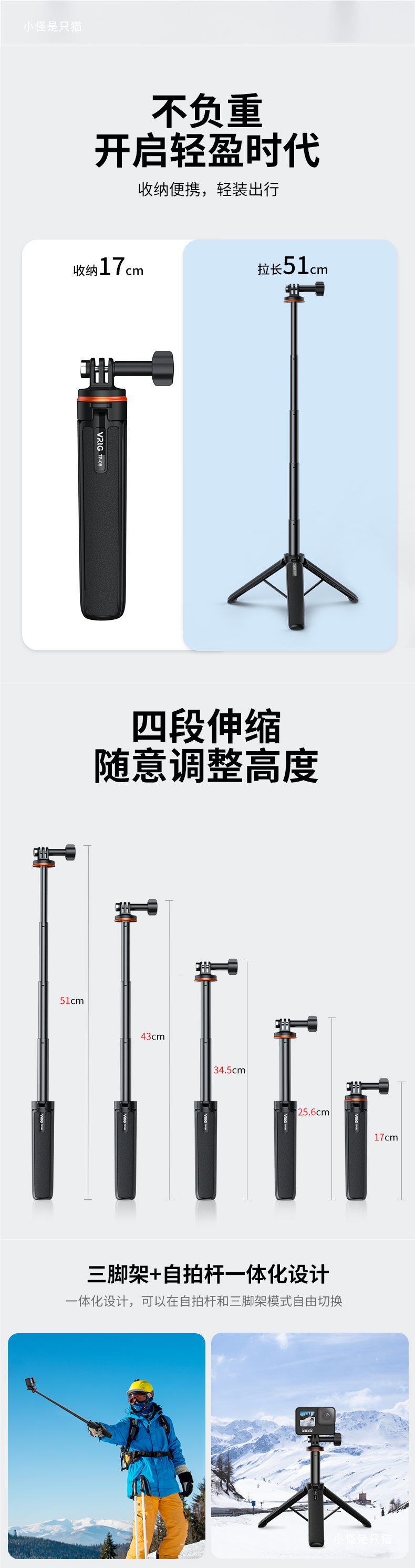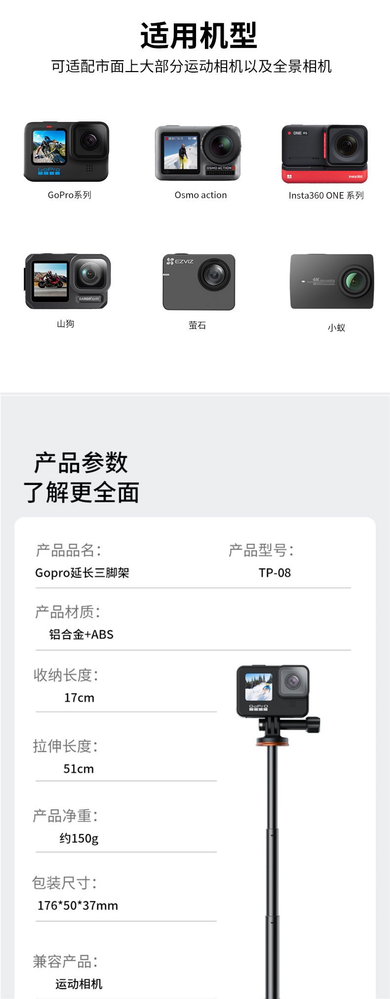 • 【 1.3m 추가 길이 】 TP-03 액션 카메라 셀카봉