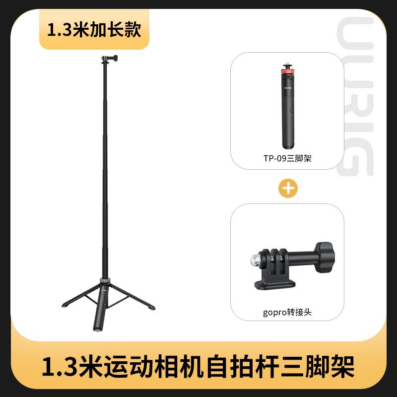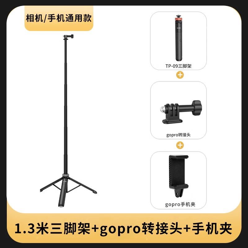 • [ 1.3m 확장 버전] TP-03 액션 카메라 셀카봉 + 가로 및 세로 촬영용 휴대폰 홀더