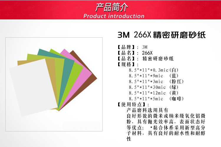 3m 266X 접착 정밀 물 모래 8.5*11 인치 * 3/9/30mic 프로브 연삭 초미세 사포 알루미나