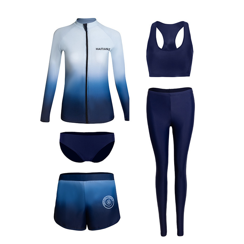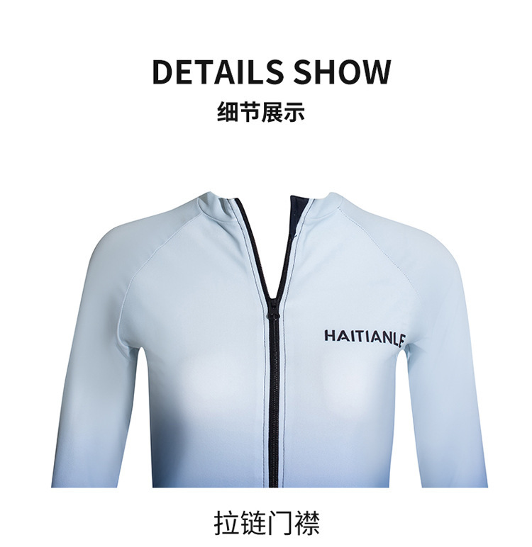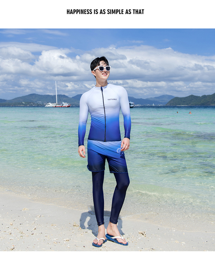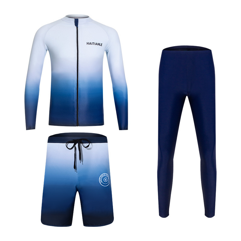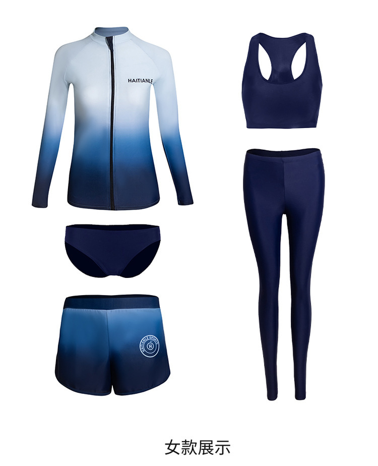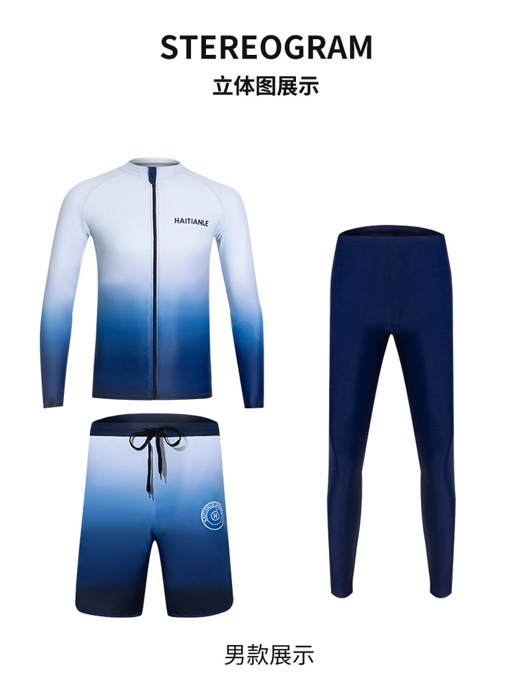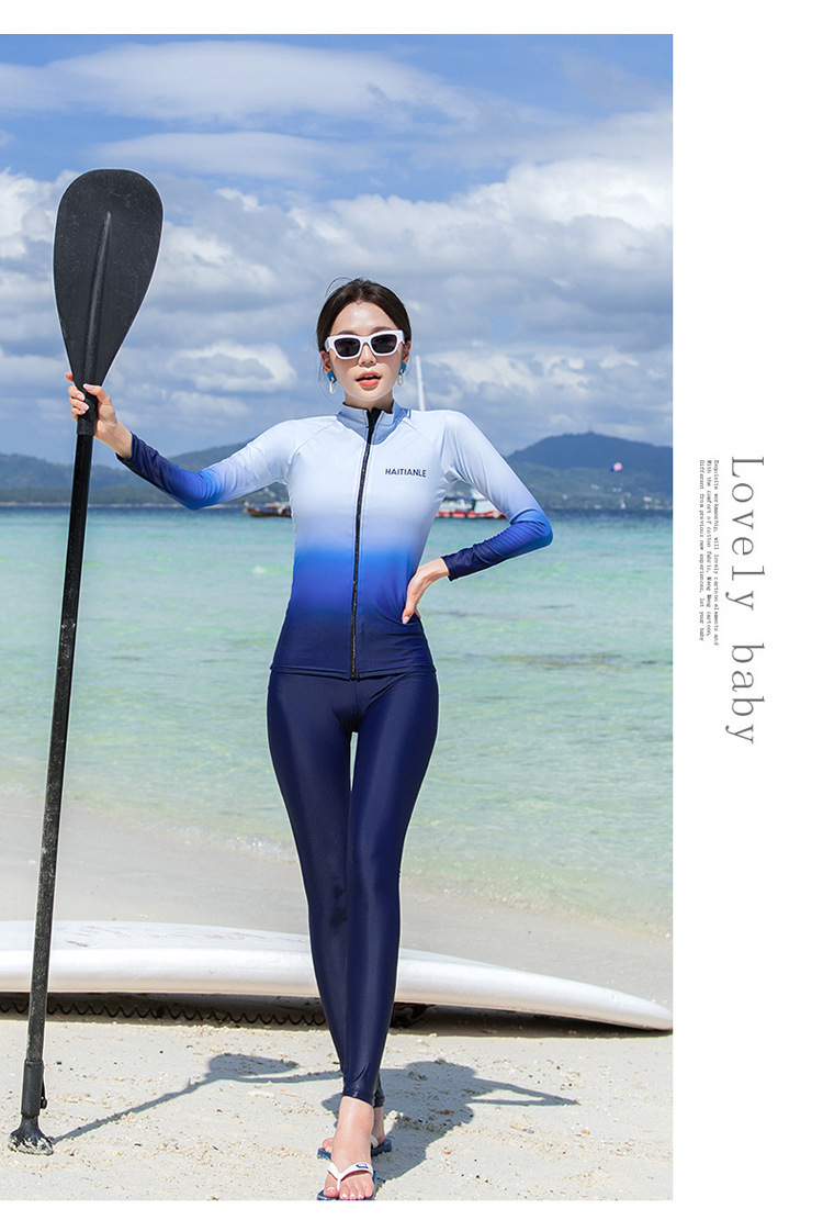 情侣款游泳衣 分体长袖长裤套装渐变遮肚显瘦保守潜水服冲浪沙滩