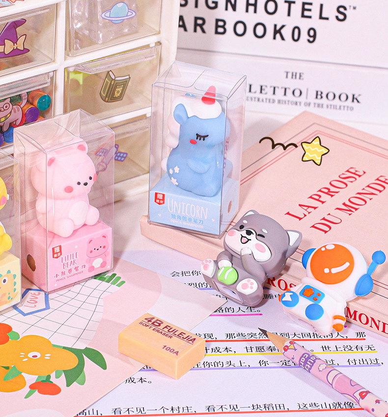 초등학생을위한 만화 고무 연필 깎기 어린이 연필 깎기 귀여운 작은 연필 깎기 손 깎기스토어 가기