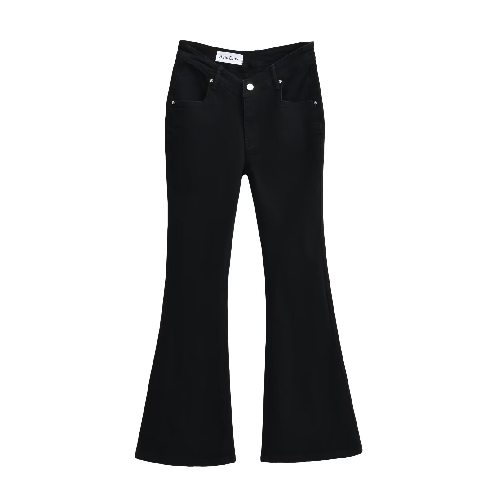 빈티지 세탁 스트레치 다크 블루 청바지 여성용 슬림핏 슬리밍 스파이스 걸 V 하이 웨이스트 빅 롱 레그 슬림 플레어 팬츠스토어 가기