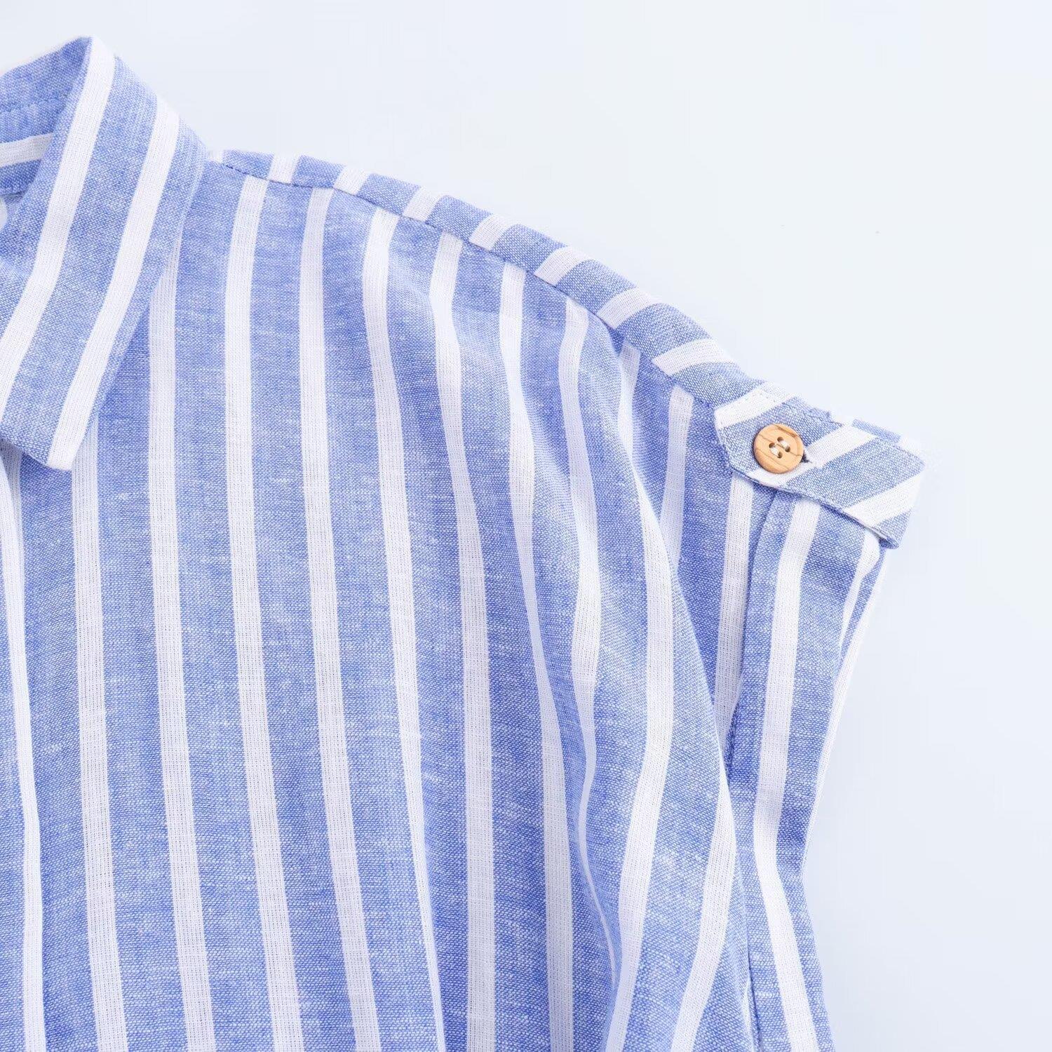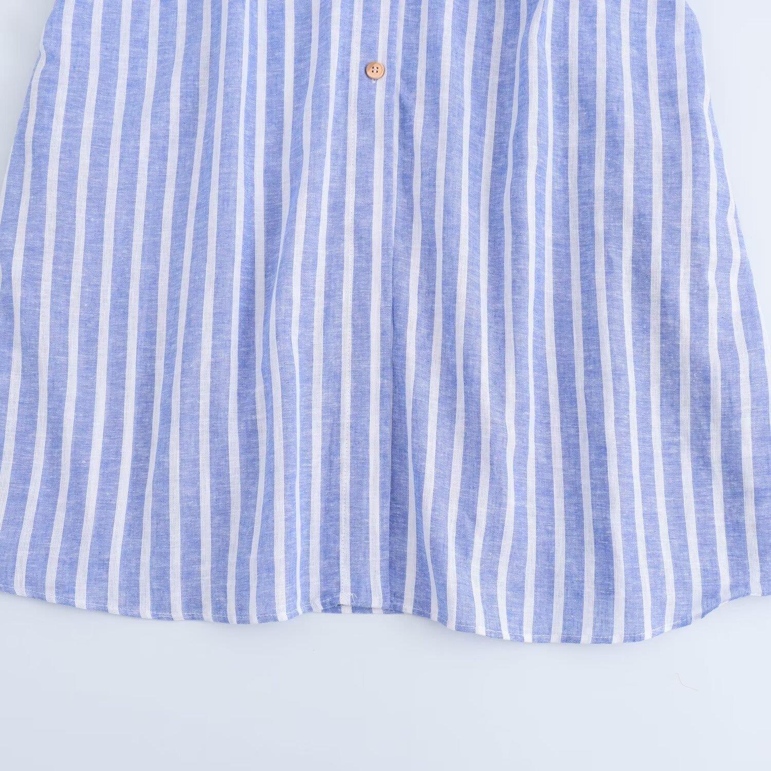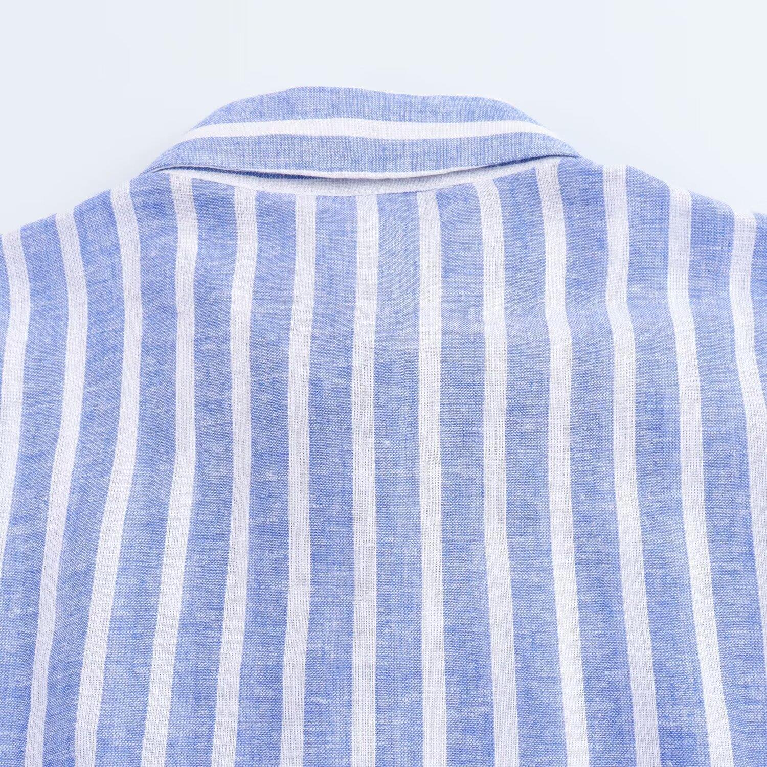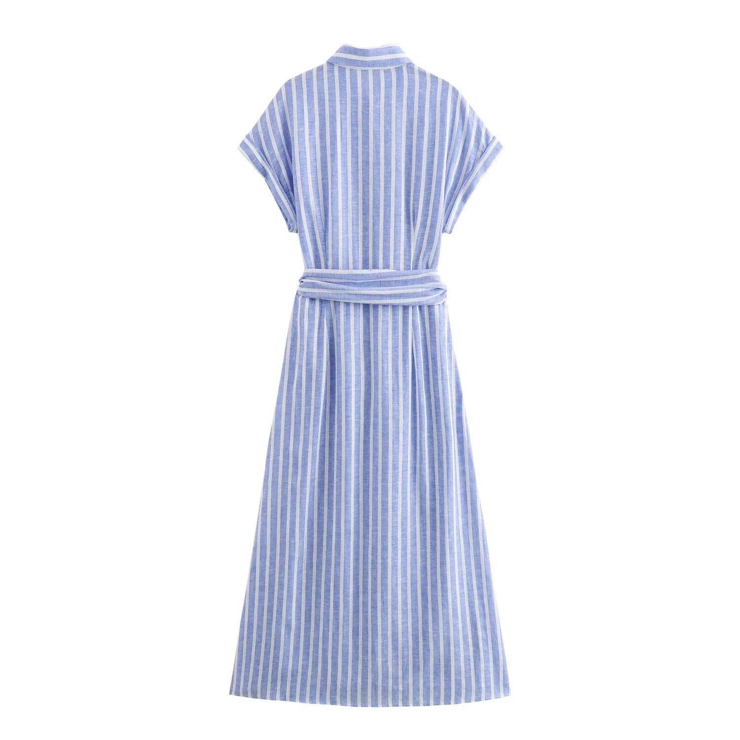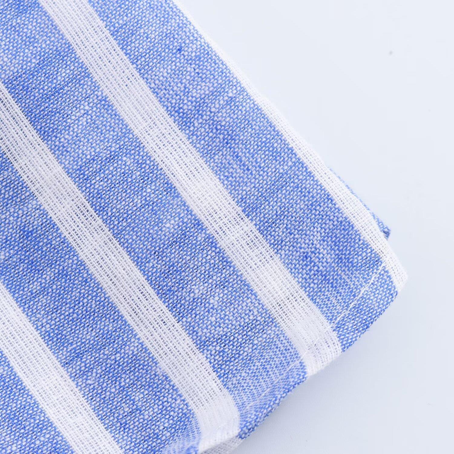 여름 국경 간 유럽과 미국 의류 반팔 면과 린넨 혼합 줄무늬 드레스 사진 색상 맞춤형 스트리트 린넨스토어 가기