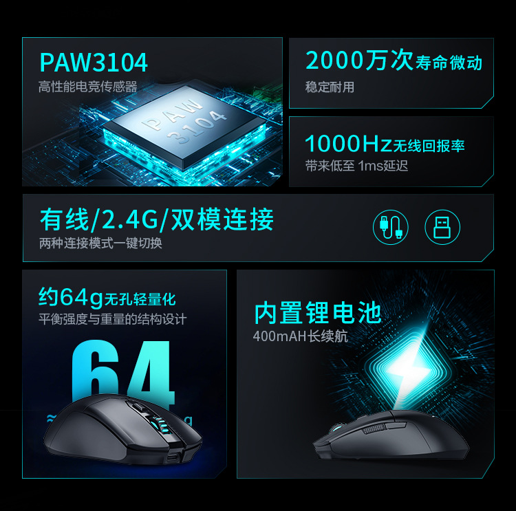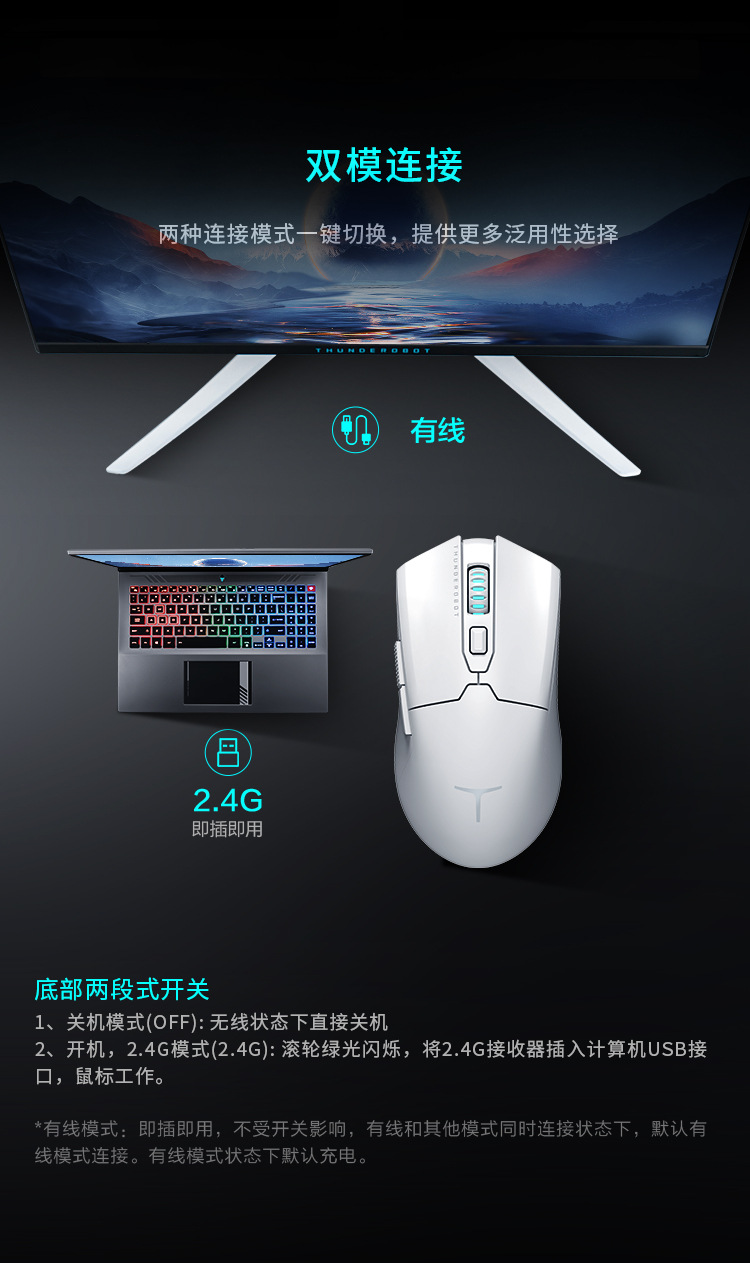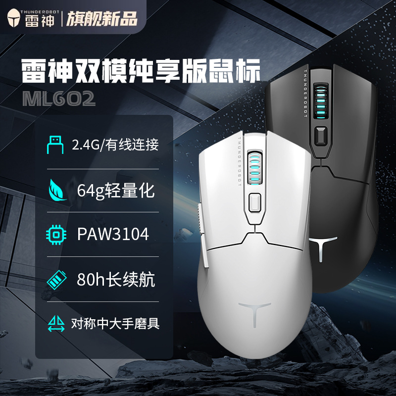 ThundeRobot Raytheon ML602 순수 듀얼 모드 무선 2.4G 마우스 64g 경량 마우스 충전식 1K