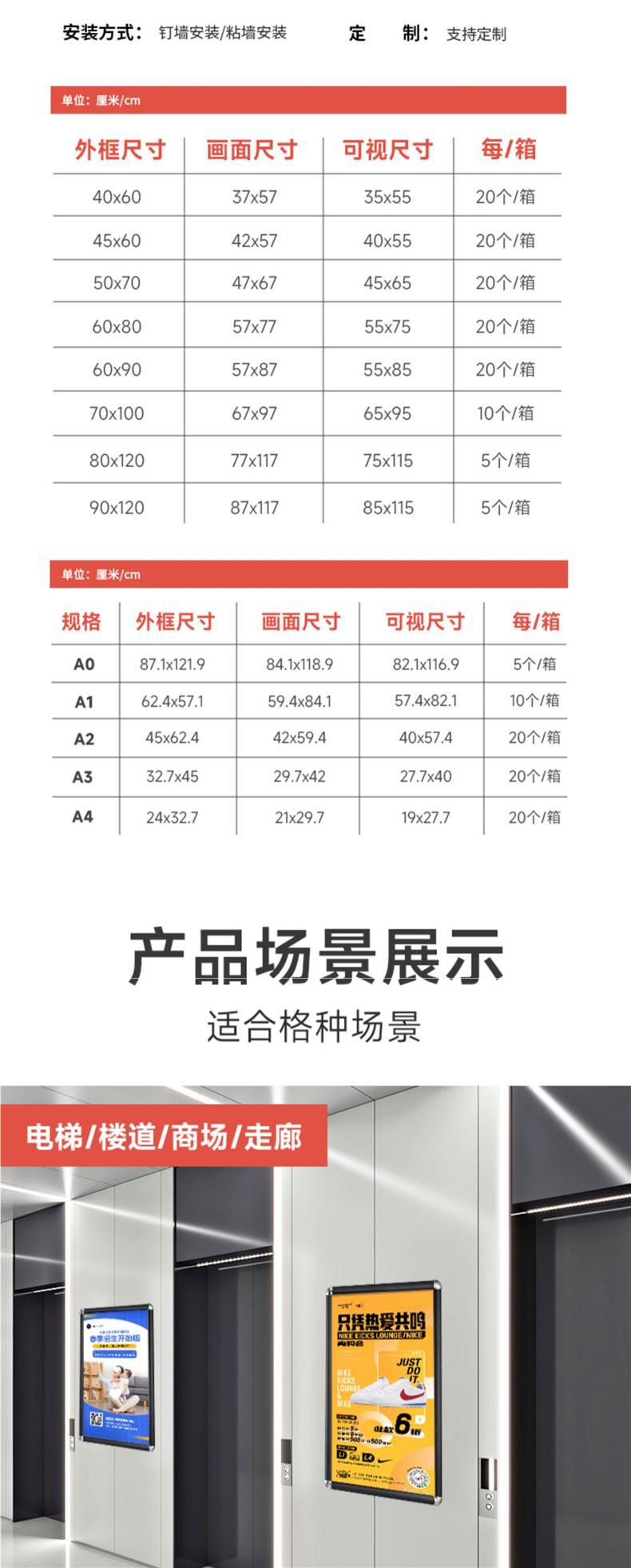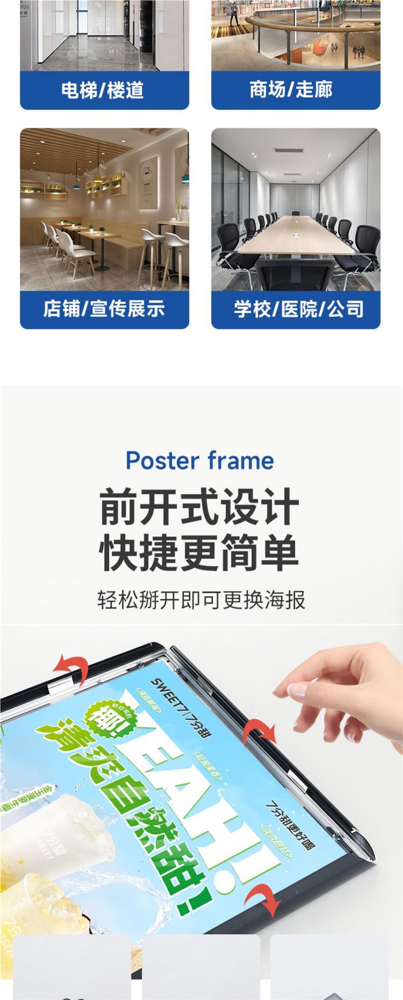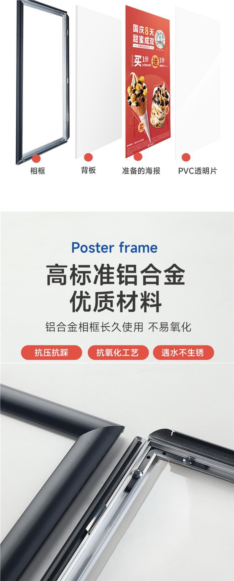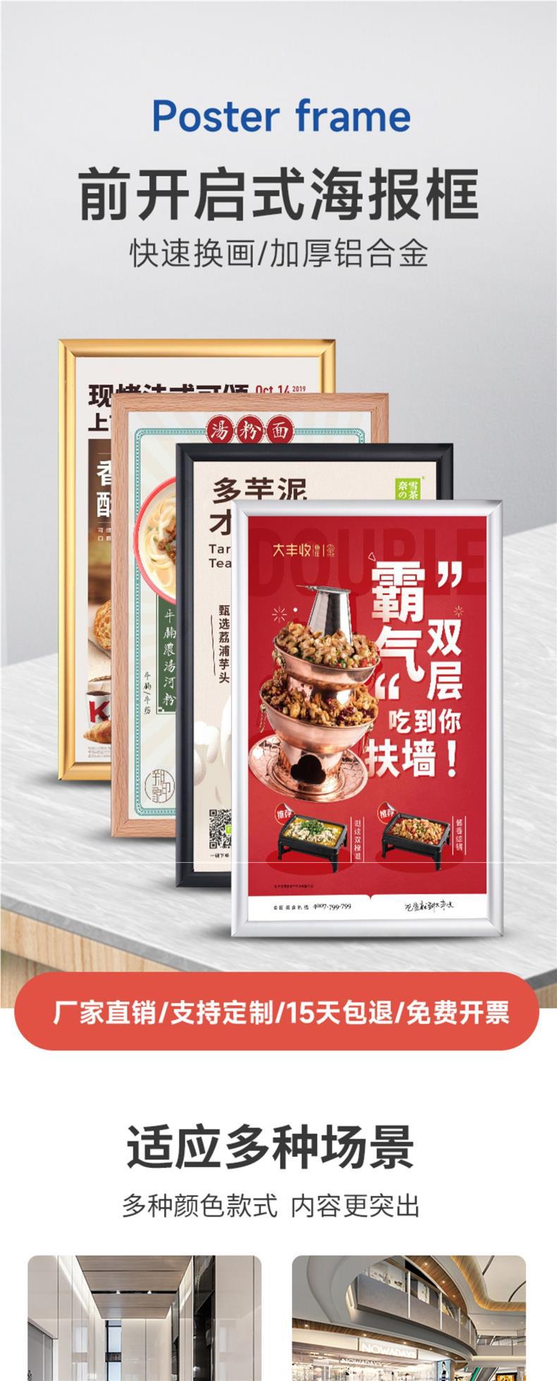 알루미늄 합금 포스터 프레임 오픈 프레임 교수형 벽 a4 교체 가능한 사진 프레임 액자 인증서 엘리베이터 광고 프레임스토어 가기