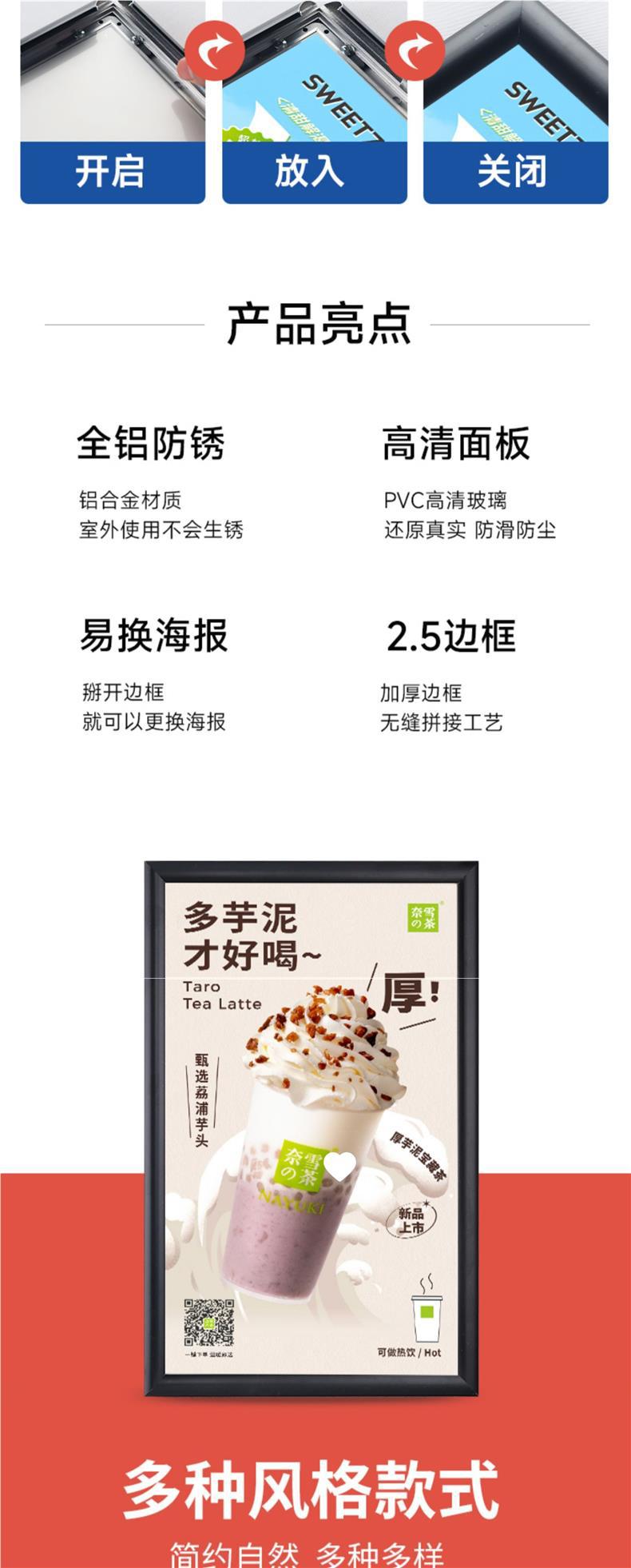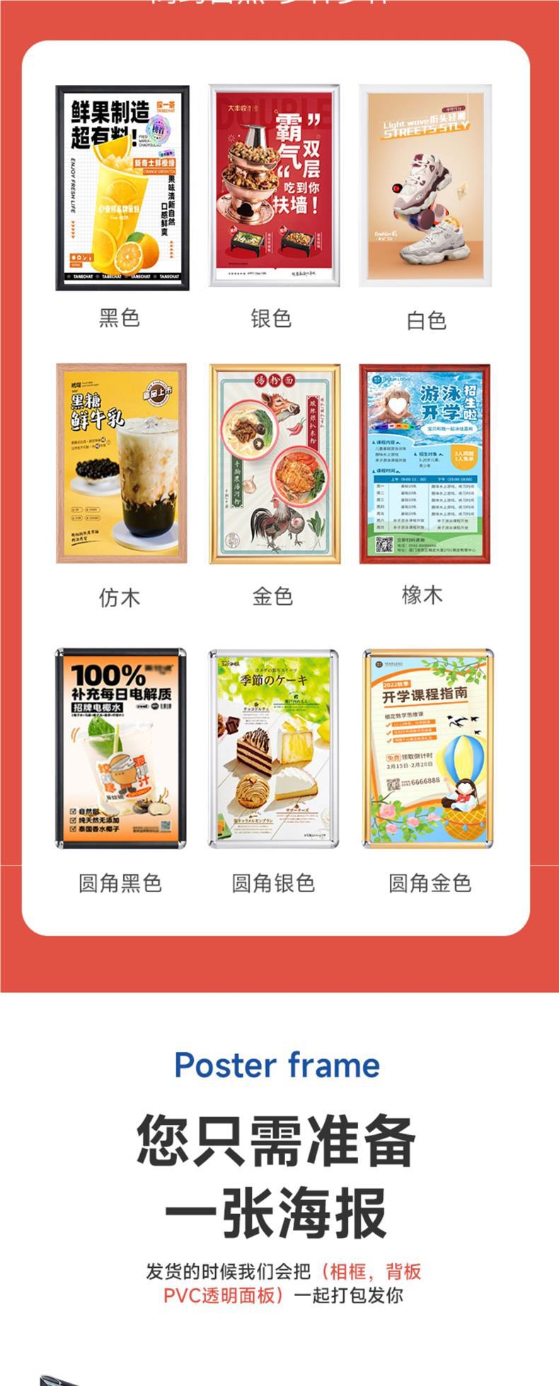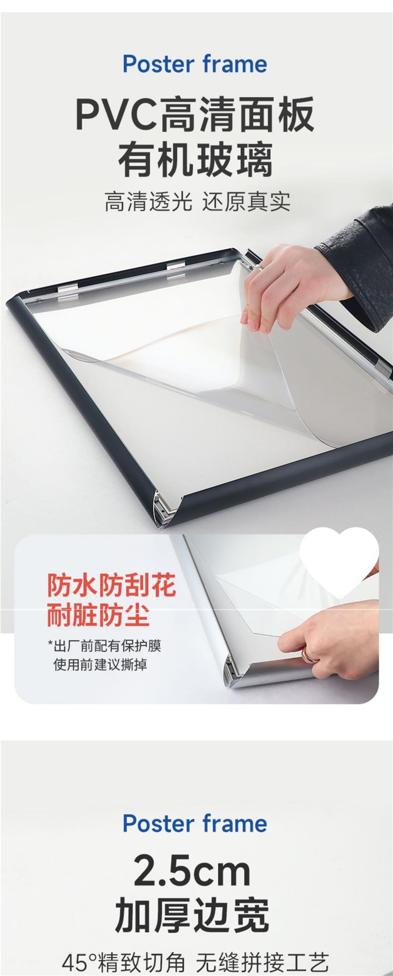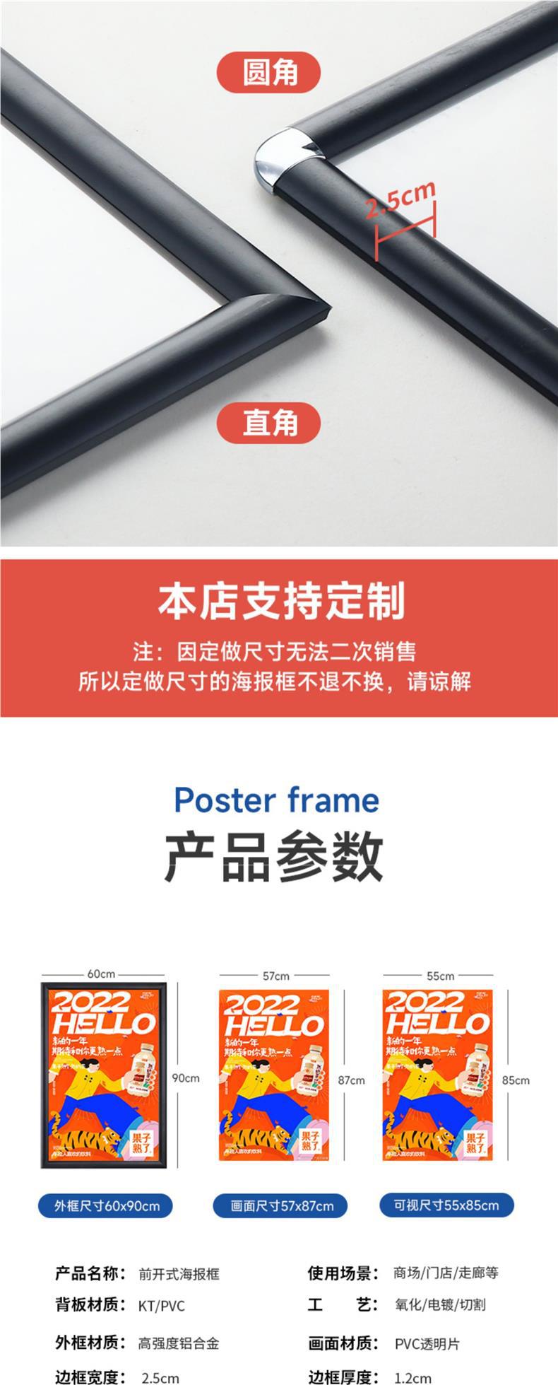 알루미늄 합금 포스터 프레임 오픈 프레임 교수형 벽 a4 교체 가능한 사진 프레임 액자 인증서 엘리베이터 광고 프레임스토어 가기