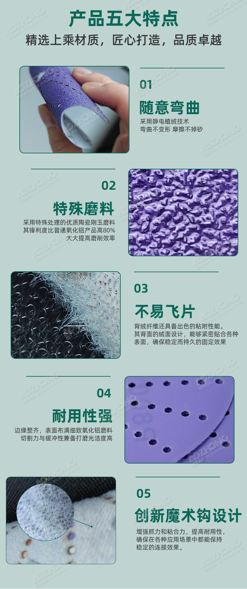 크로스보더 퍼플 샌딩페이퍼 6inch 사이클론 홀 세라믹 내마모성 자동차 외장 연마 및 광택용 플로킹 샌딩페이퍼 제조업체스토어 가기