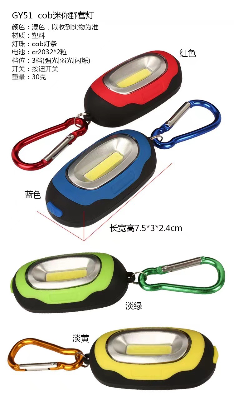 COB 배낭 교수형 램프 야외 등산 캠핑 휴대용 Carabiner 학생 미니 LED 여행 비상 야간 조명