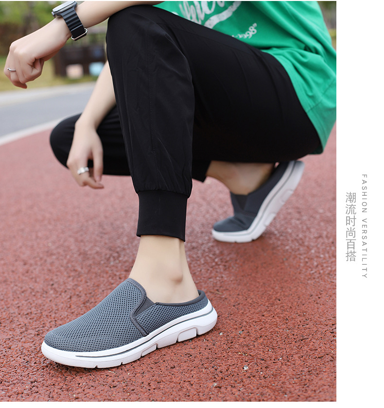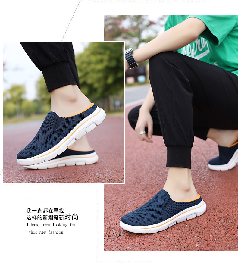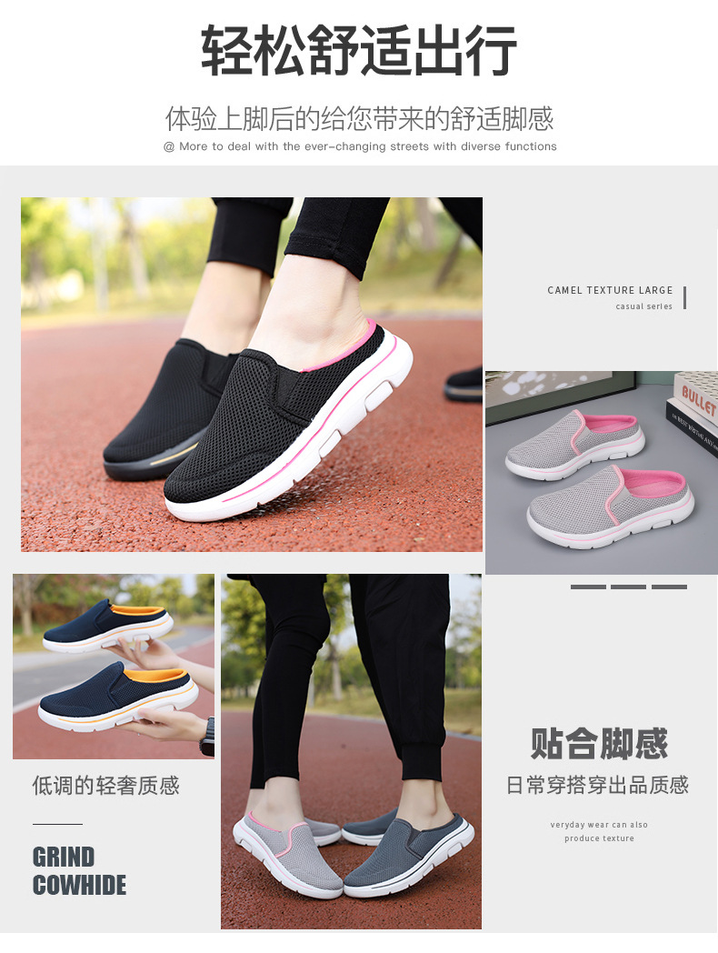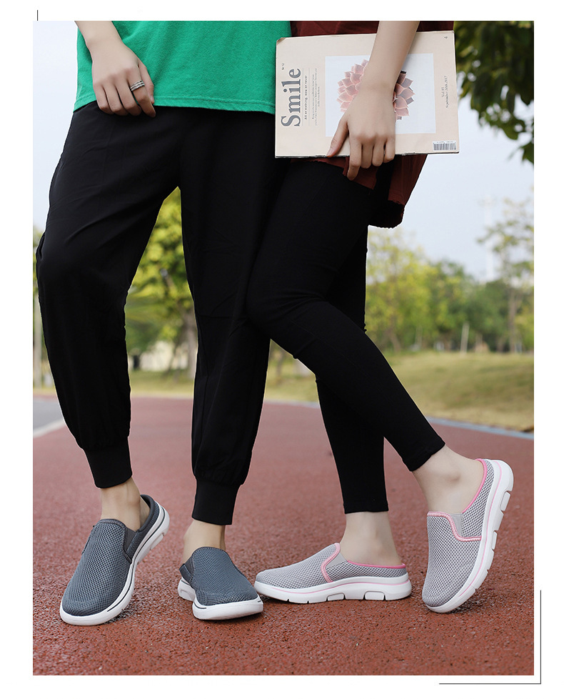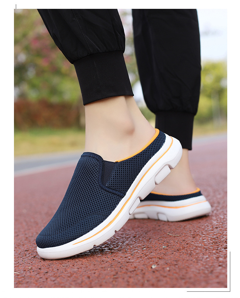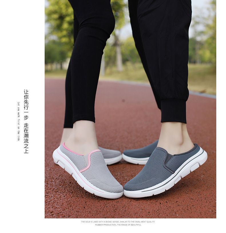 2024 새로운 국경 봄과 가을 부드러운 바닥 메쉬 통기성 슬립 온 연인 캐주얼 편안한 스포츠 하프 슬리퍼스토어 가기