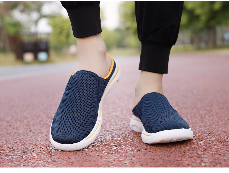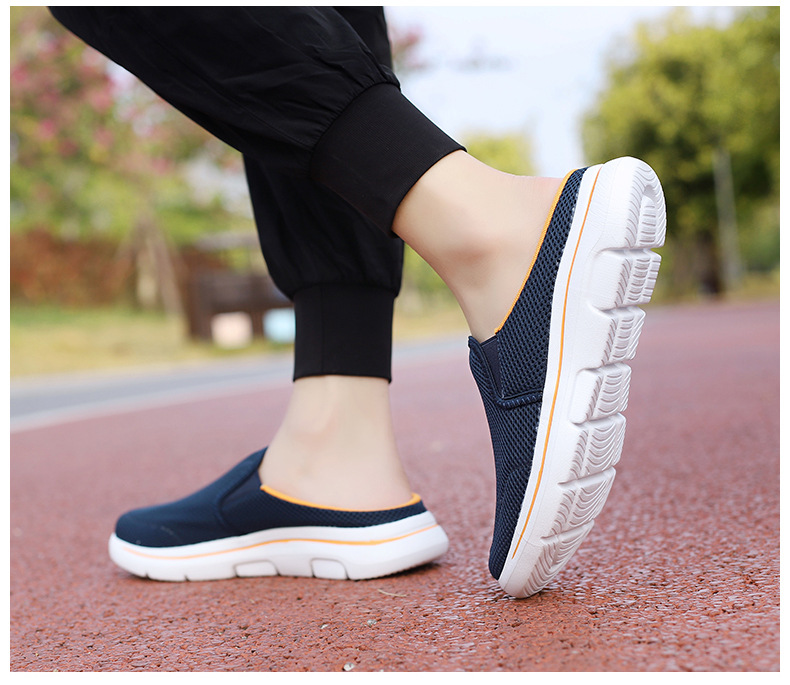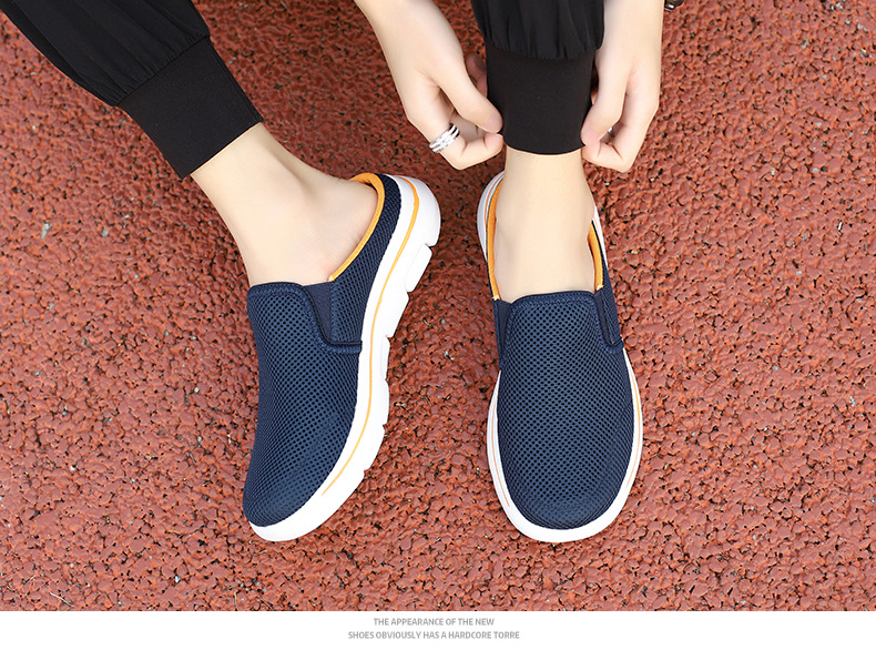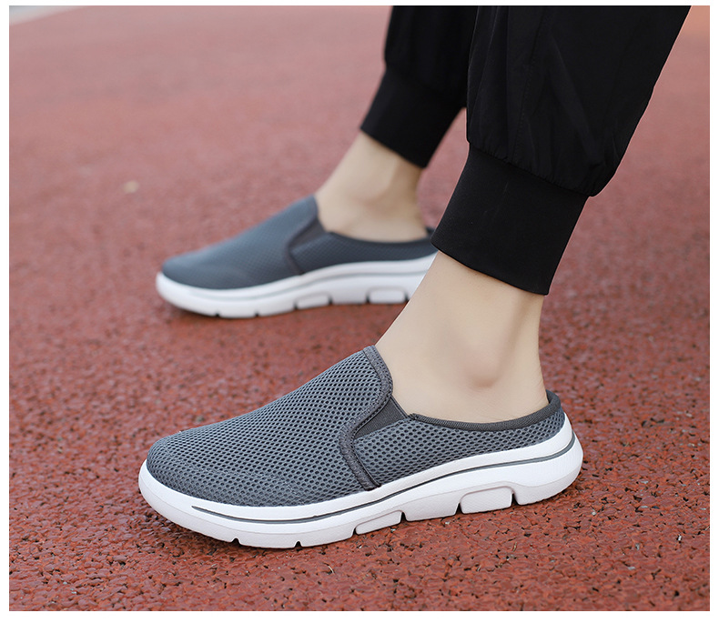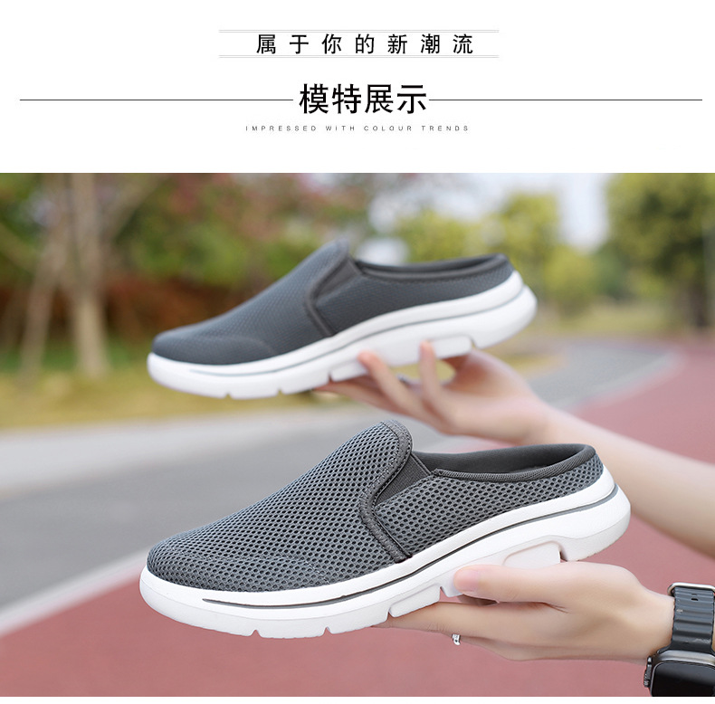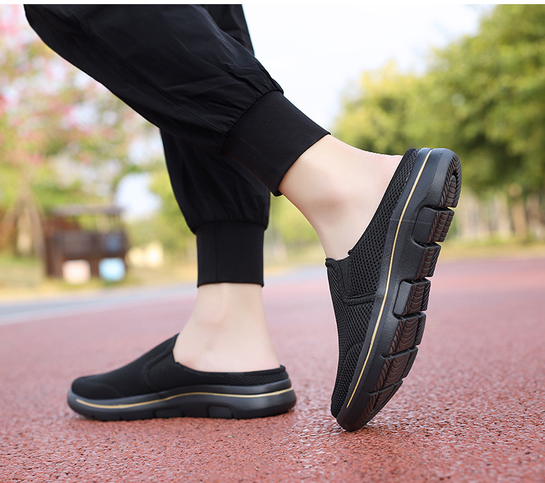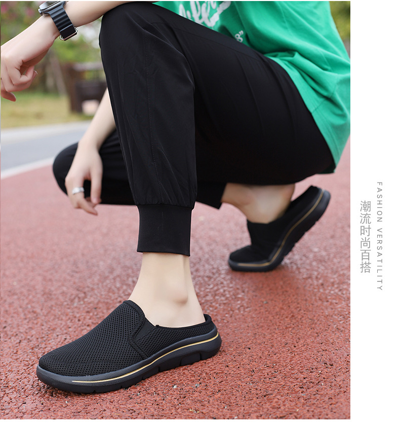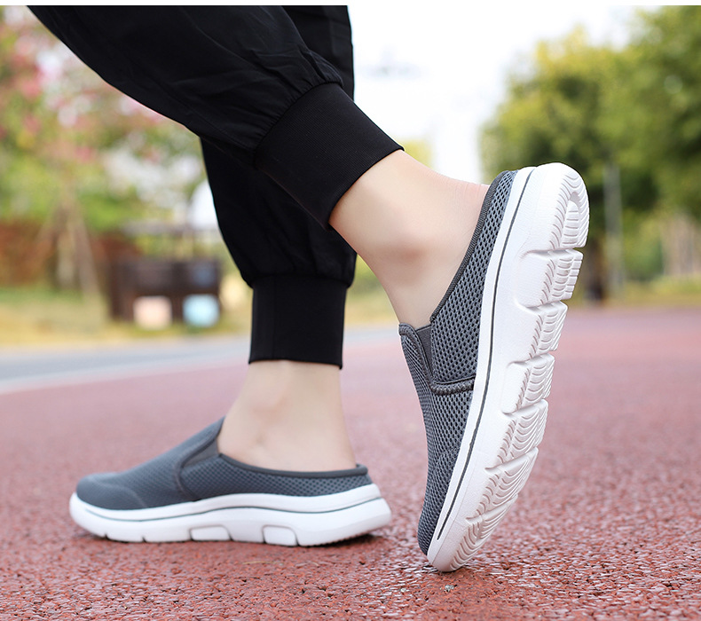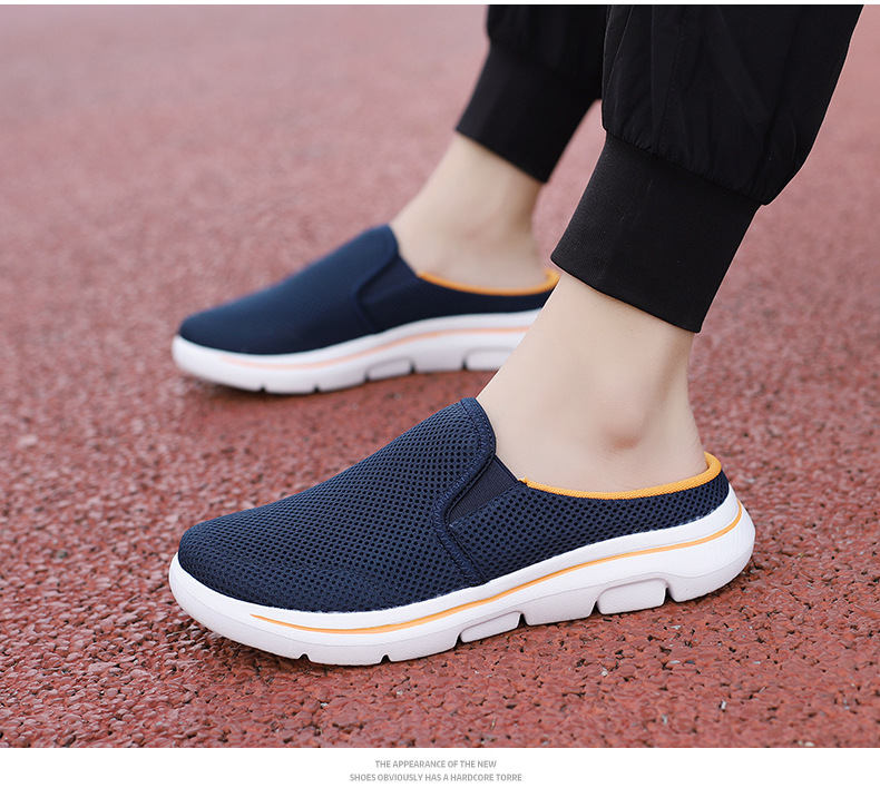 2024 새로운 국경 봄과 가을 부드러운 바닥 메쉬 통기성 슬립 온 연인 캐주얼 편안한 스포츠 하프 슬리퍼스토어 가기