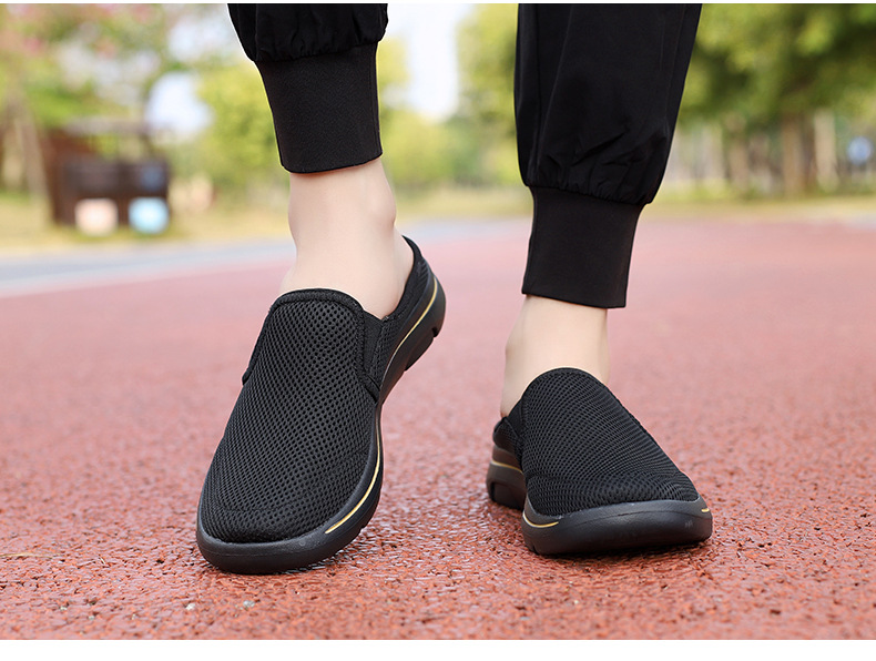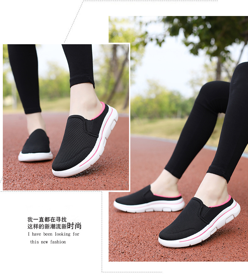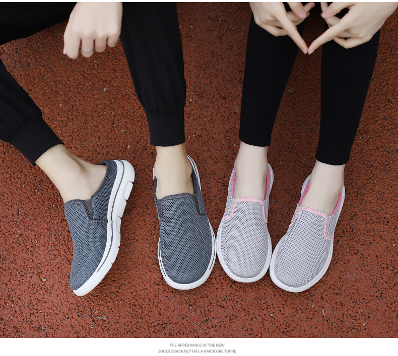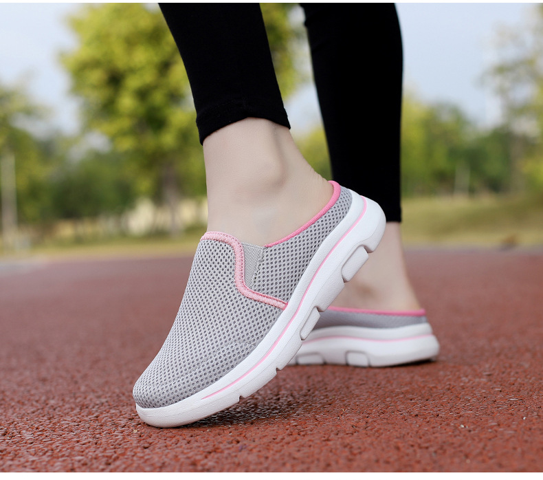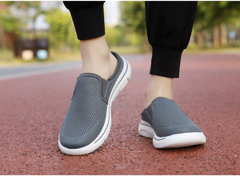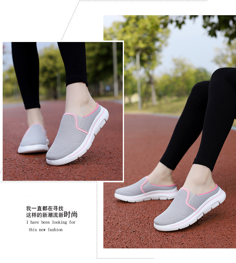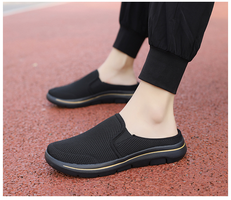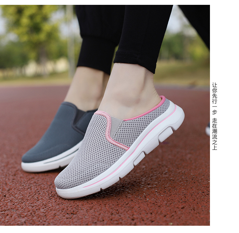 2024 새로운 국경 봄과 가을 부드러운 바닥 메쉬 통기성 슬립 온 연인 캐주얼 편안한 스포츠 하프 슬리퍼스토어 가기