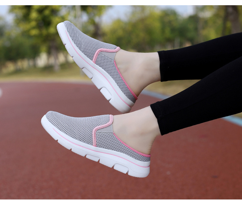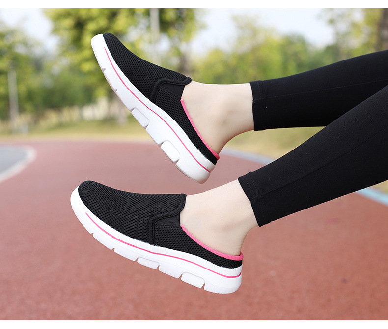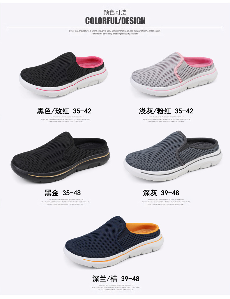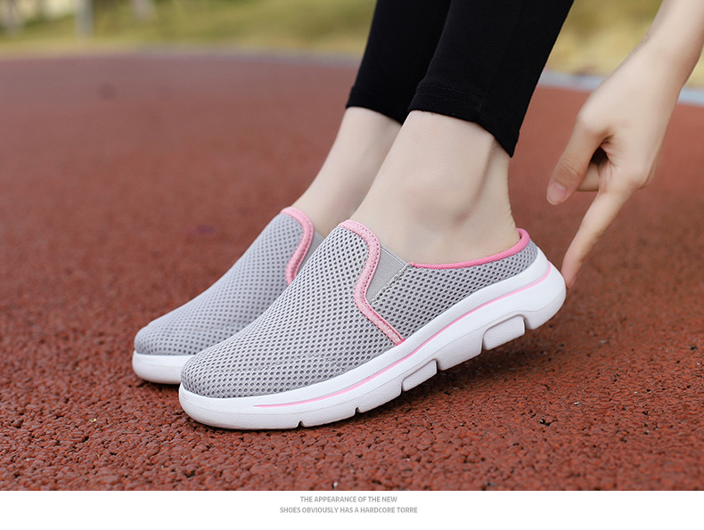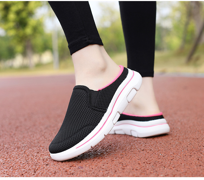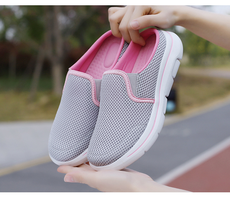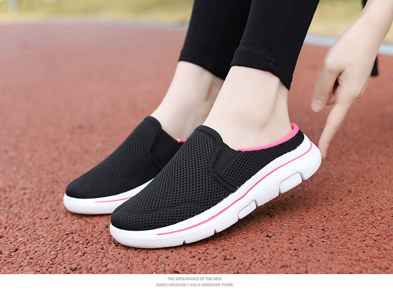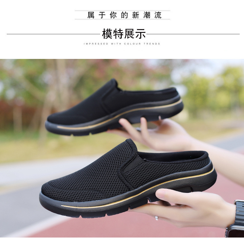 2024 새로운 국경 봄과 가을 부드러운 바닥 메쉬 통기성 슬립 온 연인 캐주얼 편안한 스포츠 하프 슬리퍼스토어 가기