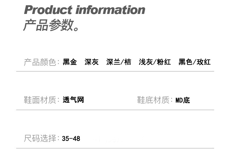 【关于尺码】标准运动鞋尺码。
