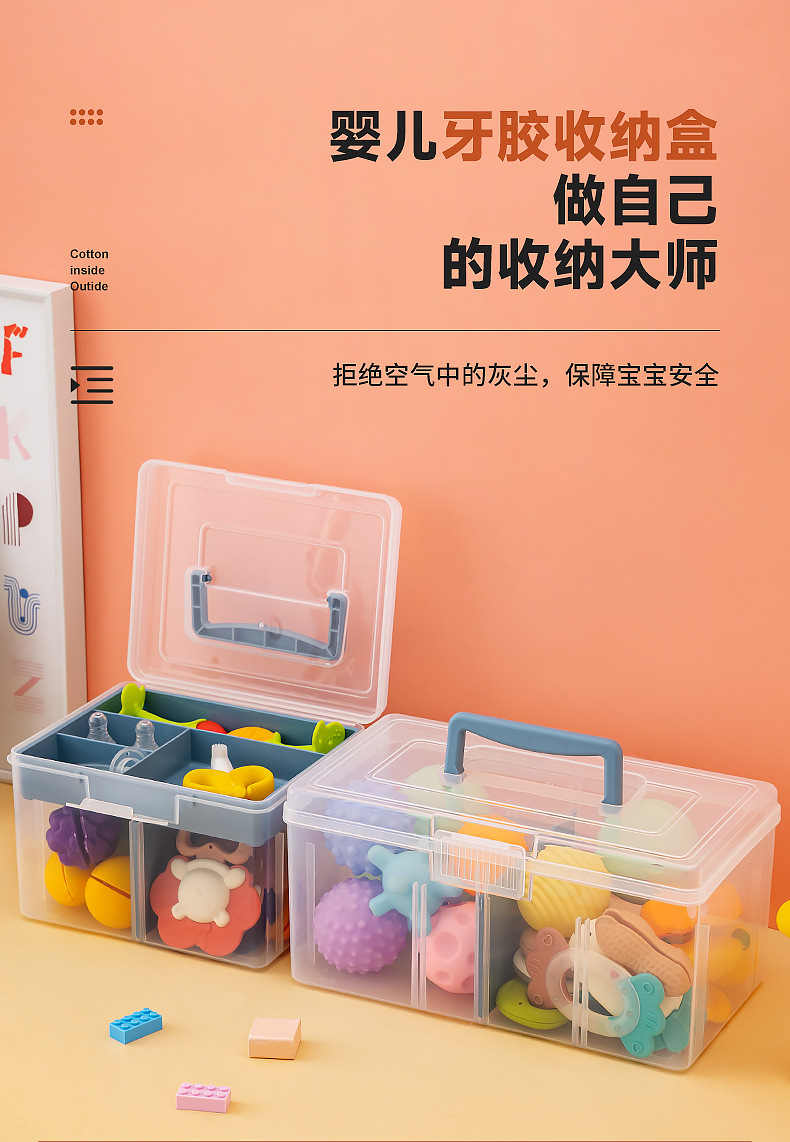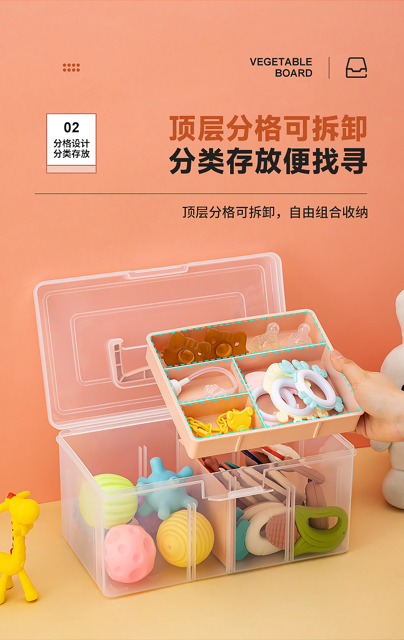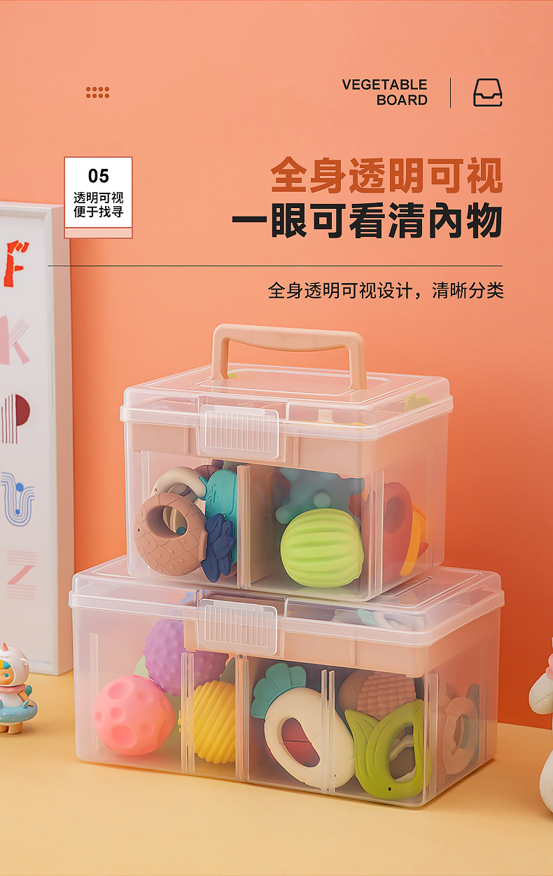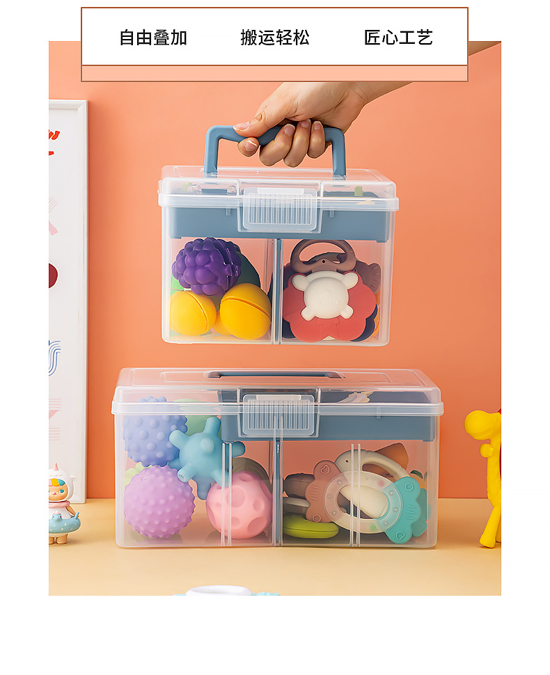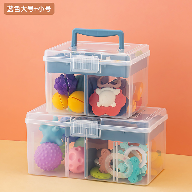 乐高积木玩具收纳箱塑料桌面透明分格收纳盒带盖儿童玩具收纳盒