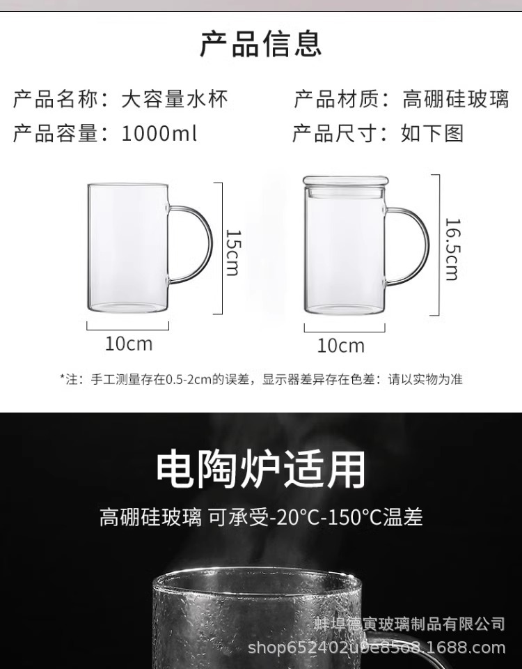 유리 컵 내열 방열 고온 저항 차 컵 1000ml 대용량 사무실 물 컵 남자 컵 맥주 컵스토어 가기