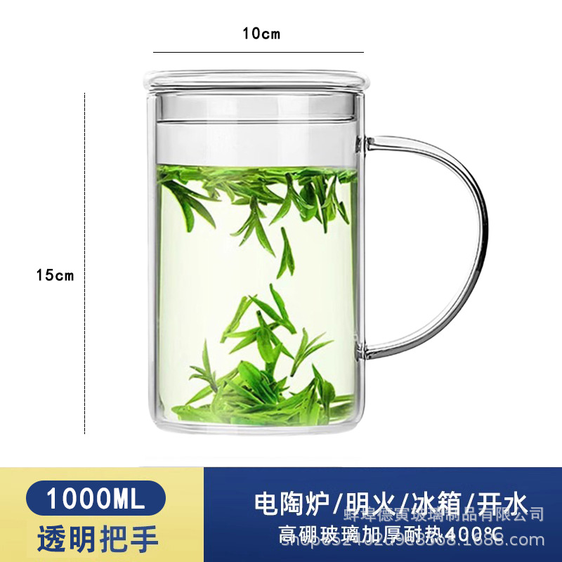 유리 컵 내열 방열 고온 저항 차 컵 1000ml 대용량 사무실 물 컵 남자 컵 맥주 컵