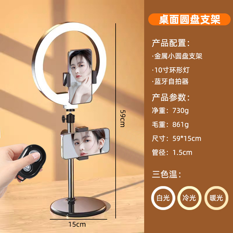 • [금속 작은 디스크 데스크탑 브래킷] (단일 브래킷 10 인치 채우기 빛 블루투스 셀프 타이머)