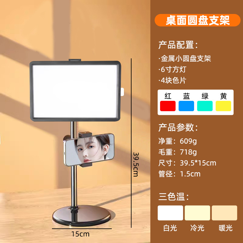 • [금속 작은 디스크 데스크탑 브래킷] (단일 브래킷 6 인치 사각형 램프 블루투스 셀프 타이머)