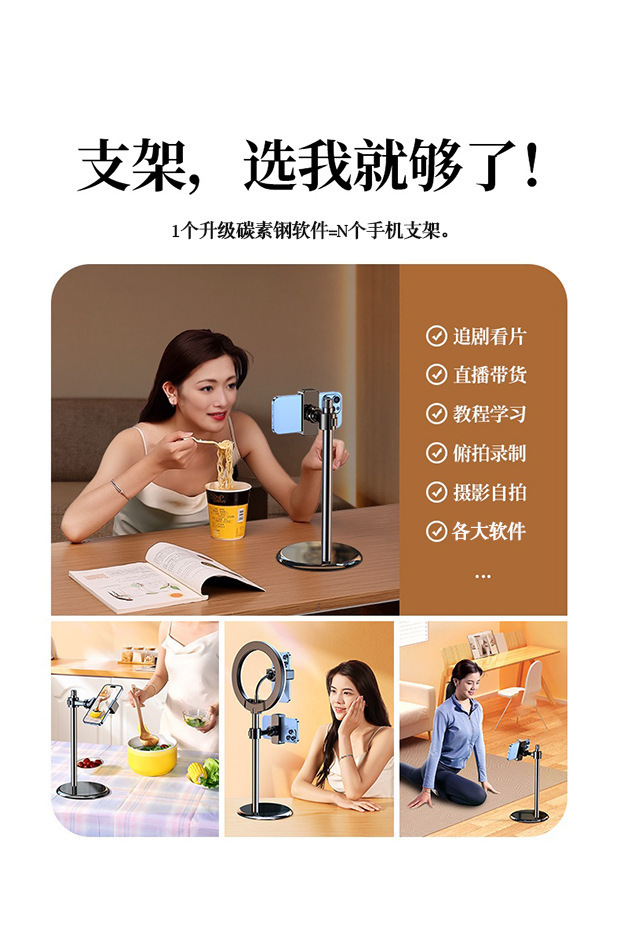 휴대 전화 라이브 사진 데스크탑 브래킷 사진 회전 중지 브래킷 리프팅 조정 무료 망원경 금속 디스크