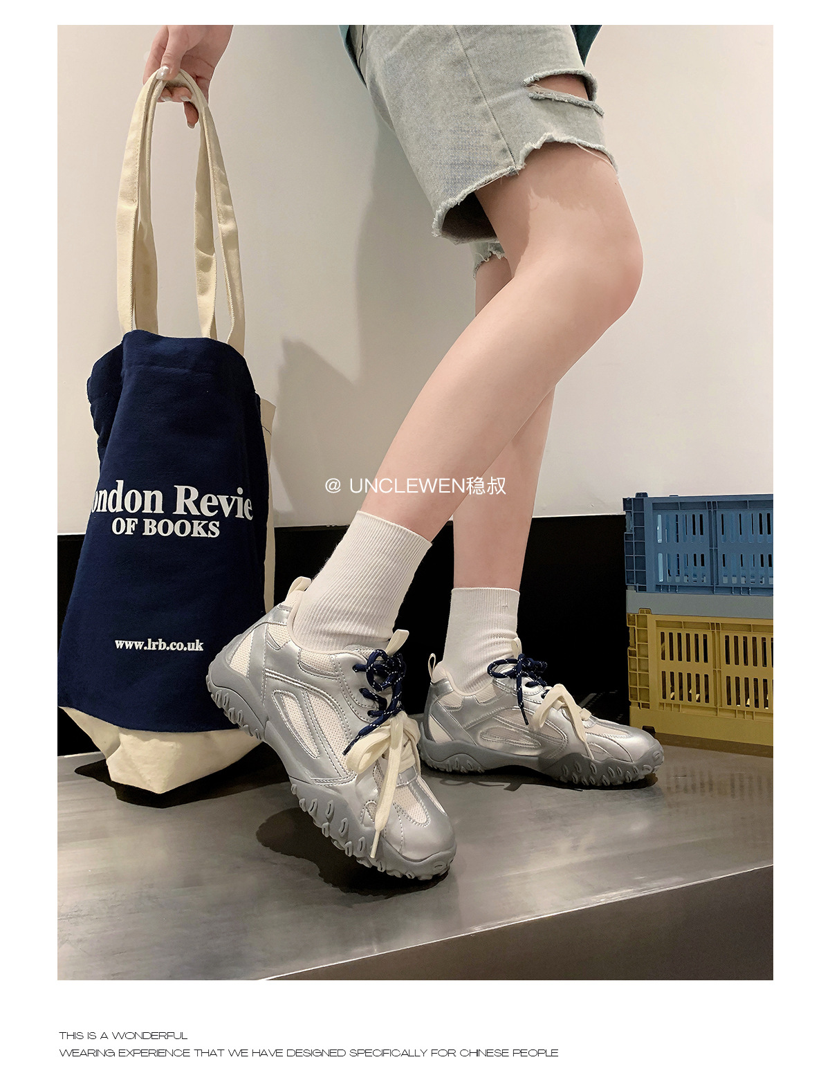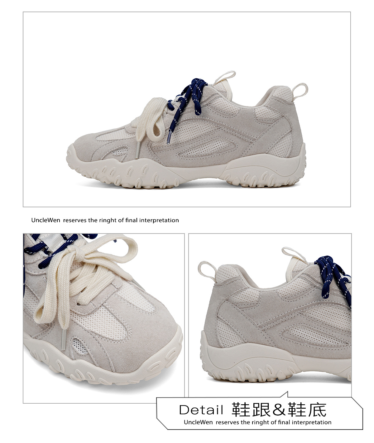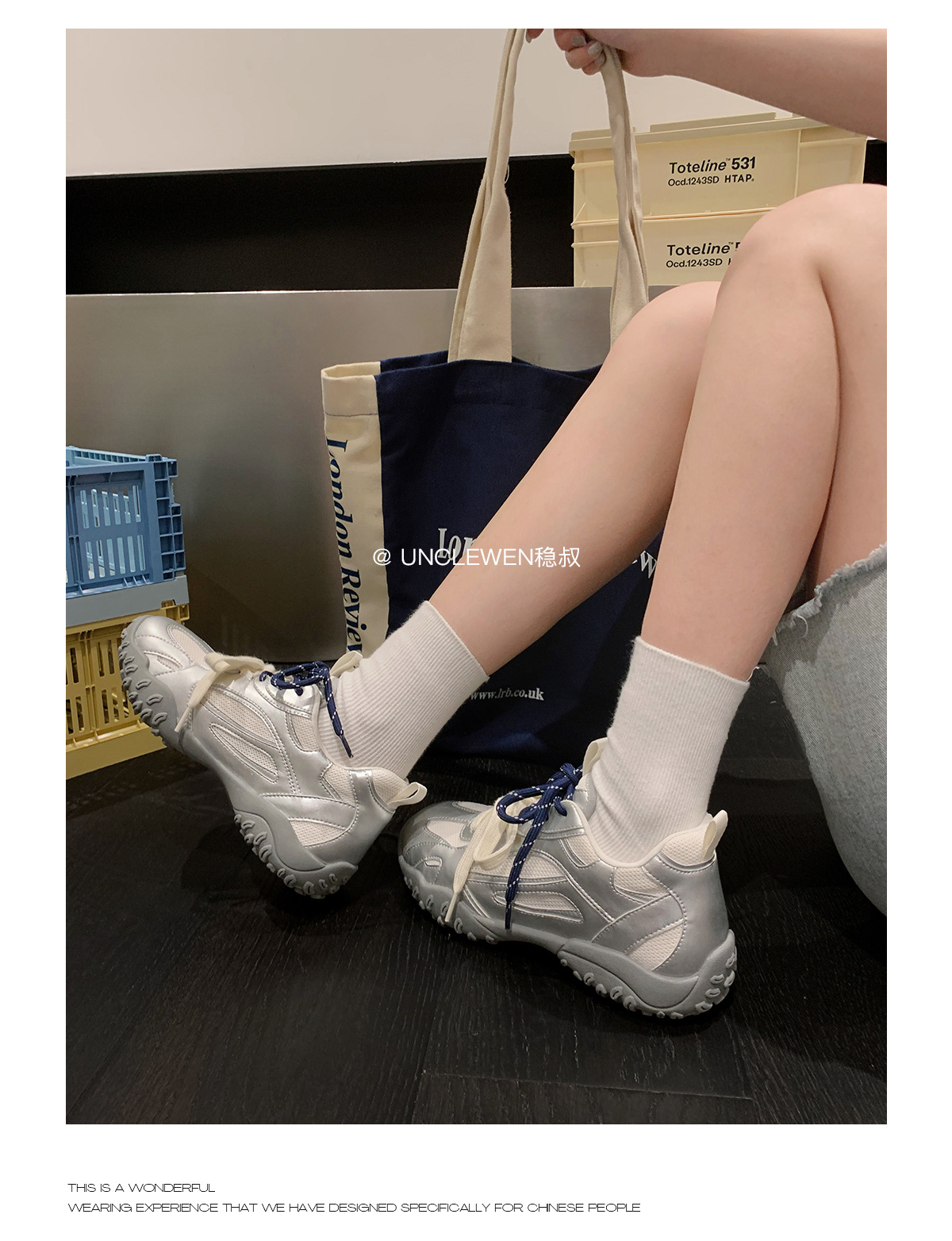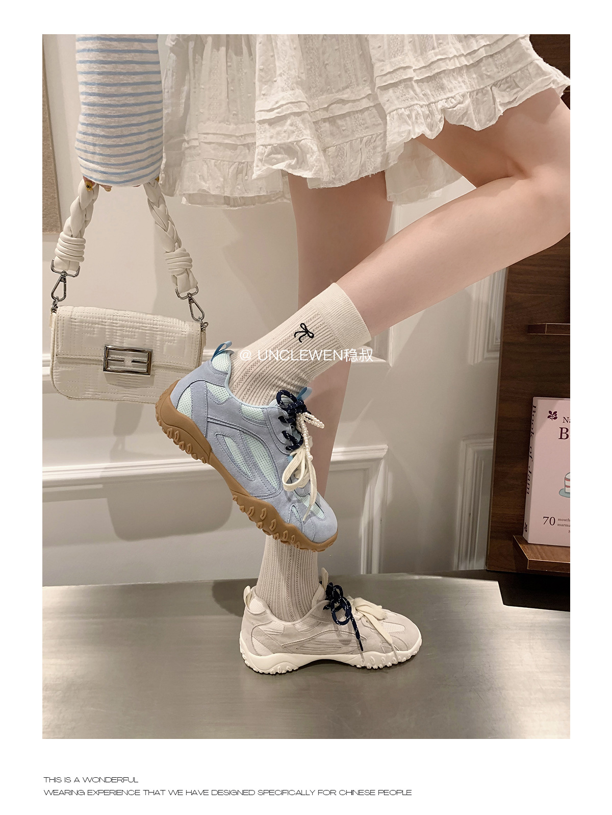 여성용 천연 가죽 메쉬 데드 트레이닝 슈즈 2024 가을 신상 두꺼운 밑창 다용도 오리지널 운동화 캐주얼 아웃도어 아간 슈즈스토어 가기