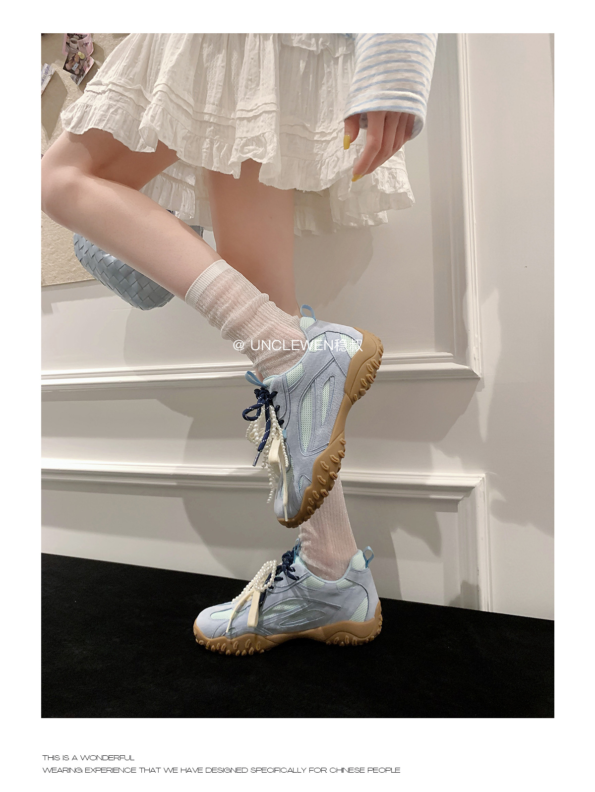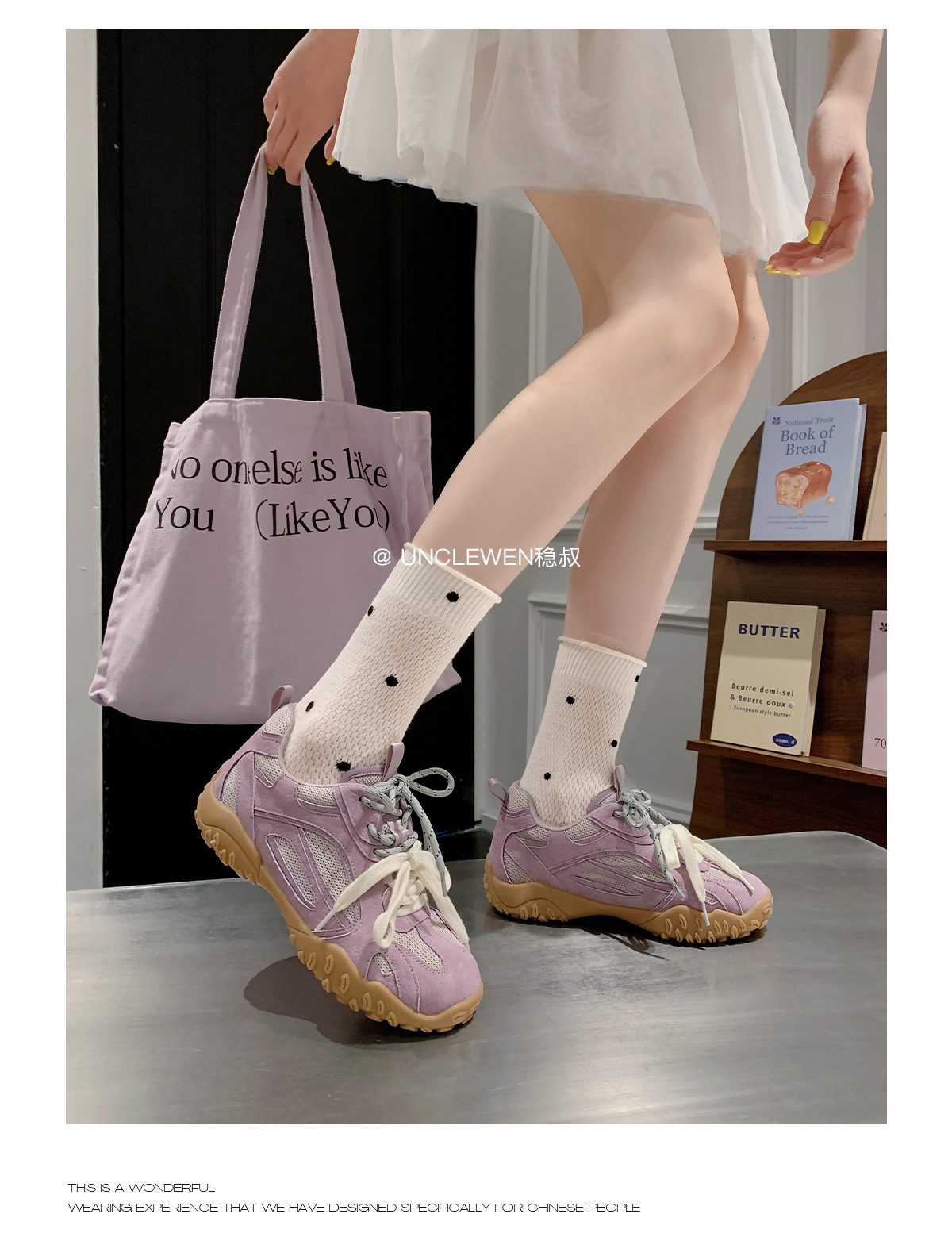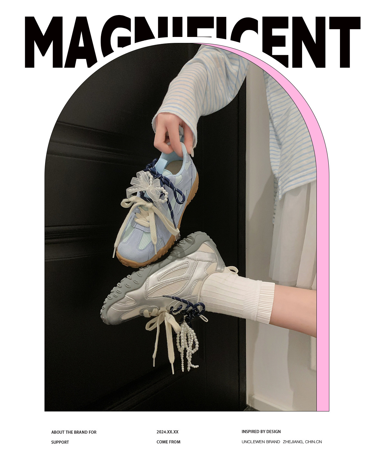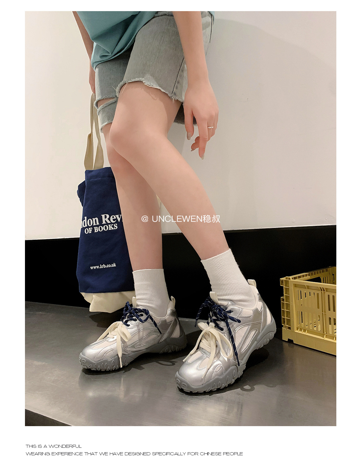 여성용 천연 가죽 메쉬 데드 트레이닝 슈즈 2024 가을 신상 두꺼운 밑창 다용도 오리지널 운동화 캐주얼 아웃도어 아간 슈즈스토어 가기