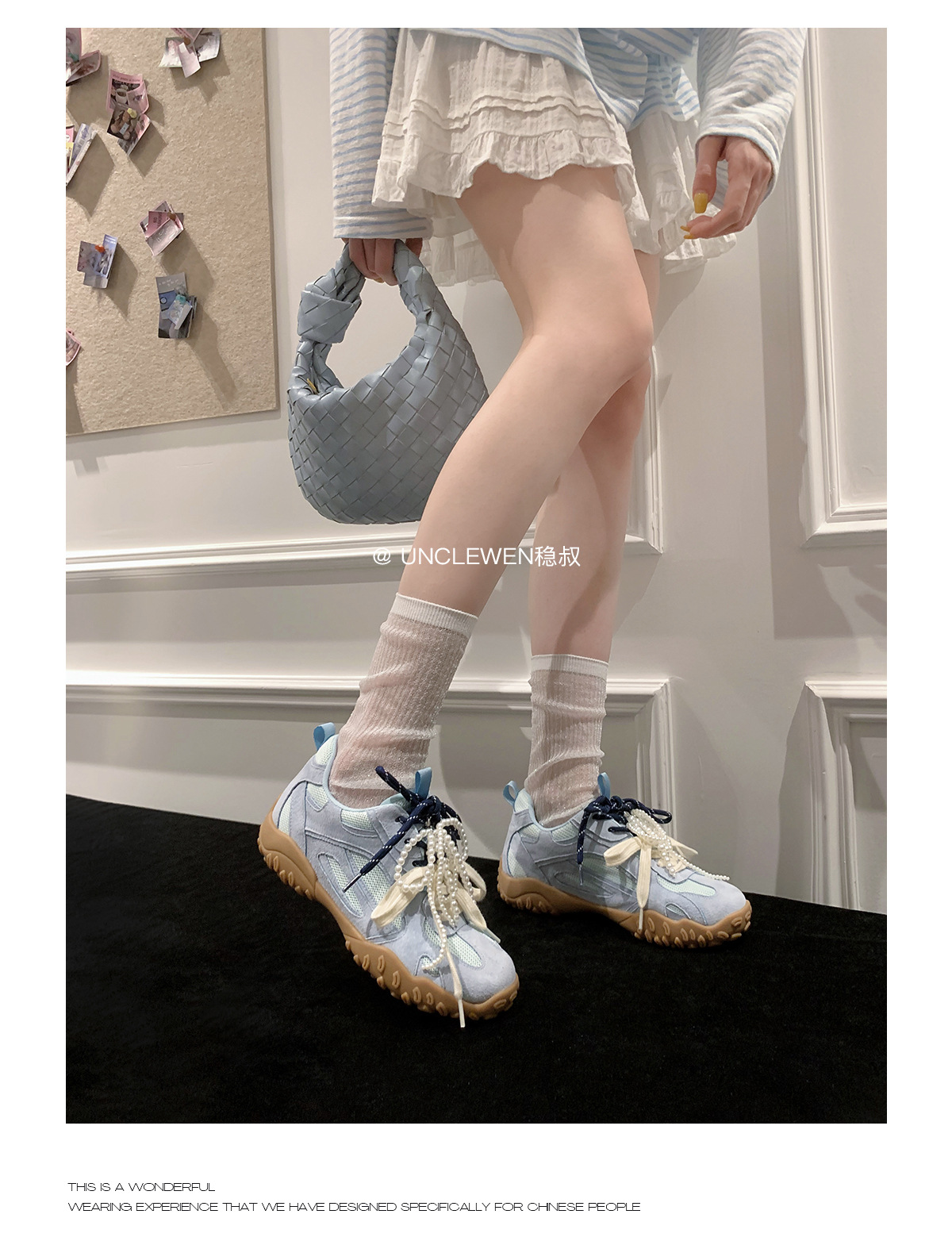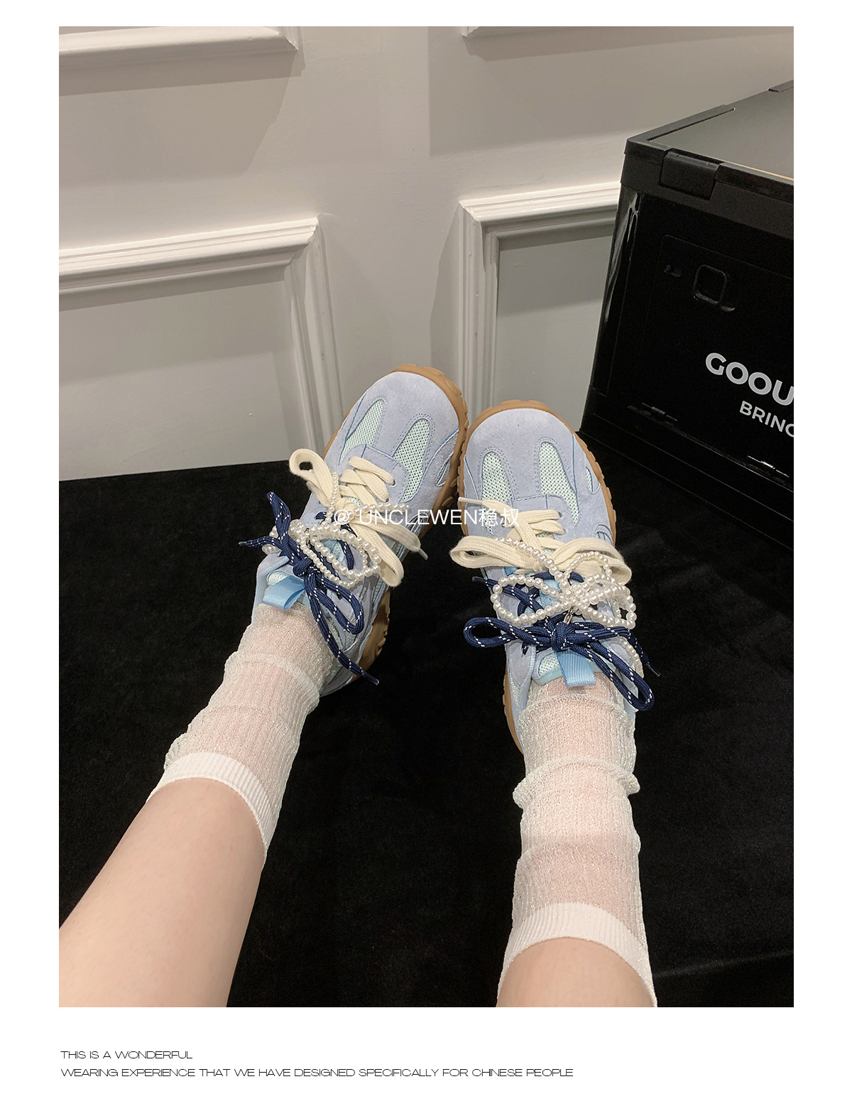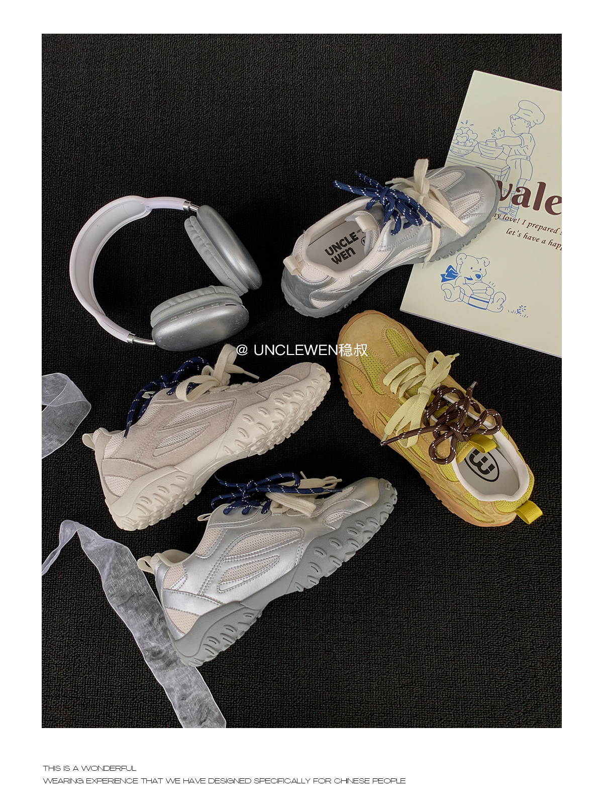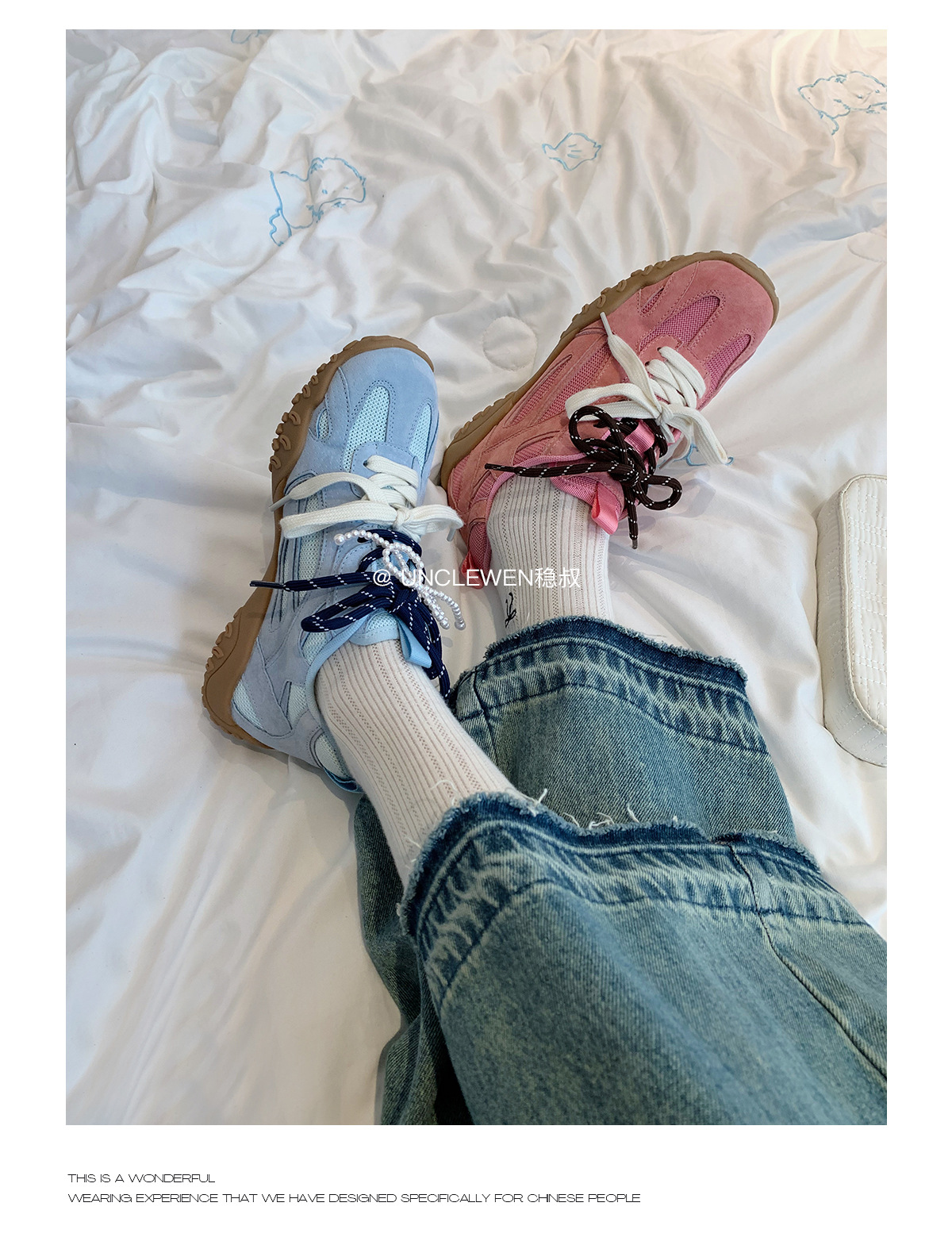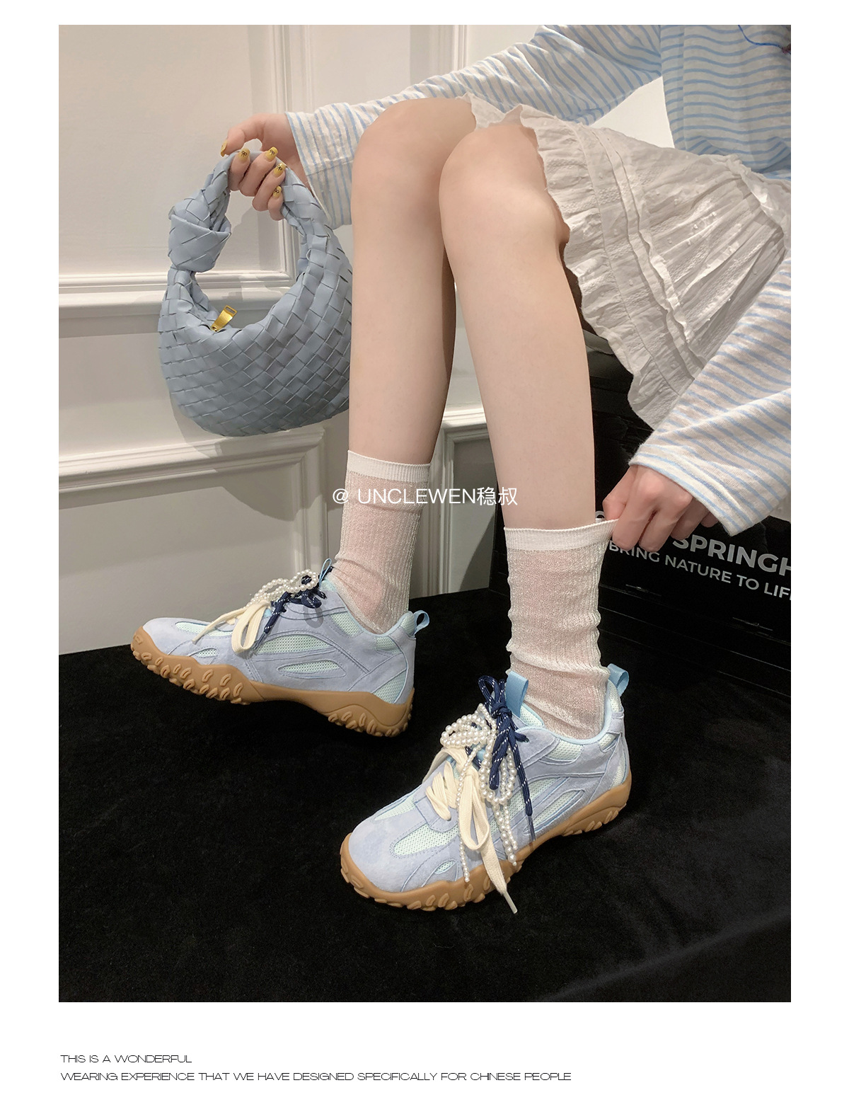 여성용 천연 가죽 메쉬 데드 트레이닝 슈즈 2024 가을 신상 두꺼운 밑창 다용도 오리지널 운동화 캐주얼 아웃도어 아간 슈즈스토어 가기