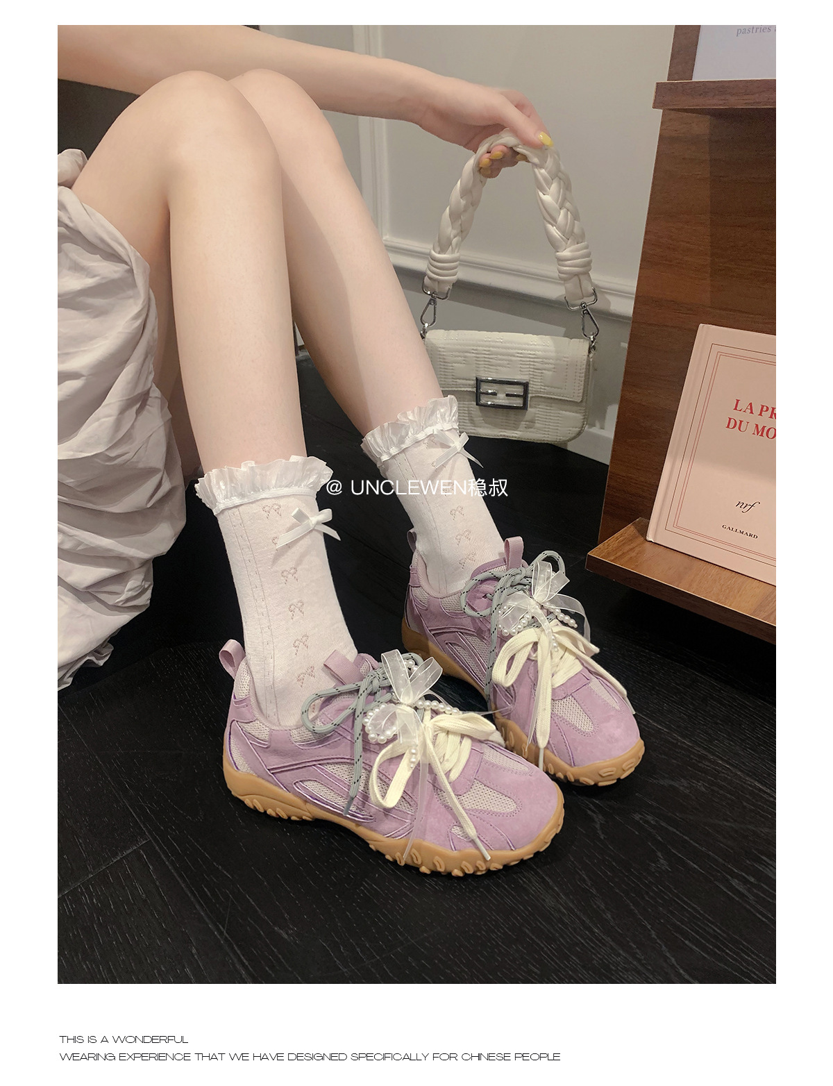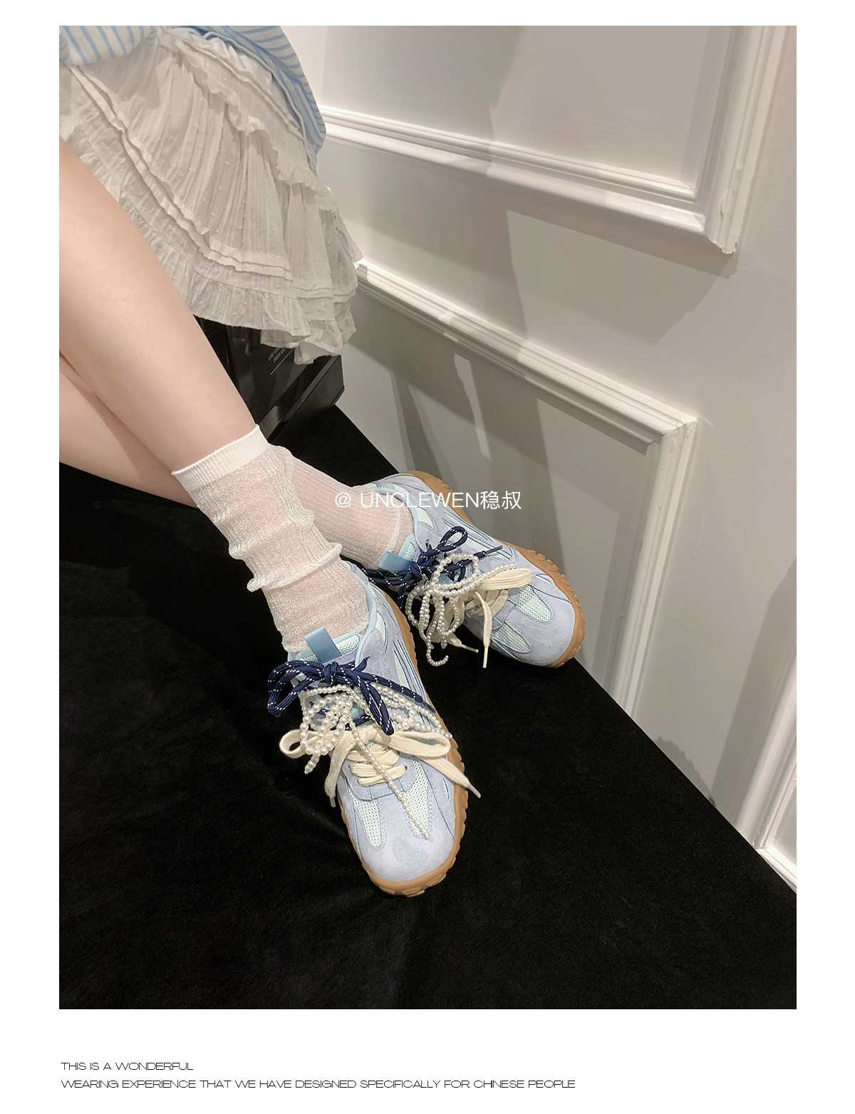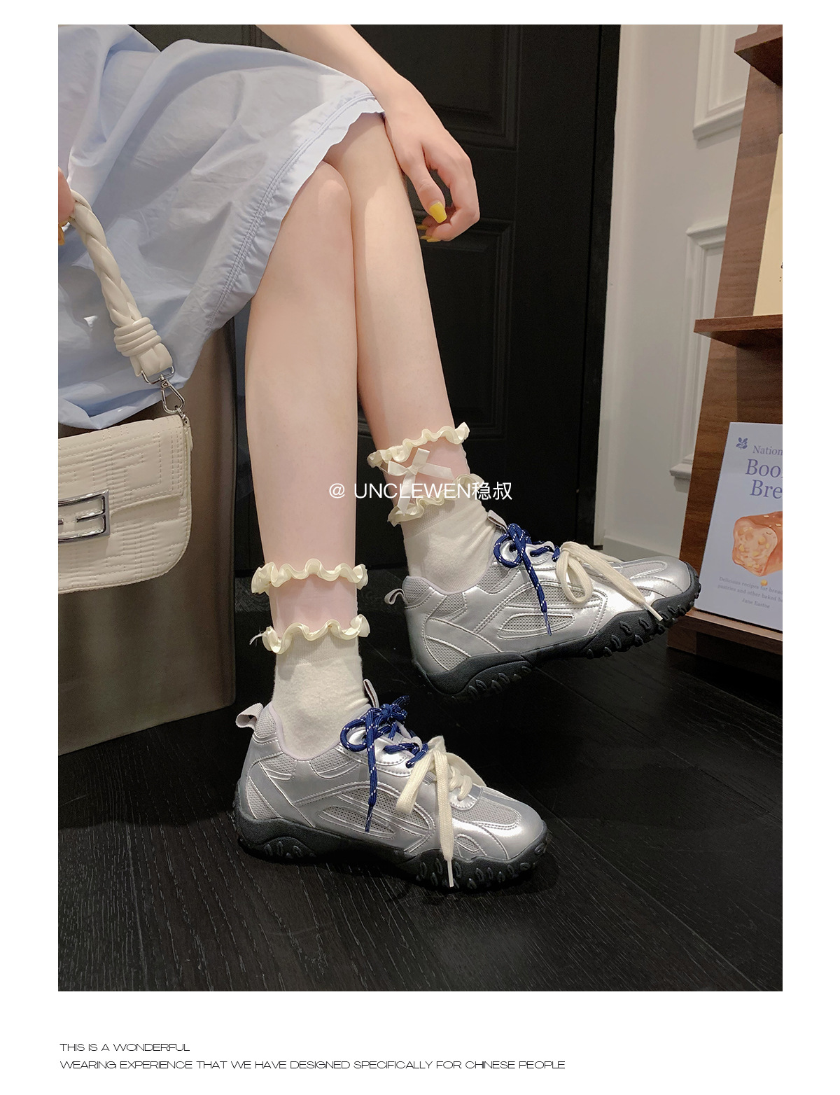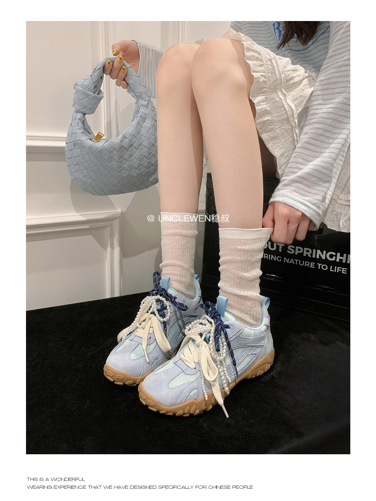 여성용 천연 가죽 메쉬 데드 트레이닝 슈즈 2024 가을 신상 두꺼운 밑창 다용도 오리지널 운동화 캐주얼 아웃도어 아간 슈즈스토어 가기