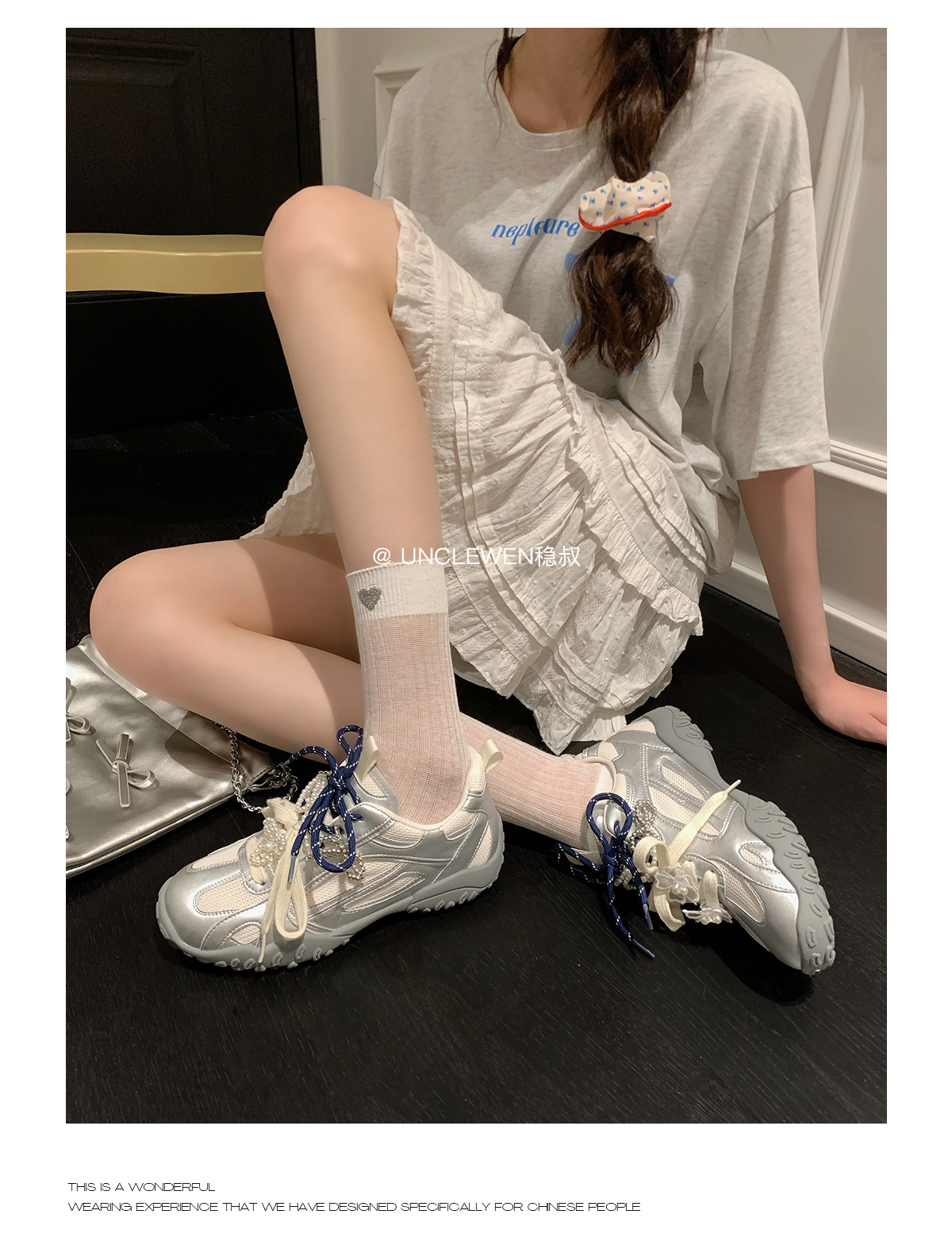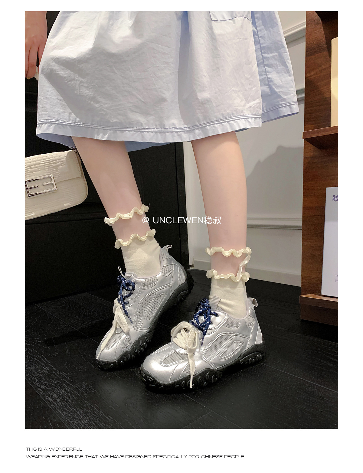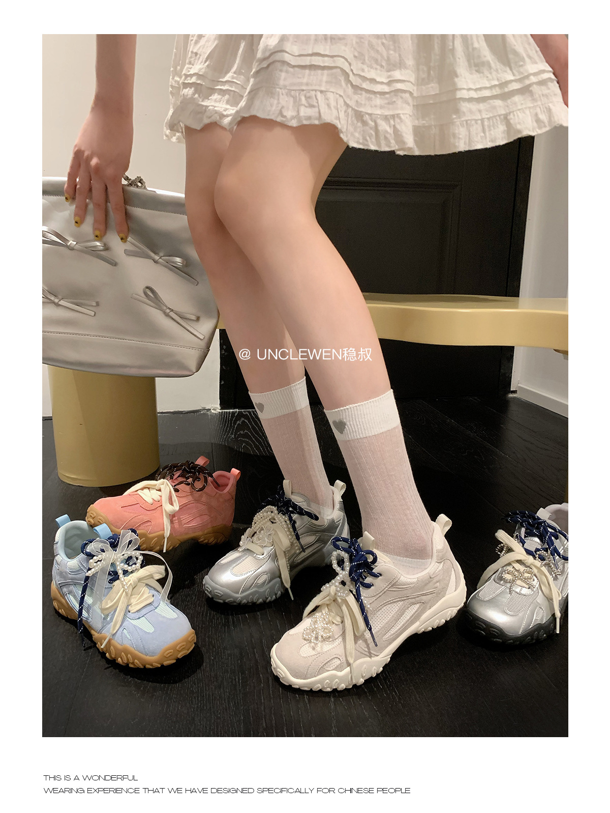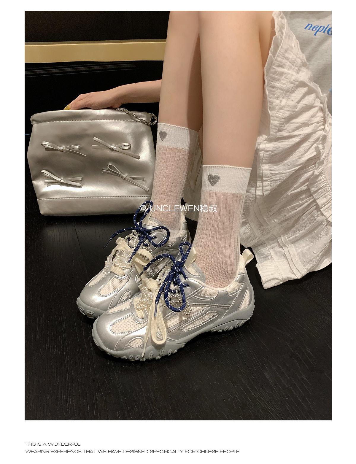 여성용 천연 가죽 메쉬 데드 트레이닝 슈즈 2024 가을 신상 두꺼운 밑창 다용도 오리지널 운동화 캐주얼 아웃도어 아간 슈즈스토어 가기