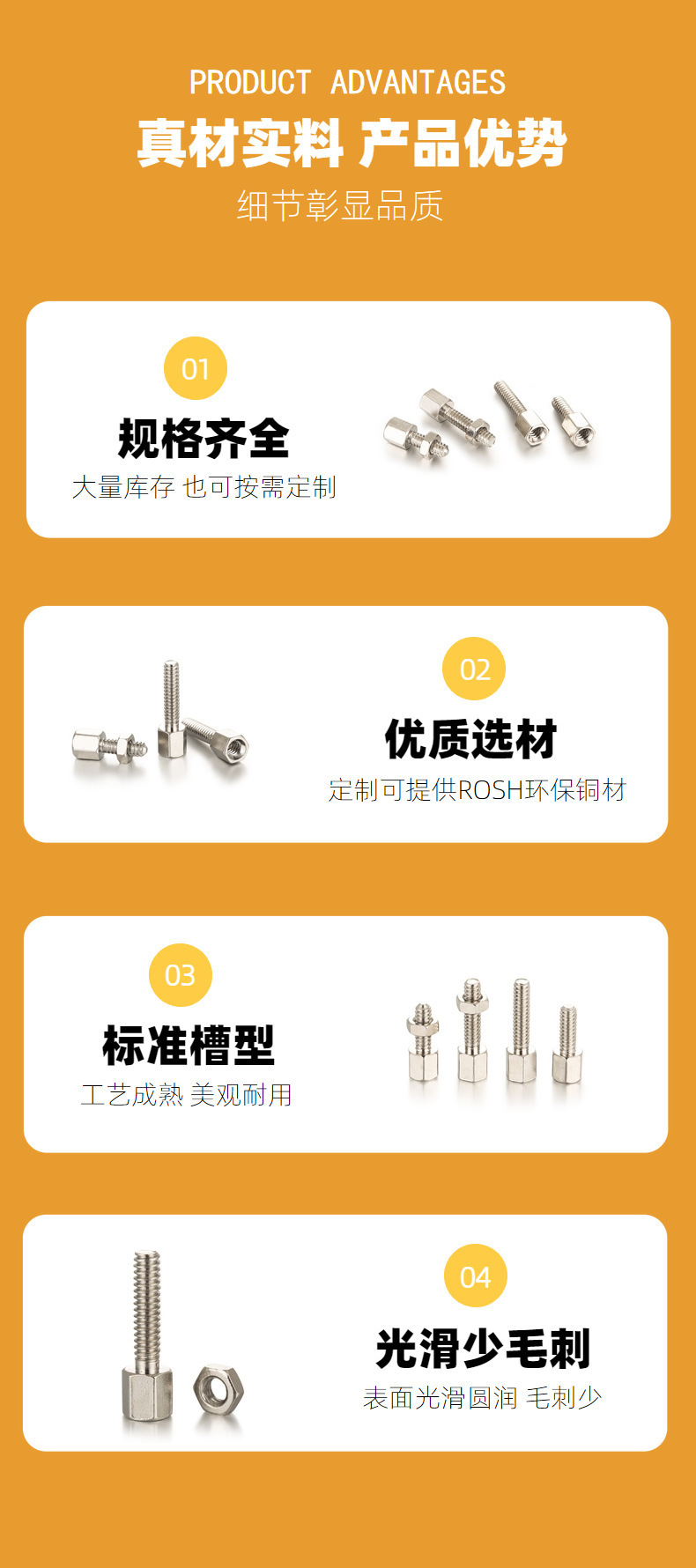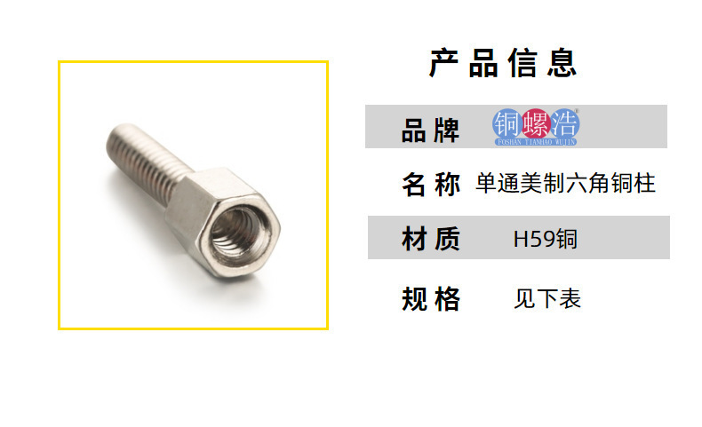 [4 #-40] 재고 공급 니켈 도금 H59 단일 패스 미국 육각형 구리 열 섀시 지원 격리 내부 및 외부 치아