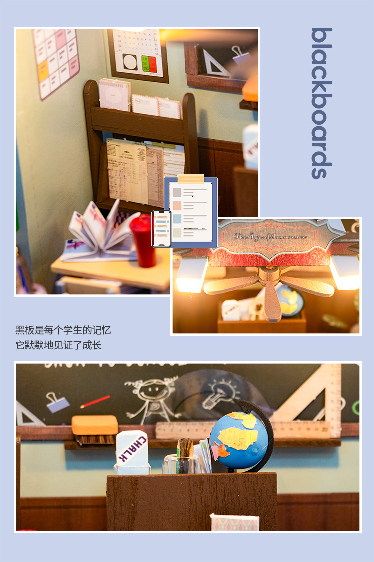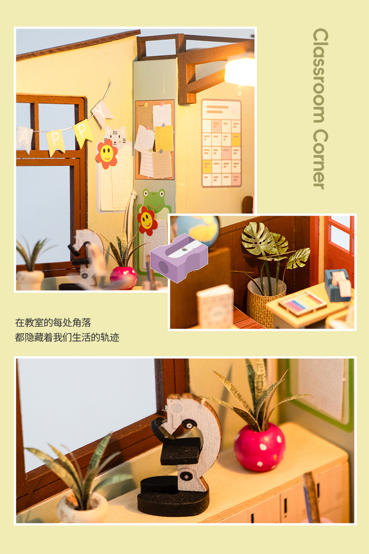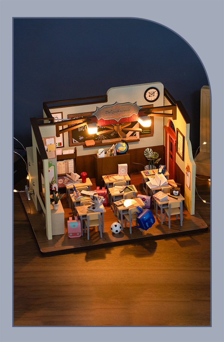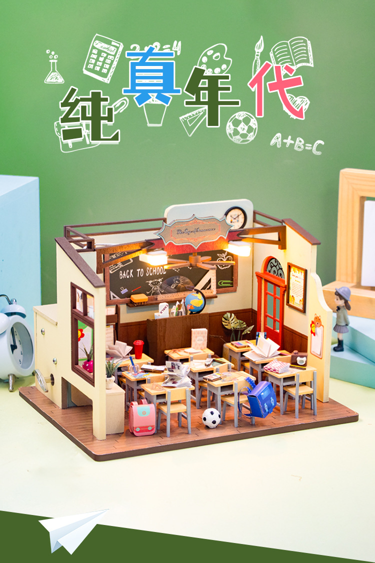 DIY 수제 인형 집 무죄 시대 미니 3D 건물 조립 교실 나무 모델 학교스토어 가기