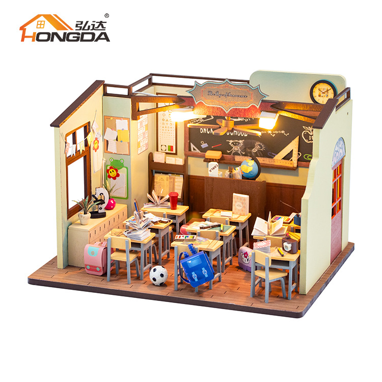 DIY 수제 인형 집 무죄 시대 미니 3D 건물 조립 교실 나무 모델 학교