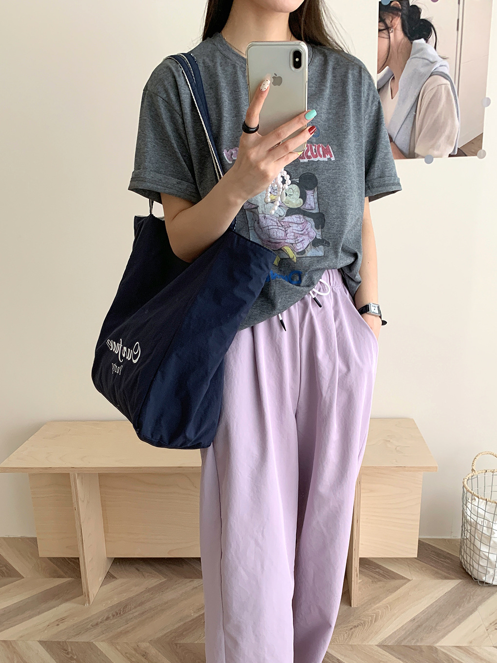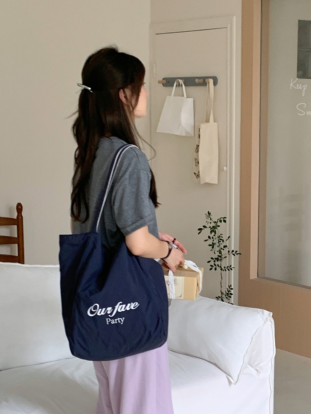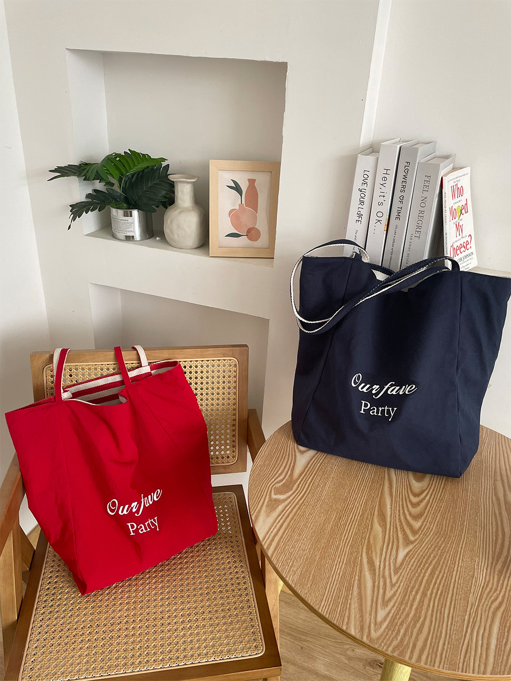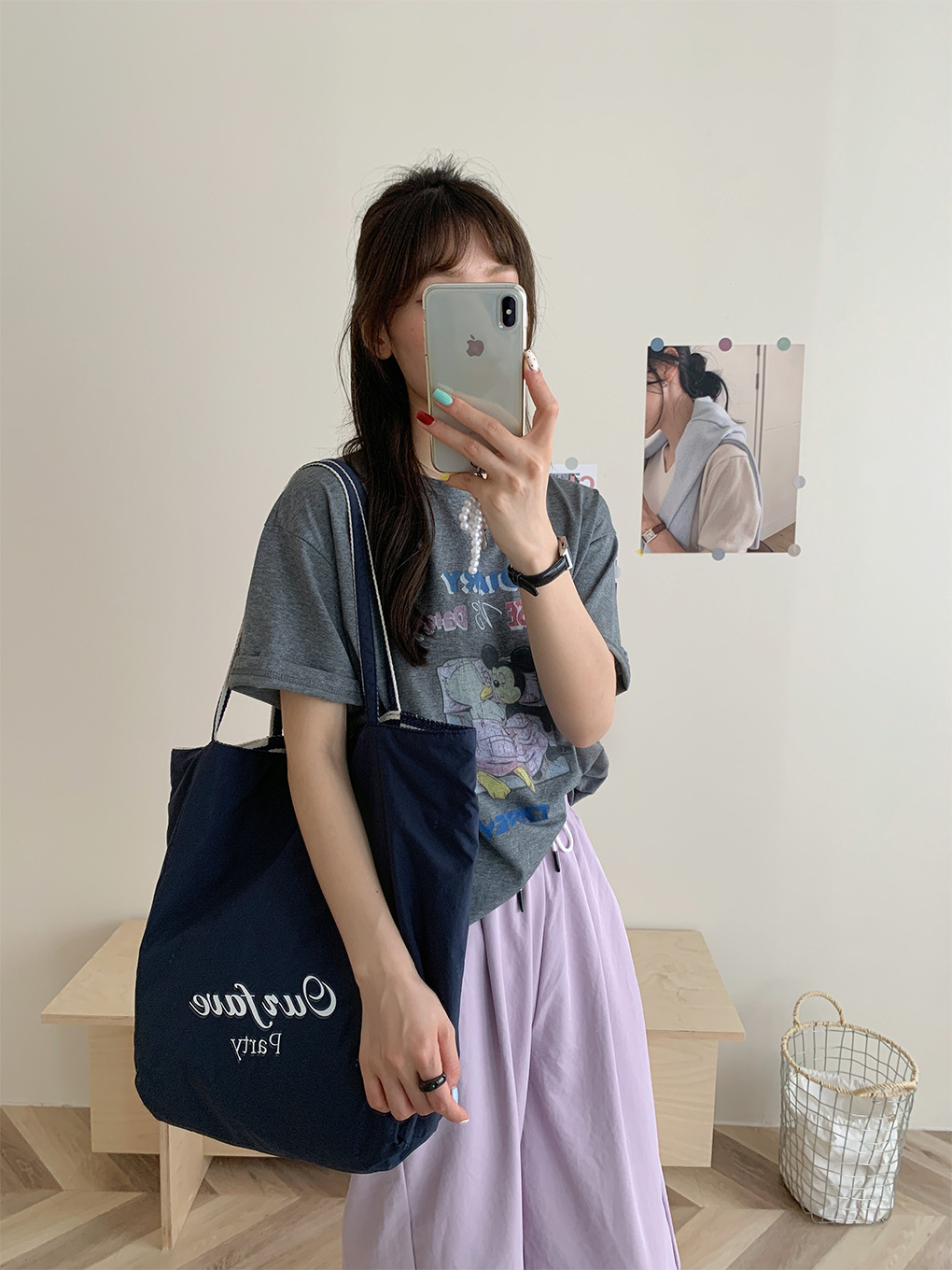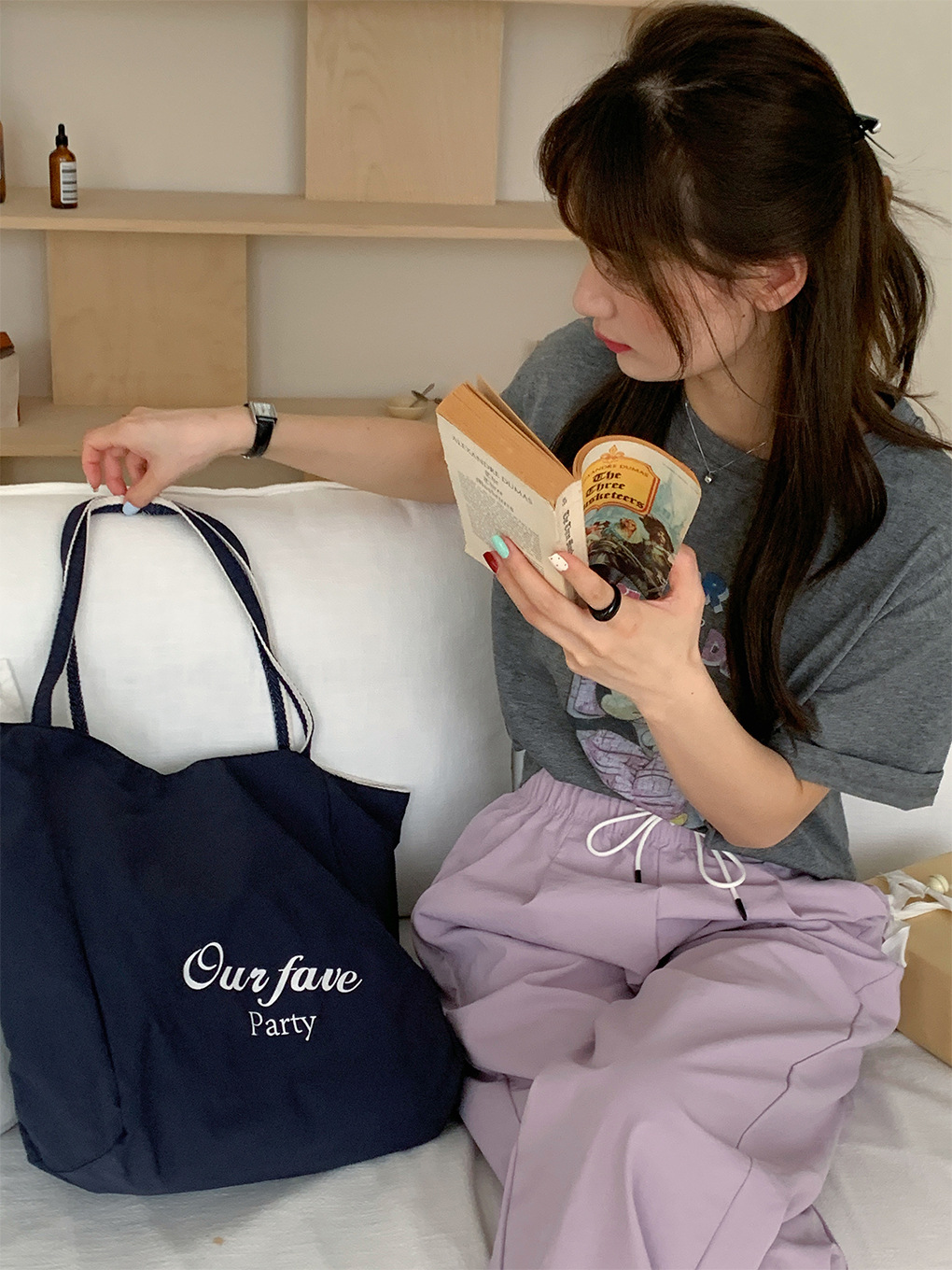 [두꺼운 재고] 줄무늬 캔버스 가방 2024 새로운 한국 스타일 인 토트 캐주얼 가방 어깨 가방스토어 가기