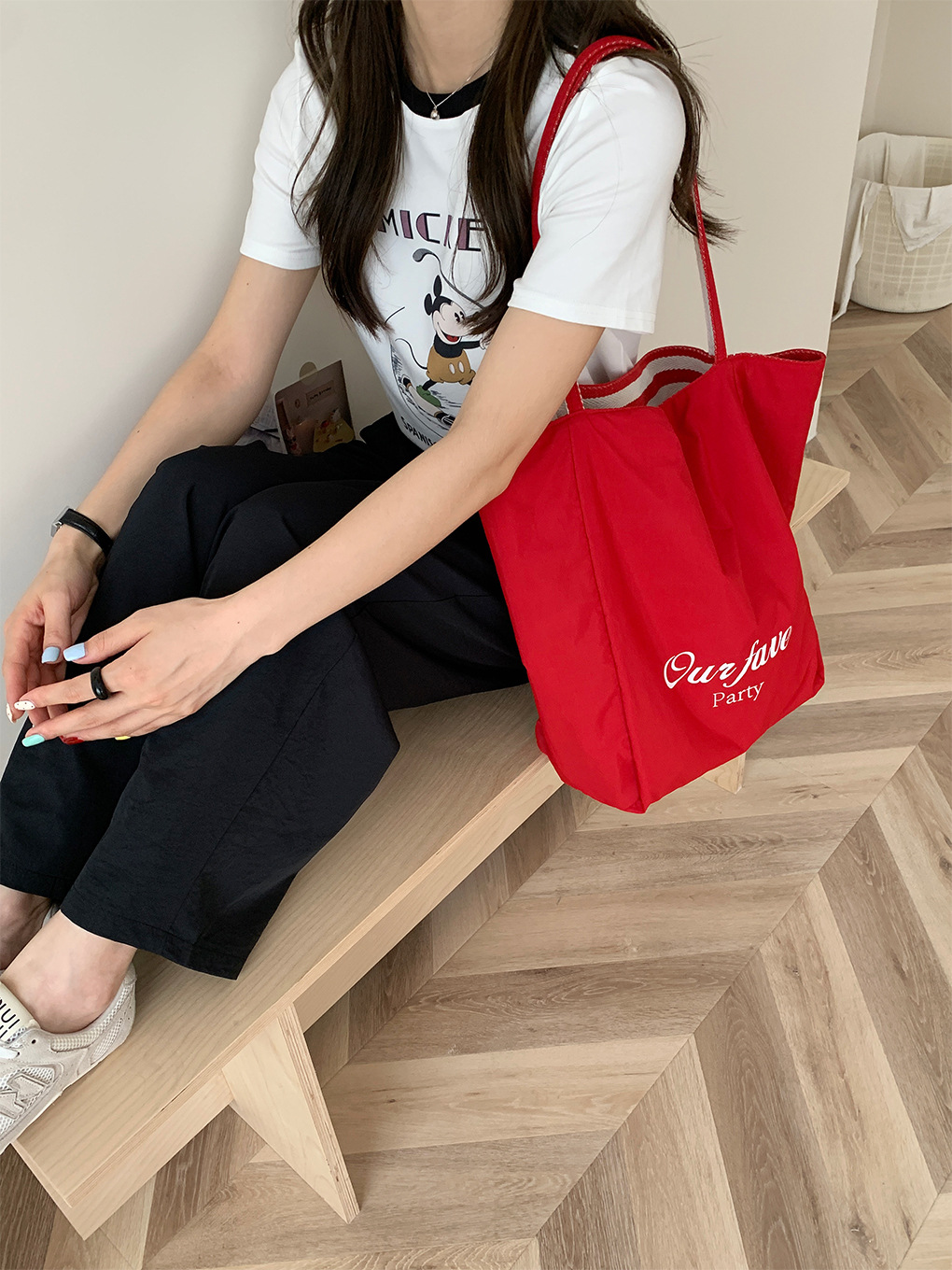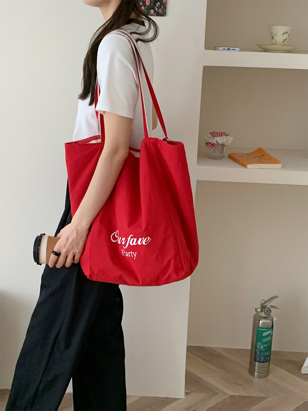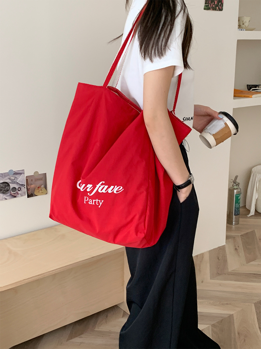 • 이중 목적 줄무늬 숄더백-빨간 나 편지