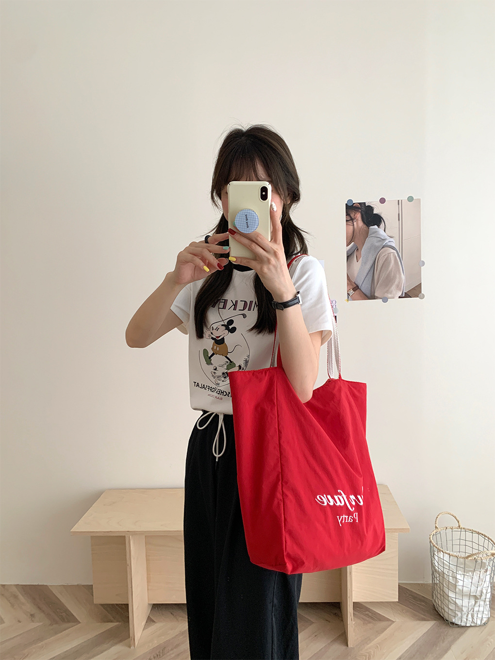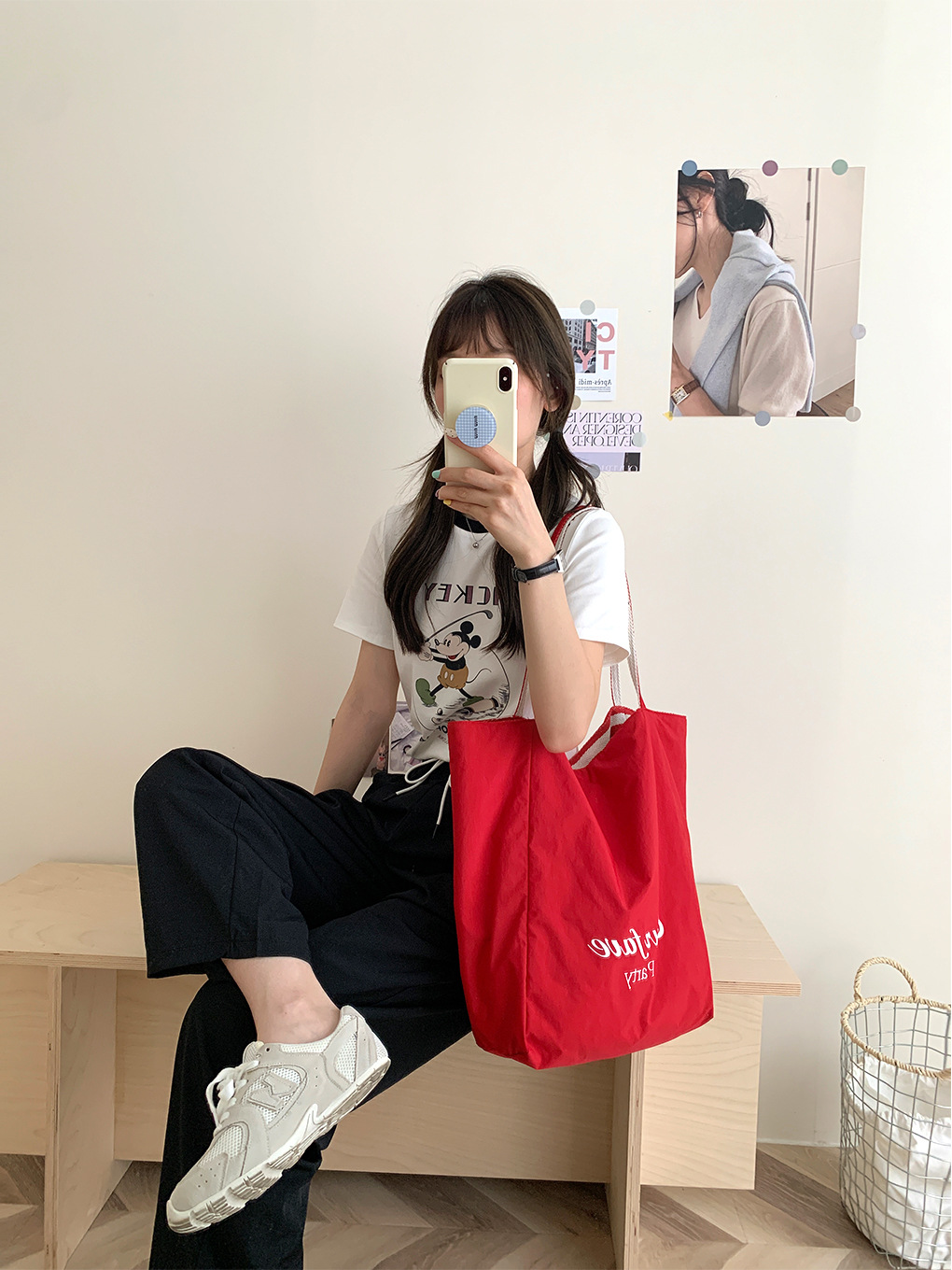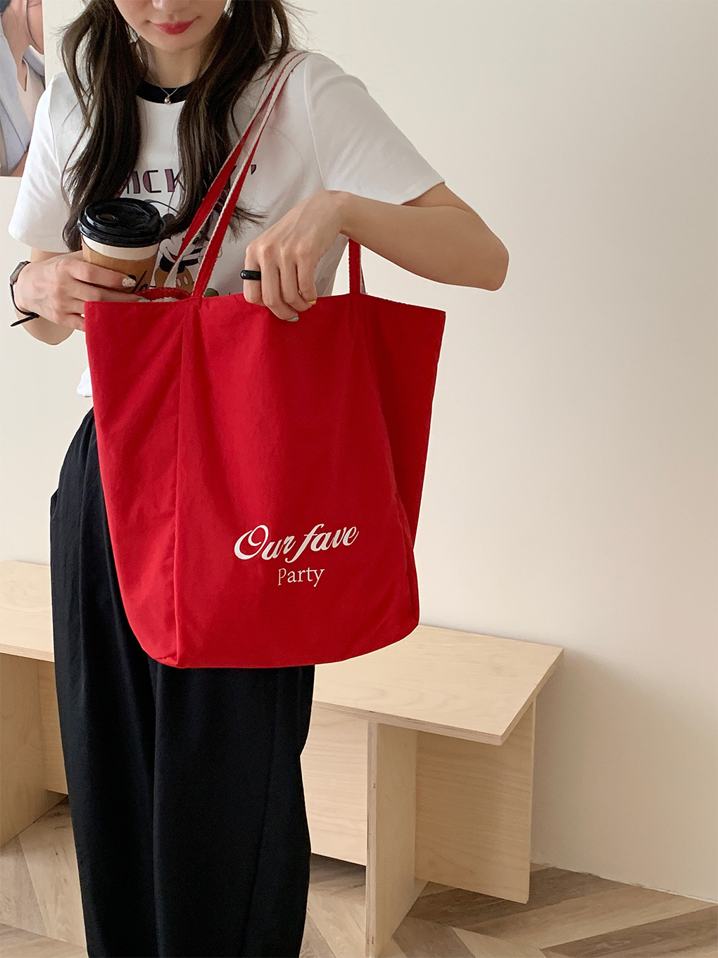 • 이중 목적 줄무늬 숄더백-빨간 나 편지