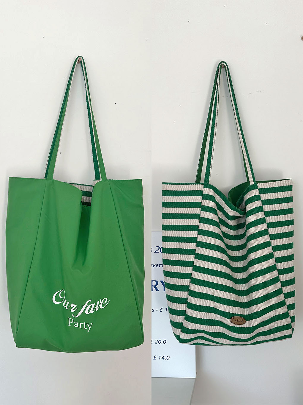 • 리버시블 스트라이프 숄더백 - 그린 + 레몬옐로우 스트라이프