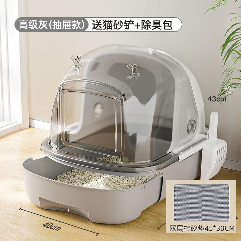 고양이 쓰레기 분지 대형 폐쇄 고양이 쓰레기 분지 서랍 유형 플립 커버 냄새 방지 안티 스플래시 고양이 화장실 청소 리치
