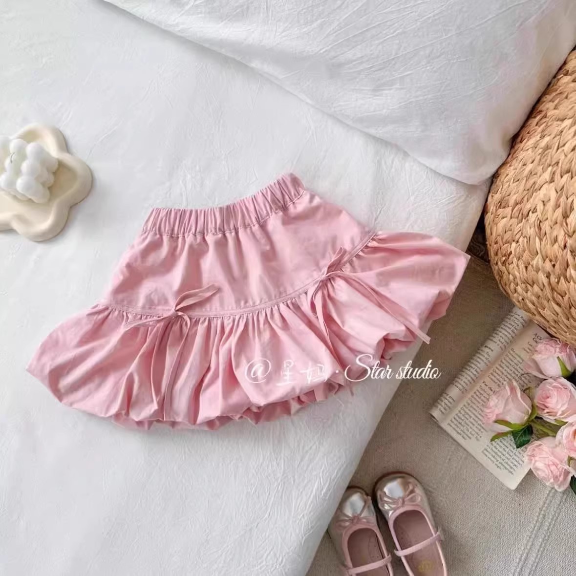 여아 한국 스타일 리본 꽃봉오리 스커트 2026 여름 여아용 세련된 캐주얼 스커트 귀엽고 다용도로 활용 가능한 스커트