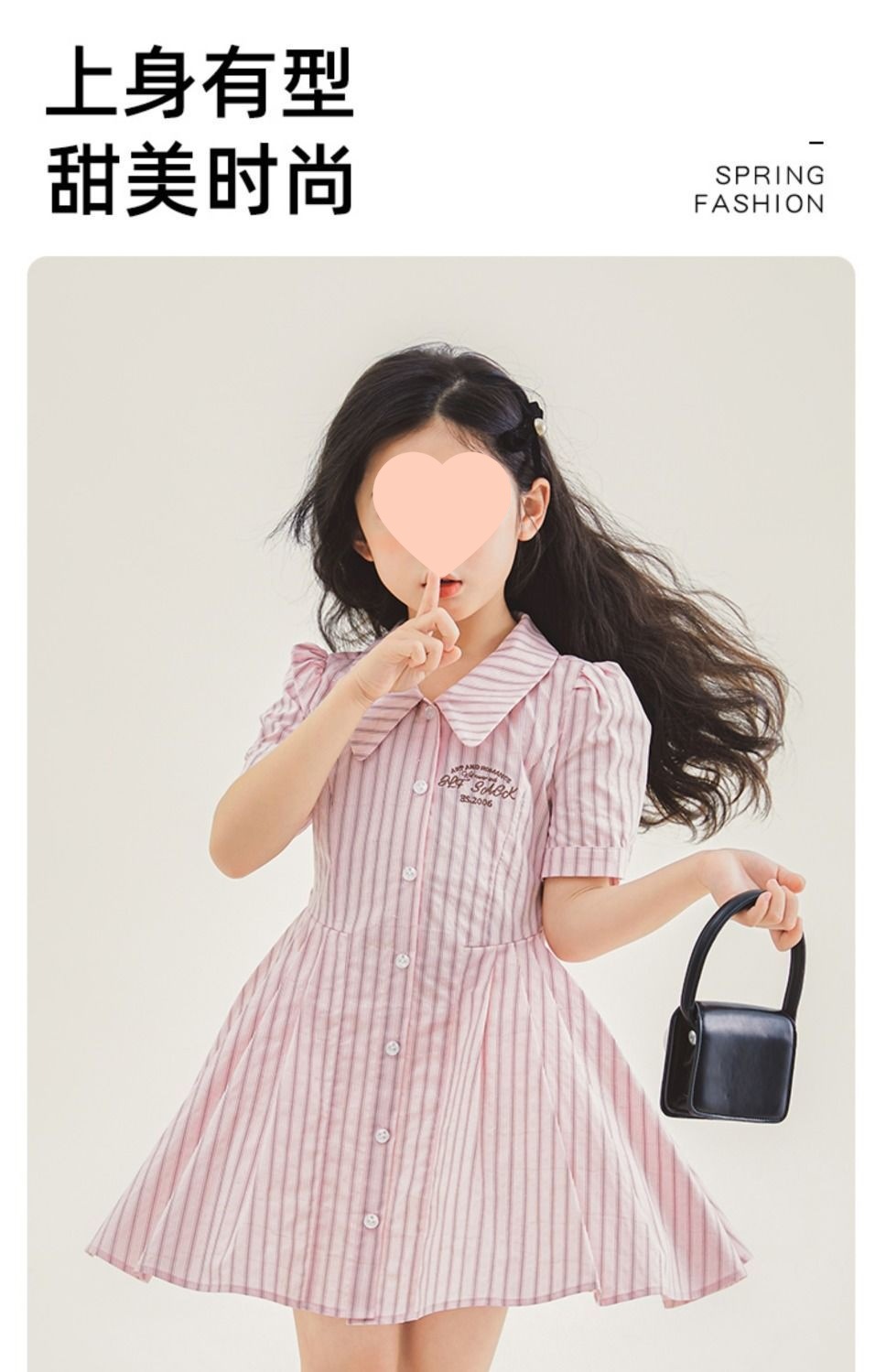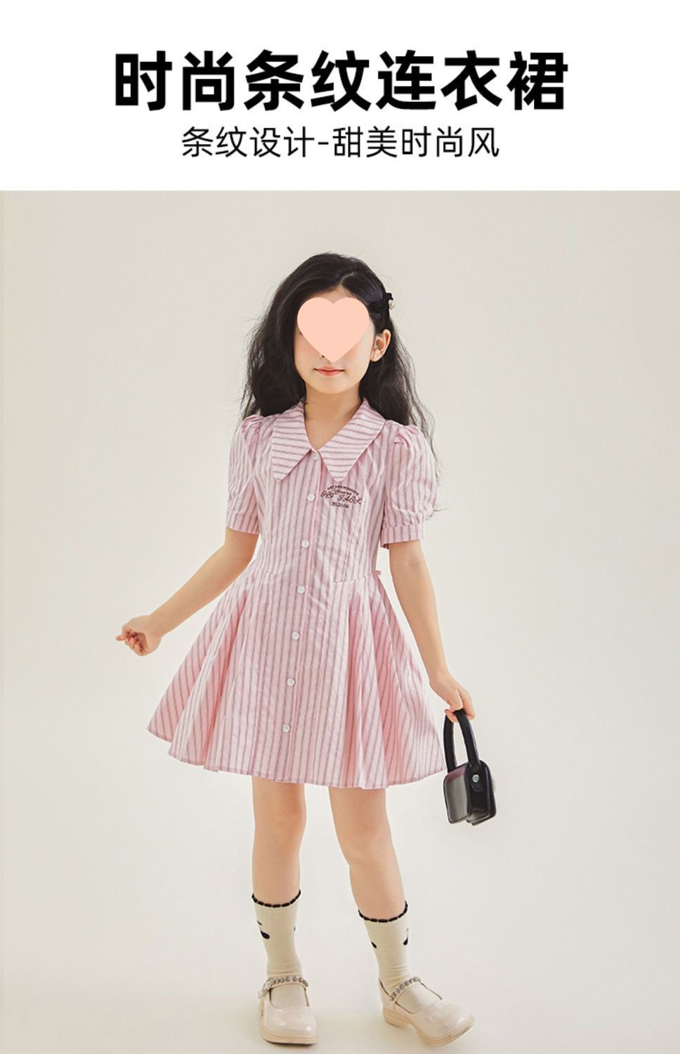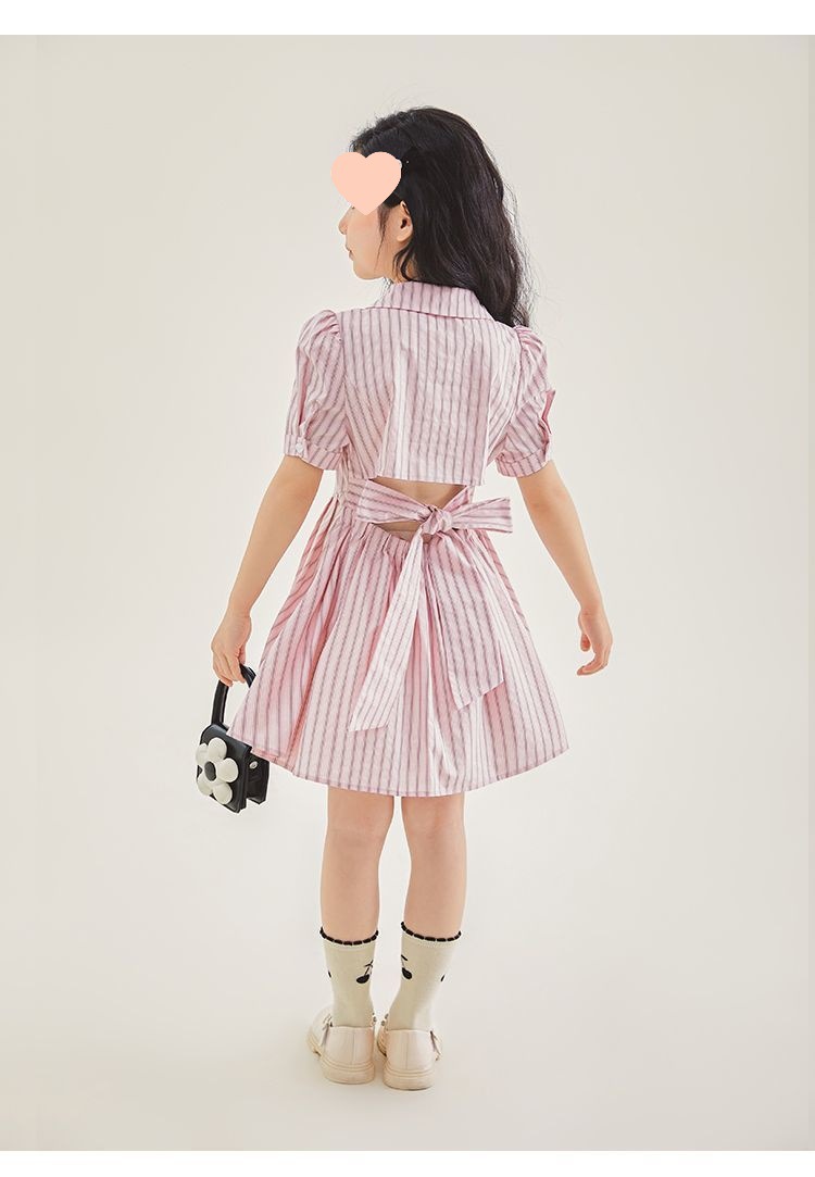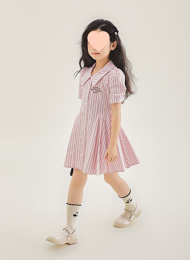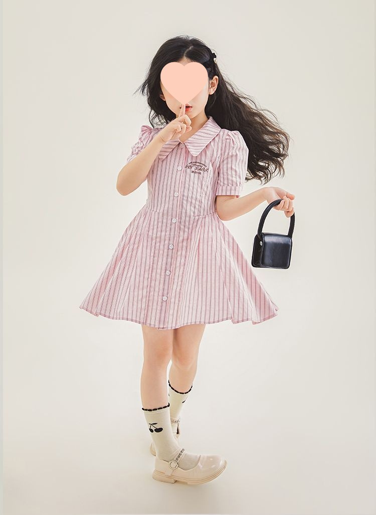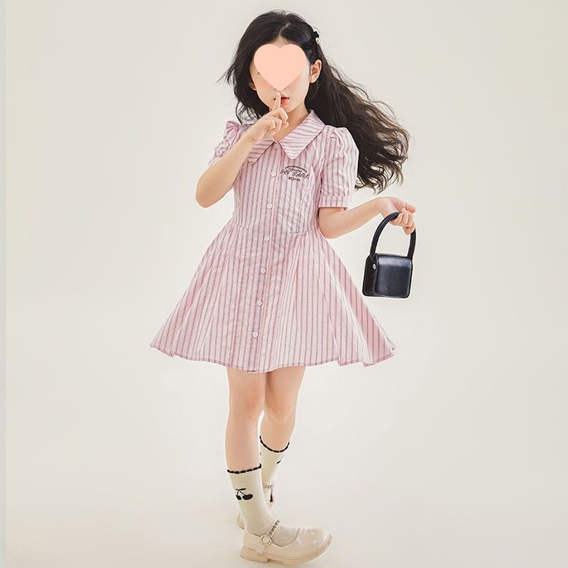 여자 한국 스타일 유행 캐주얼 옷깃 셔츠 원피스 큰 아이 여름 새로운 유행 줄무늬 공주 원피스 트렌디스토어 가기