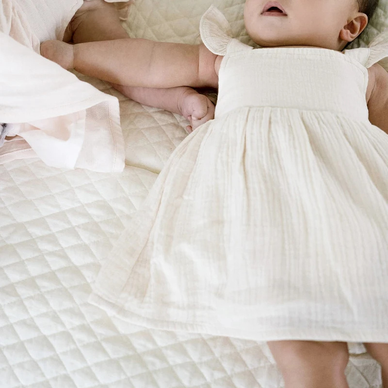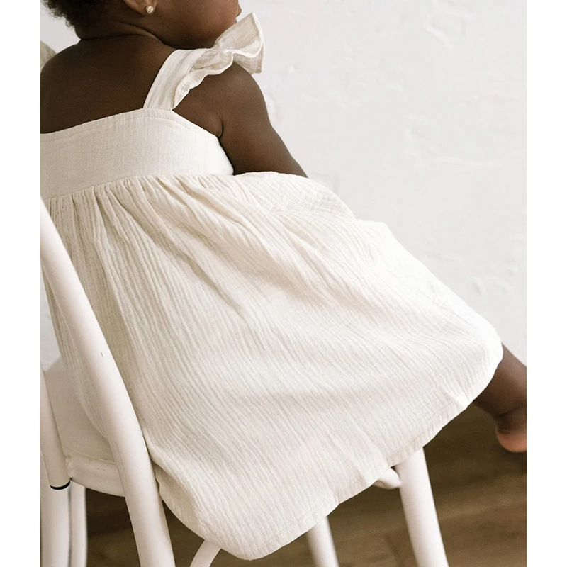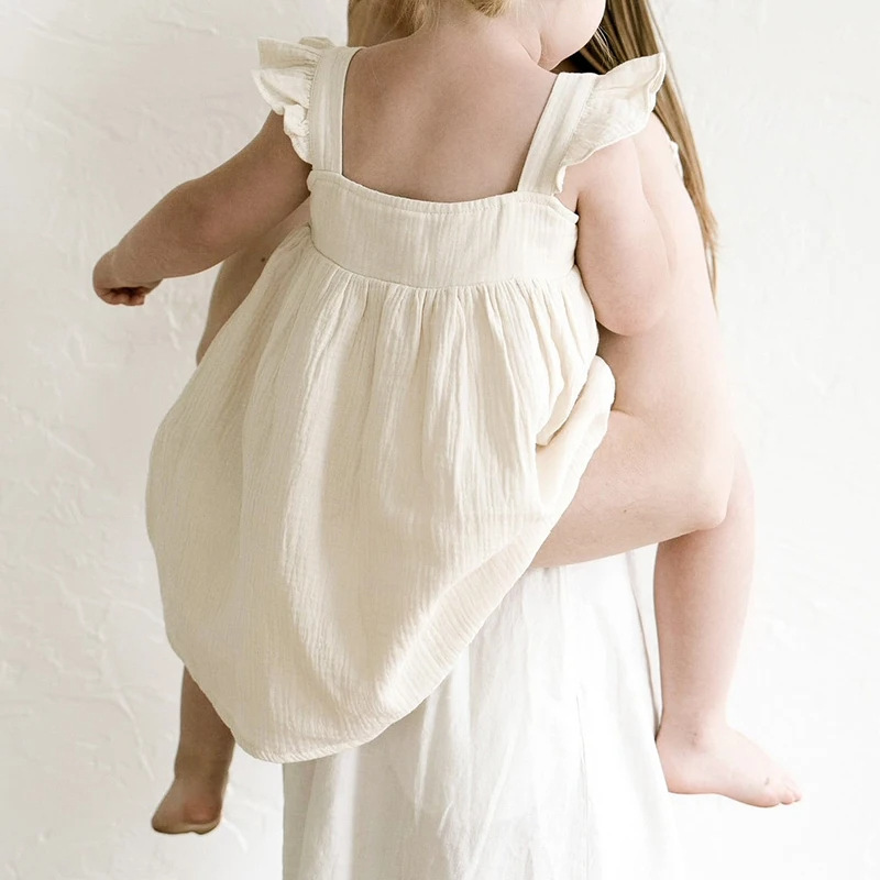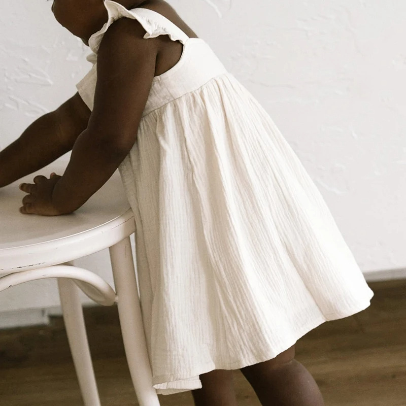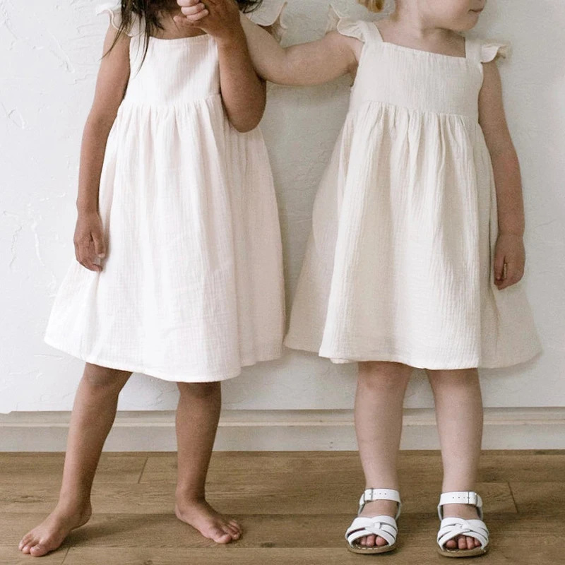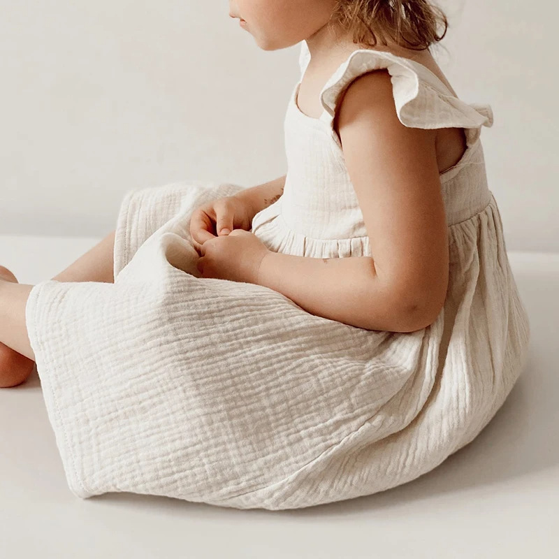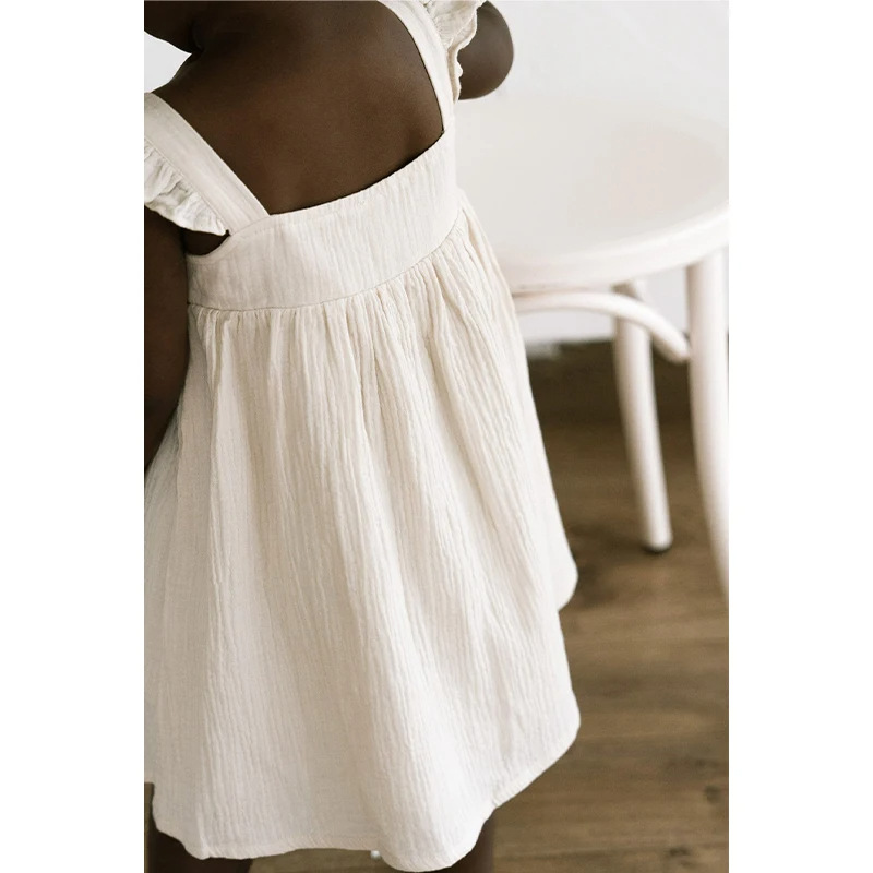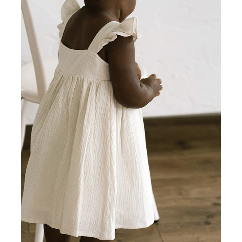 여름 순수 코튼 Zou 천 비행 소매 원피스 소녀의 귀여운 풀오버 공주 원피스 느슨한 솔리드 컬러 A 라인 원피스스토어 가기