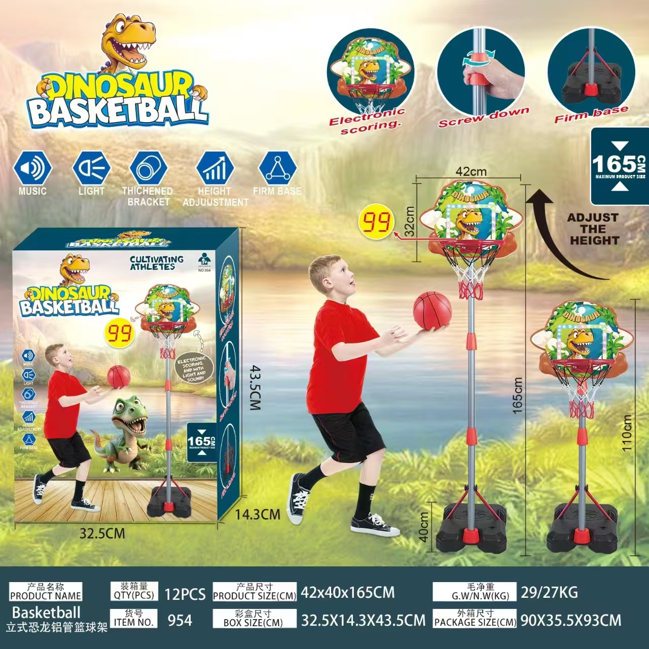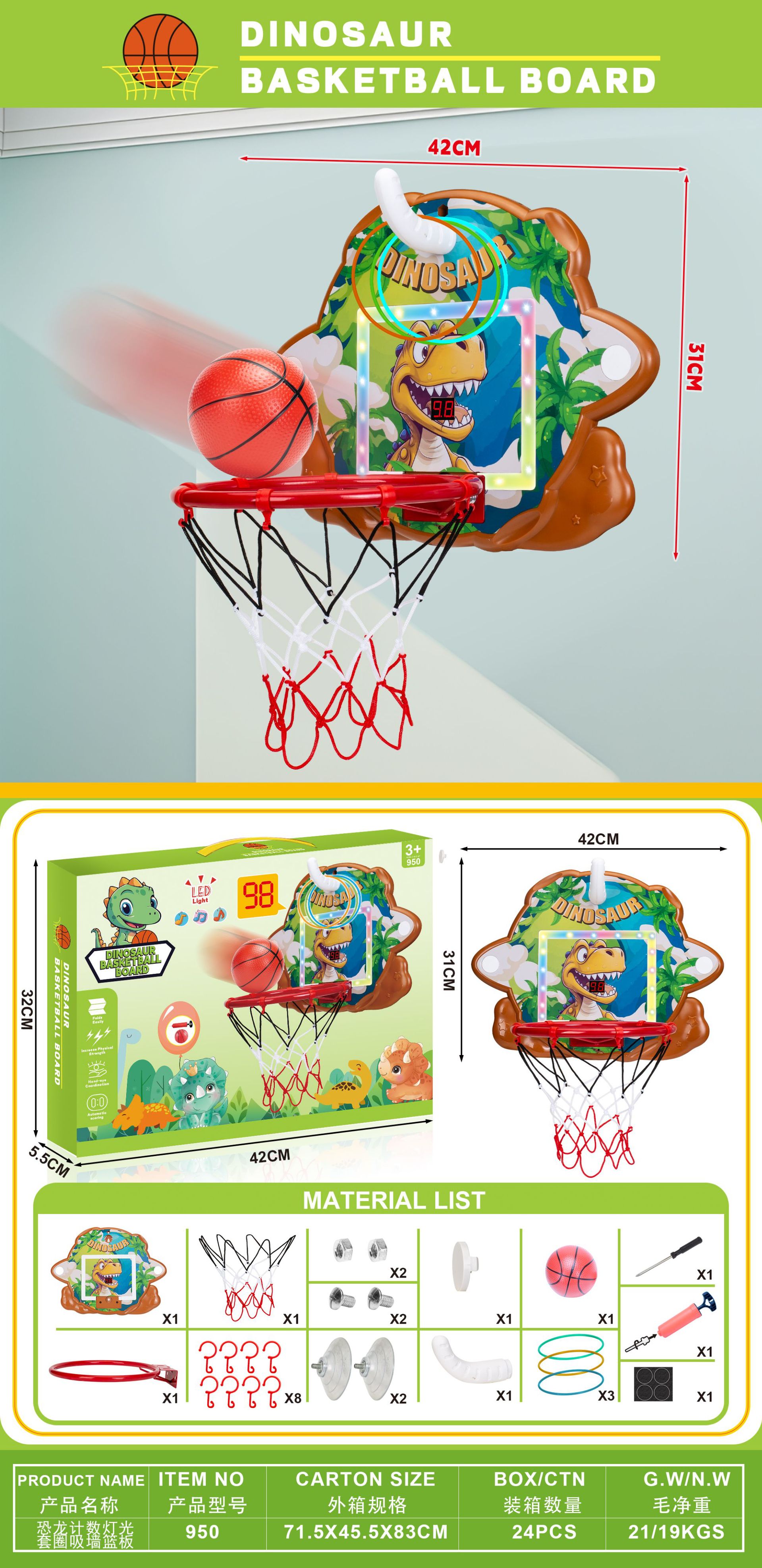 • 954 공룡 계산 농구 스탠드 영어 색상 상자
