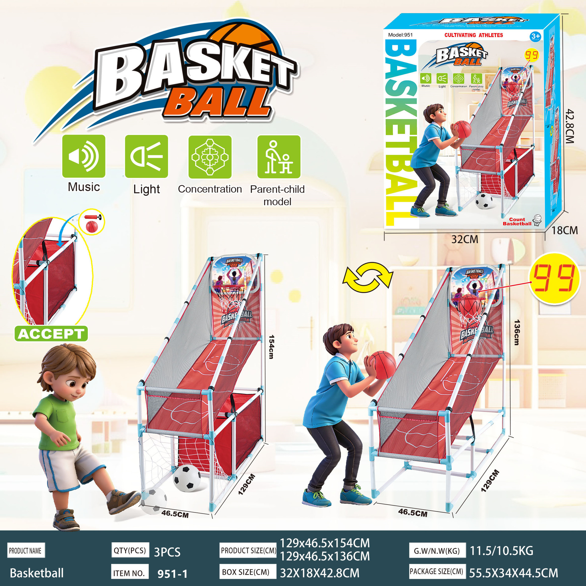 • 951-1 2-in-1 수납형 (농구 골대 + 축구 골대)