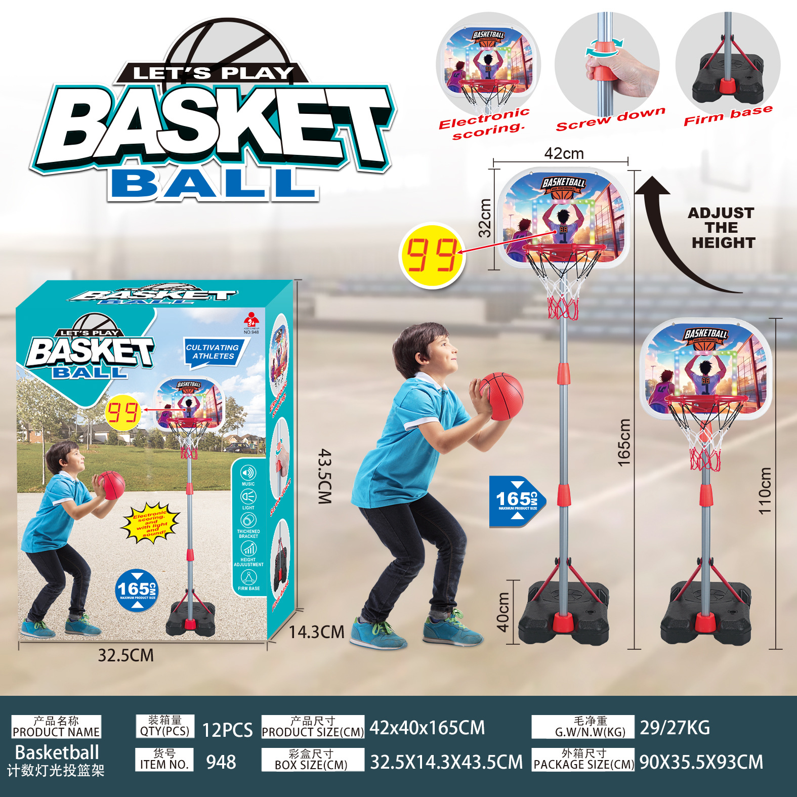 국경을 넘는 농구대, 농구점수판, 조명이 있는 슬램덩크 프레임, 실내외 스포츠 장비, 장난감 도매 및 배송스토어 가기