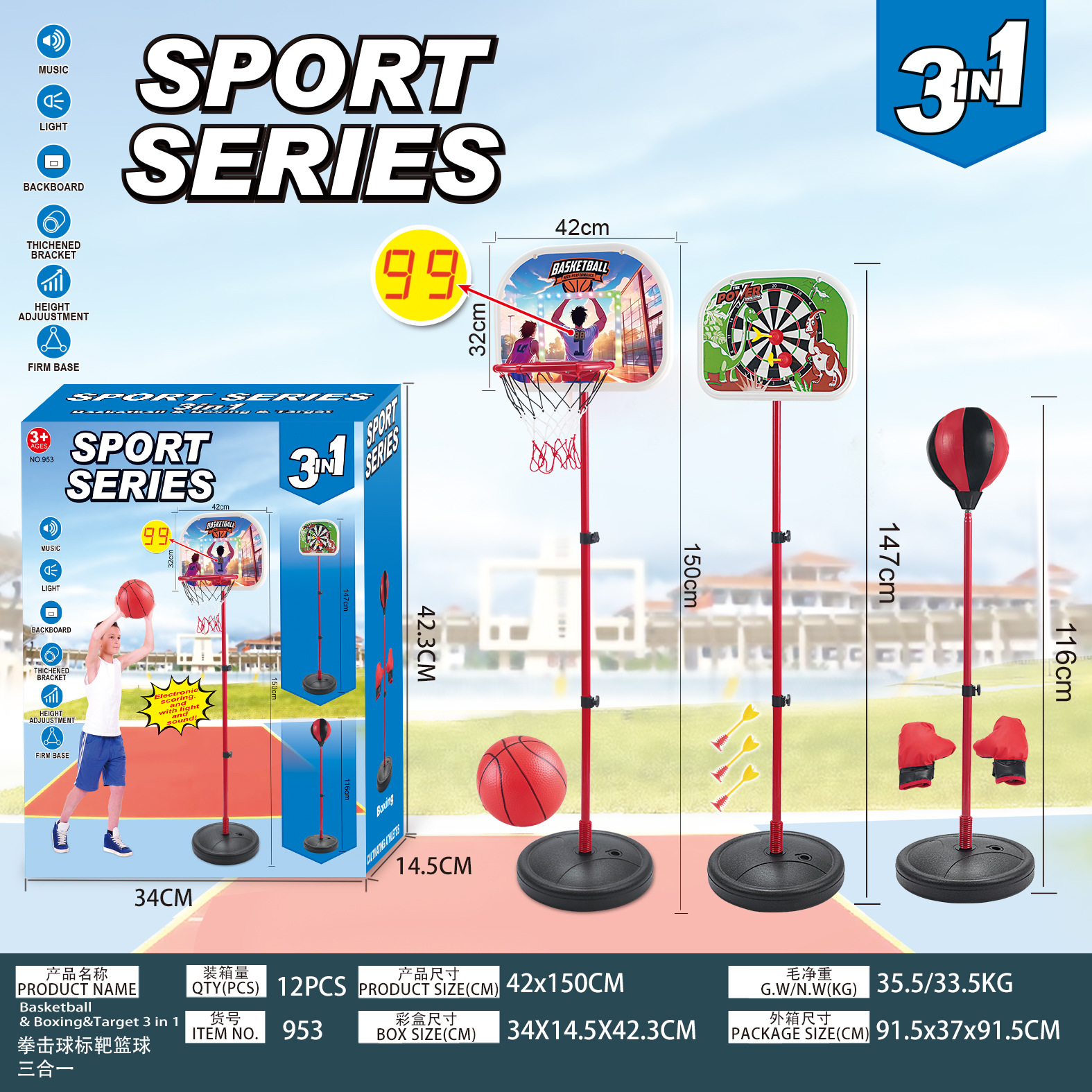• 953 복싱 공 대상 농구 3-in-1 영어 컬러 박스