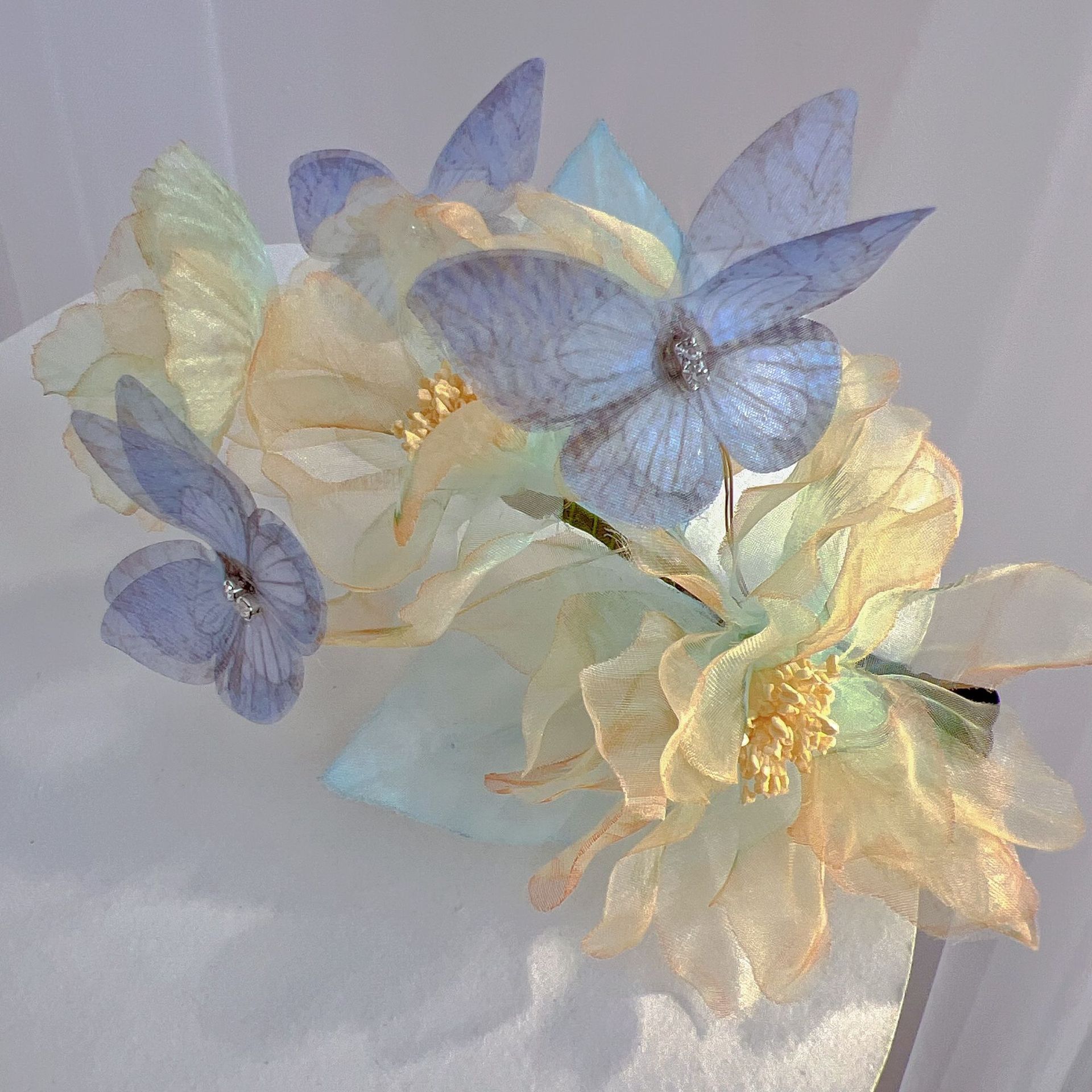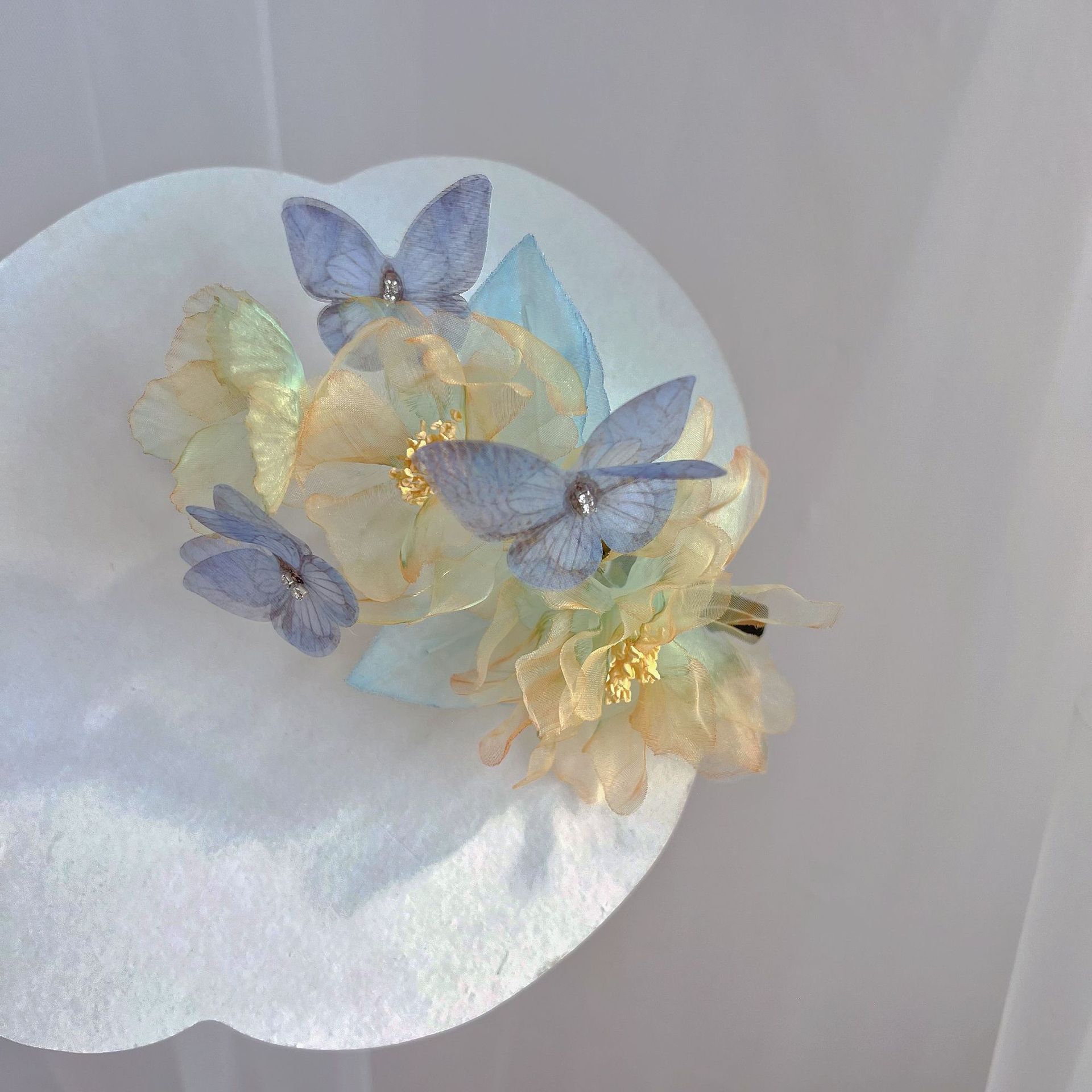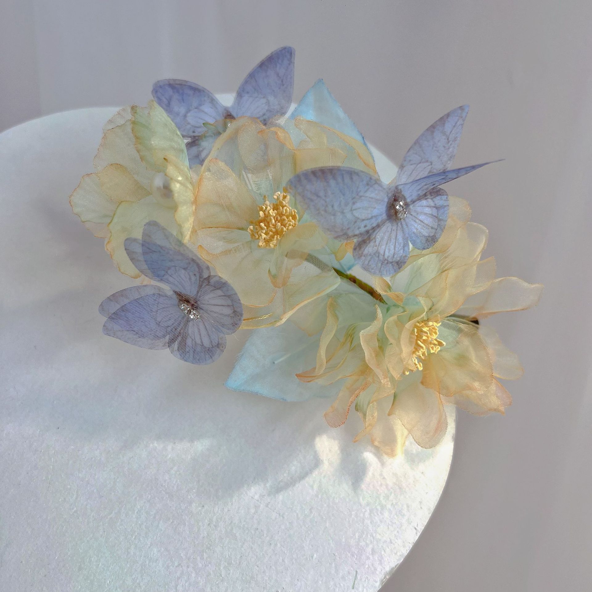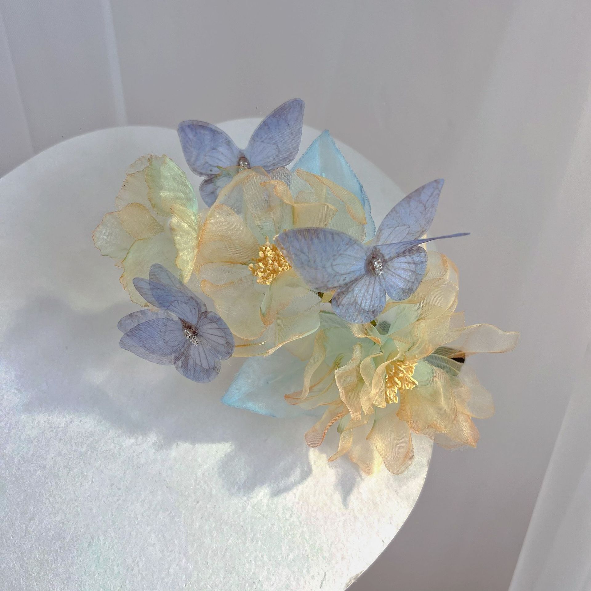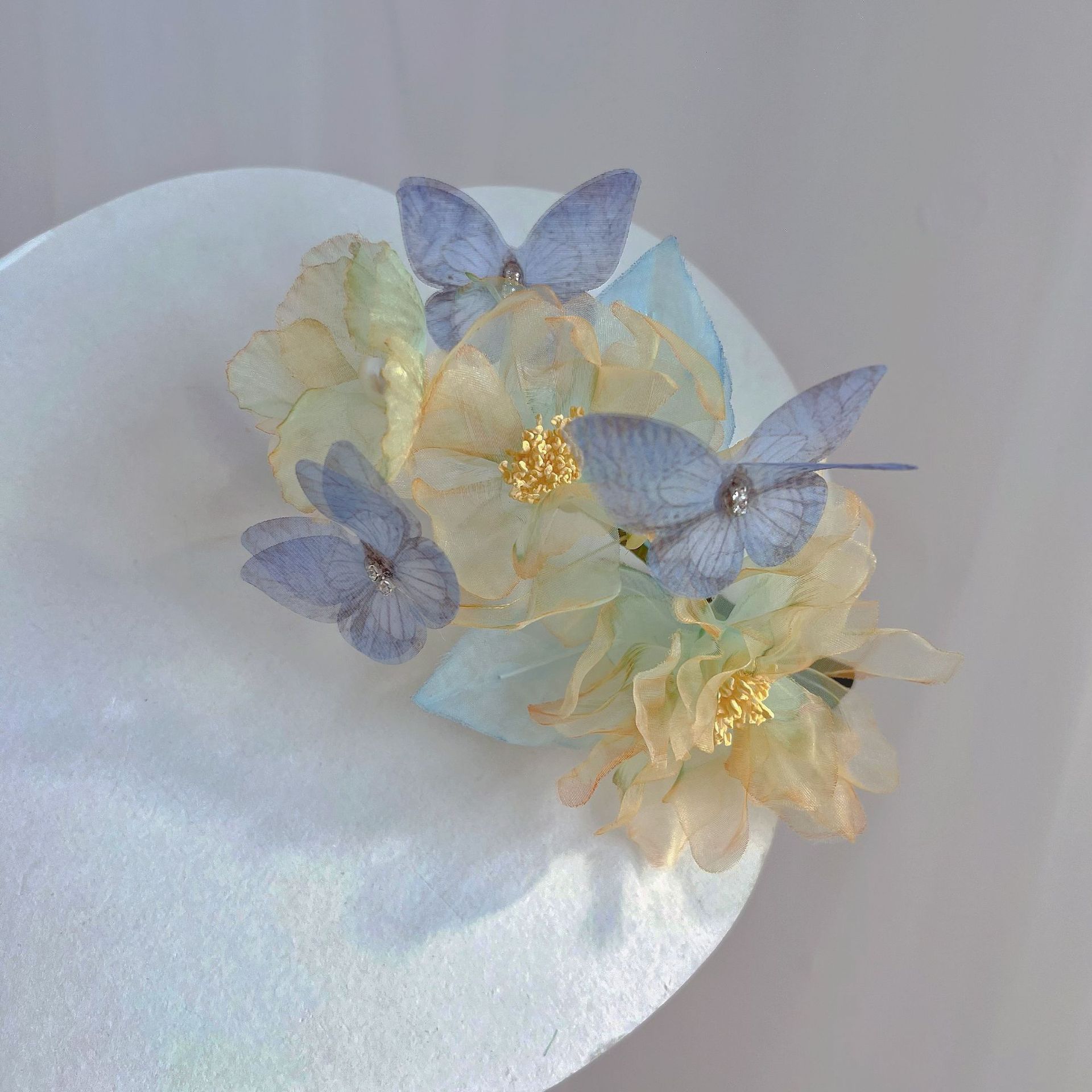 나비꽃 무늬 고전풍 머리핀, 당풍 센스리 허브 스타일 한복용 신선한 꽃 머리장식, 고전풍 의상용 머리장식