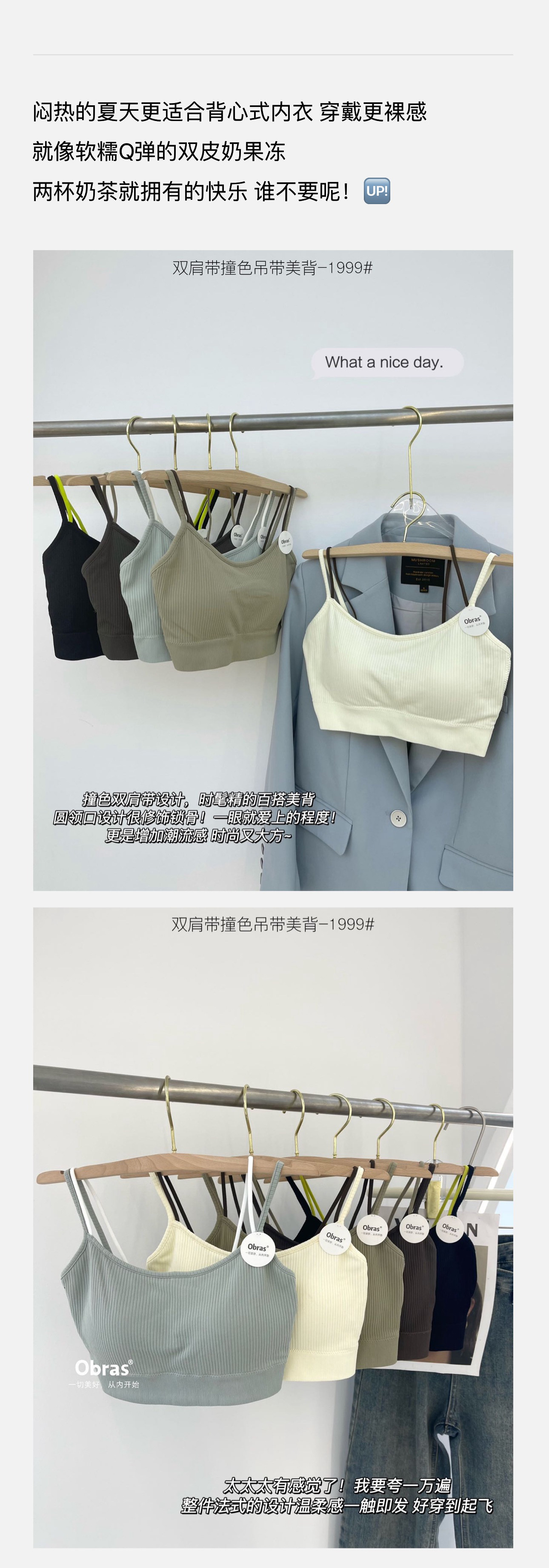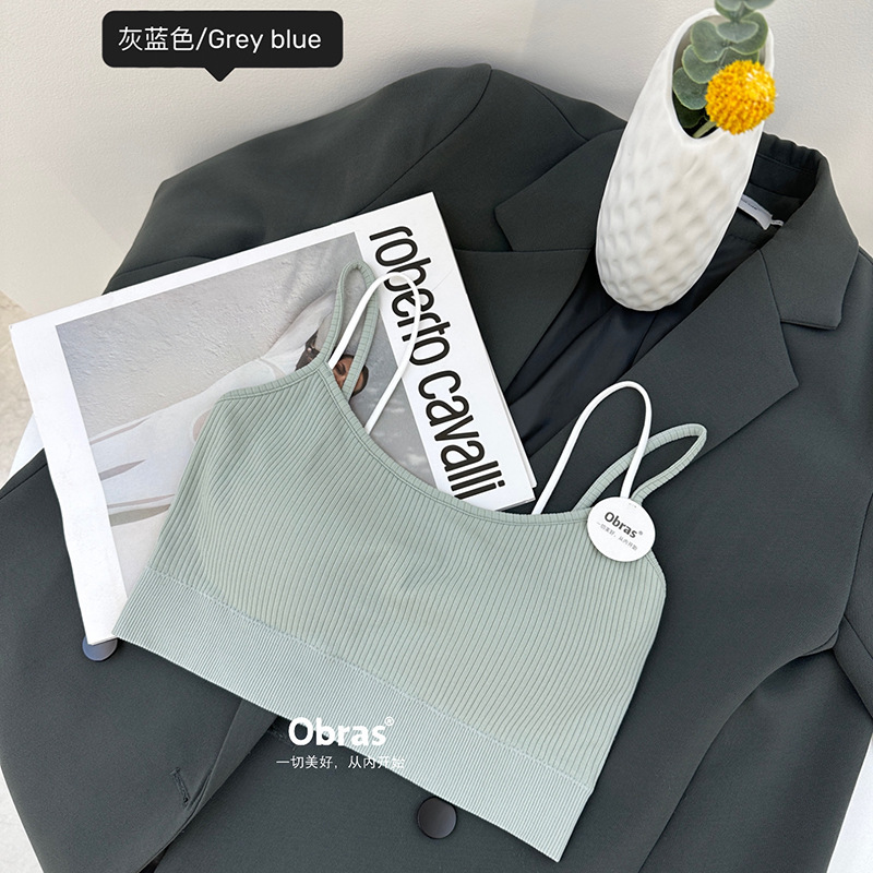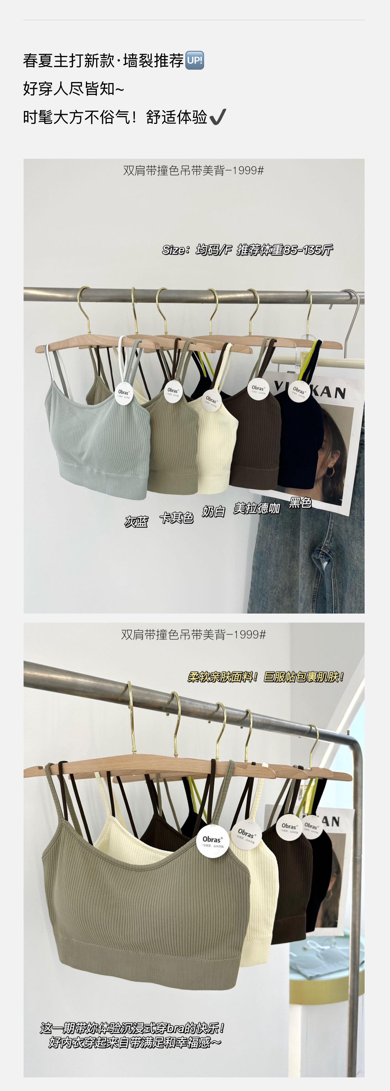 오브라스 색상 대조 어깨 스트랩 아름다운 뒷면 속옷 여성용 개더베이스 조끼 폭발성 슬링 스트랩리스 여름 간단한 작은 가슴 아름다움스토어 가기
